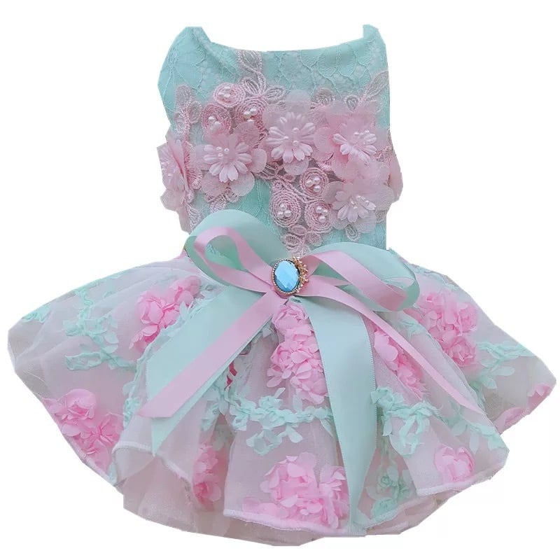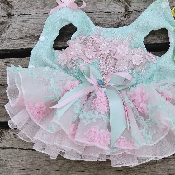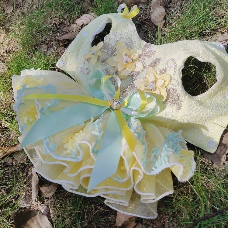 重ね襟とふんわり広がるチュールスカートが、ワンちゃんをプリンセスへと変身させます。