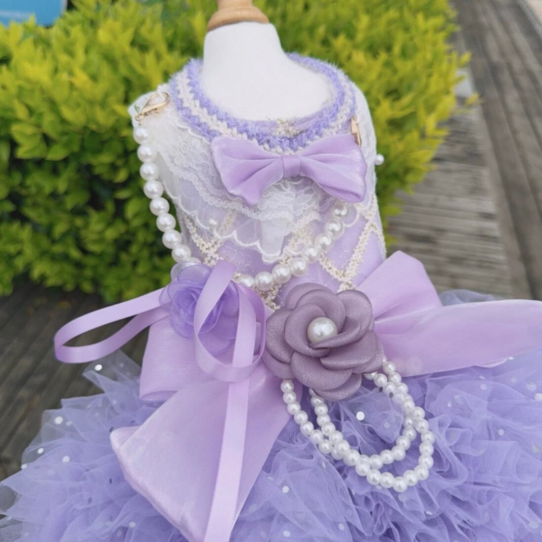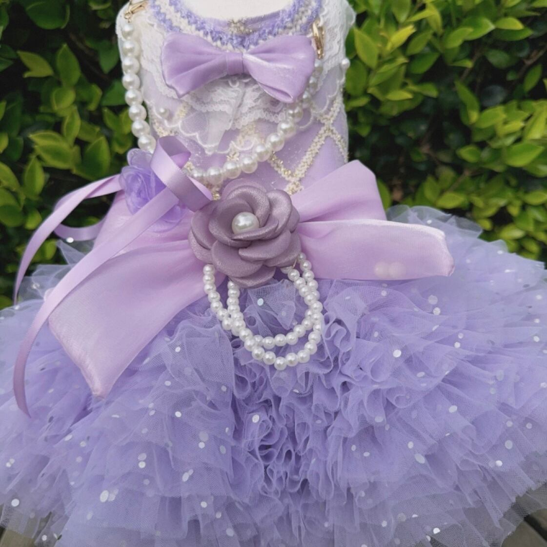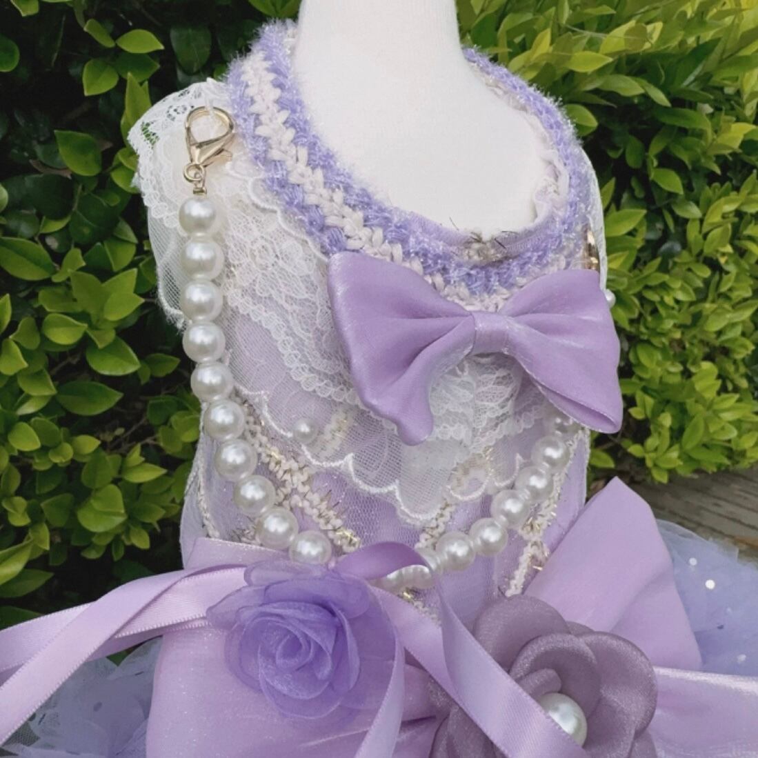 襟元の白いレースと何重にも重なったチュールがとてもキュート。