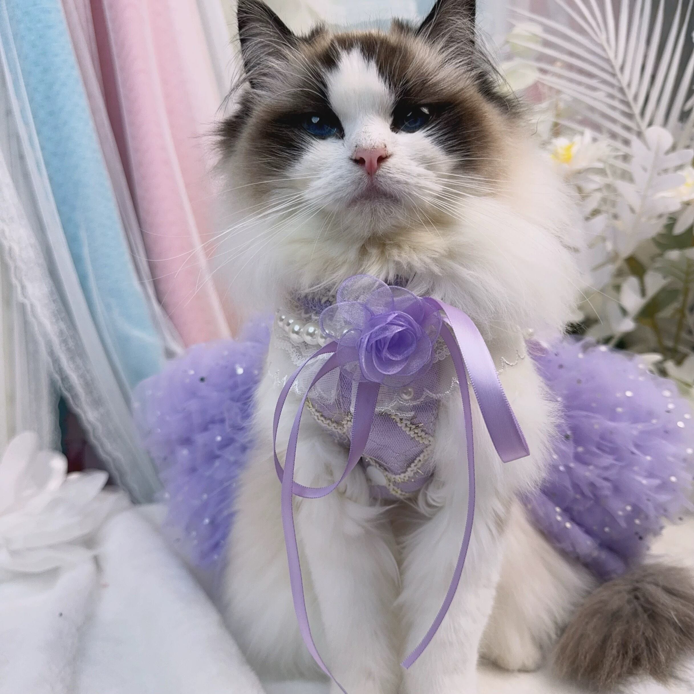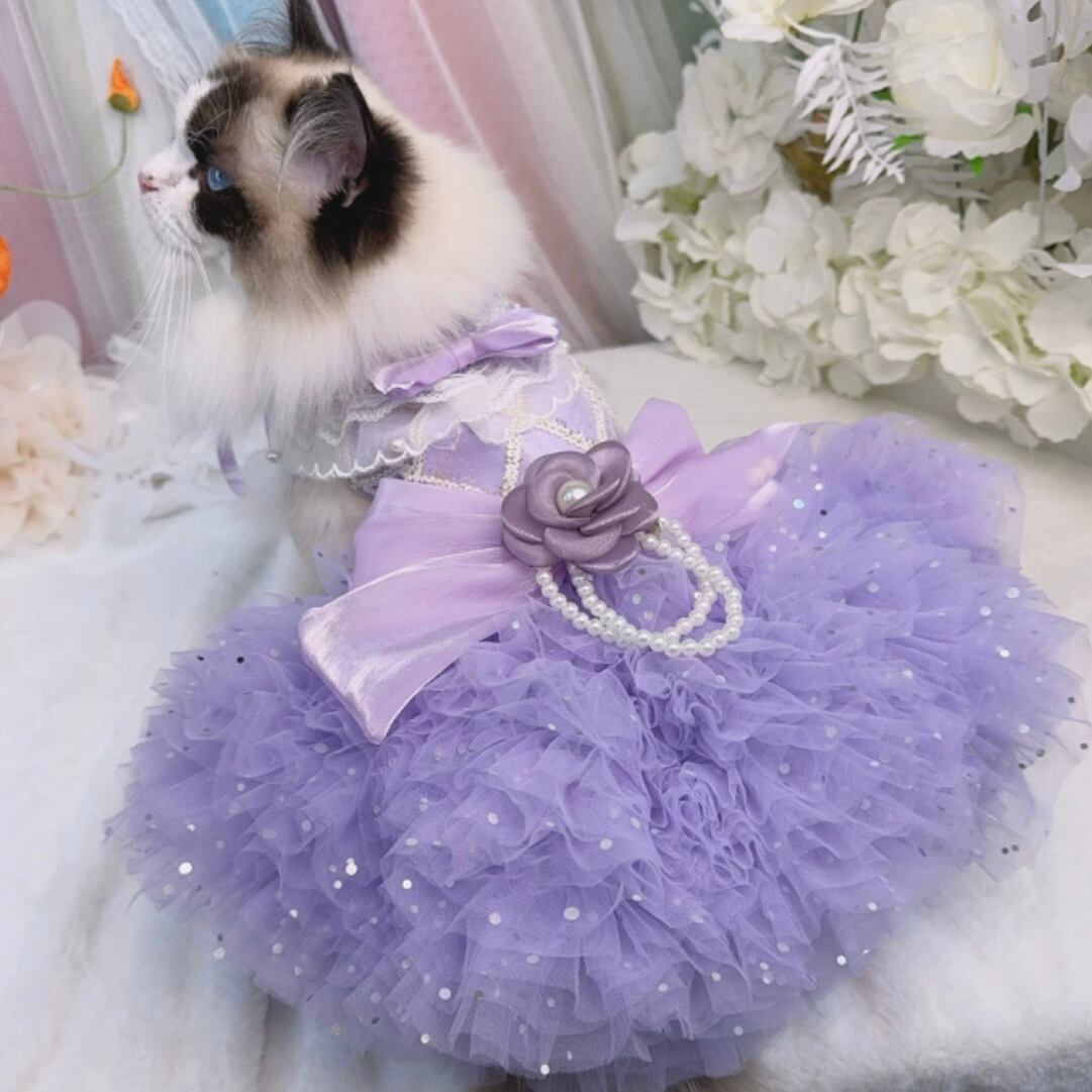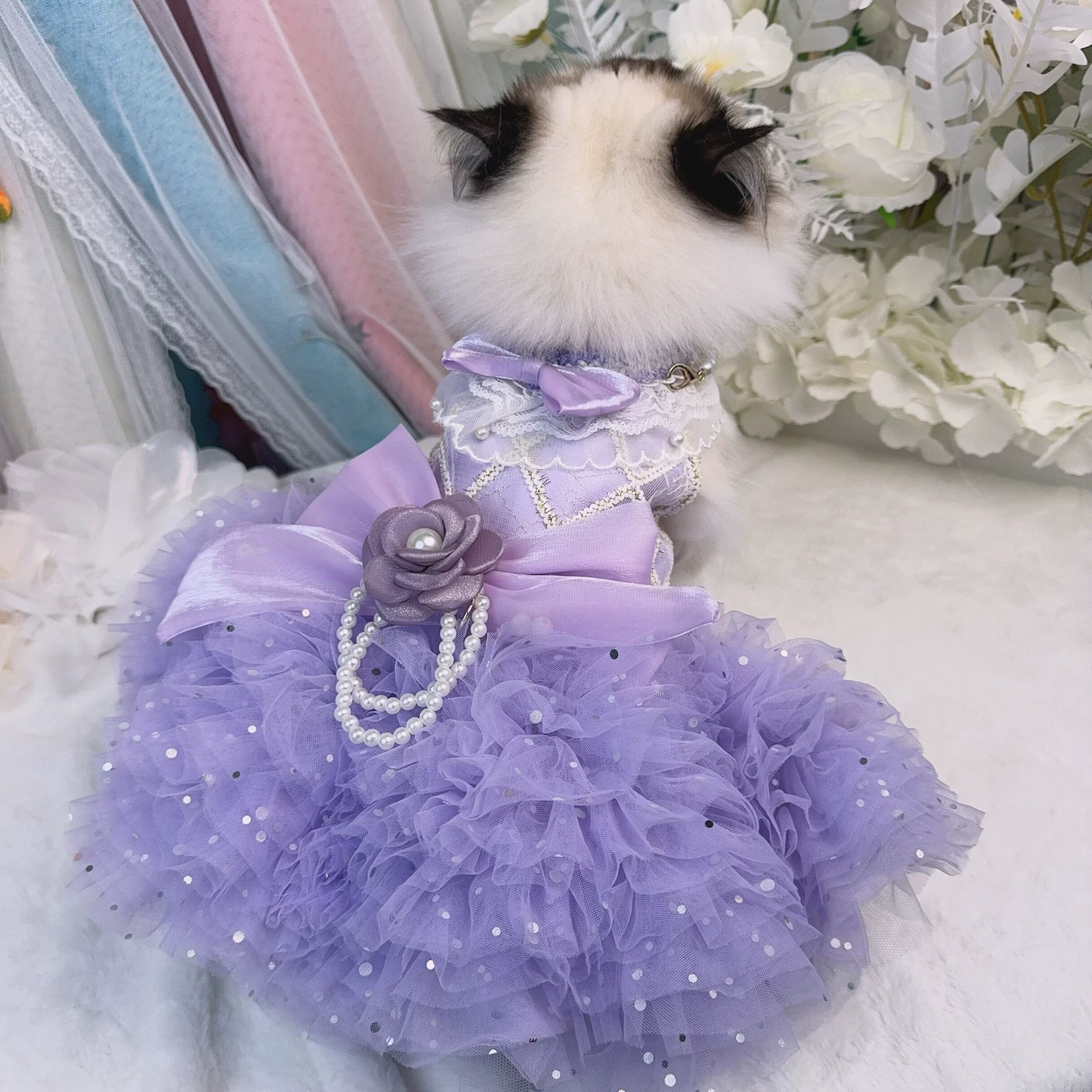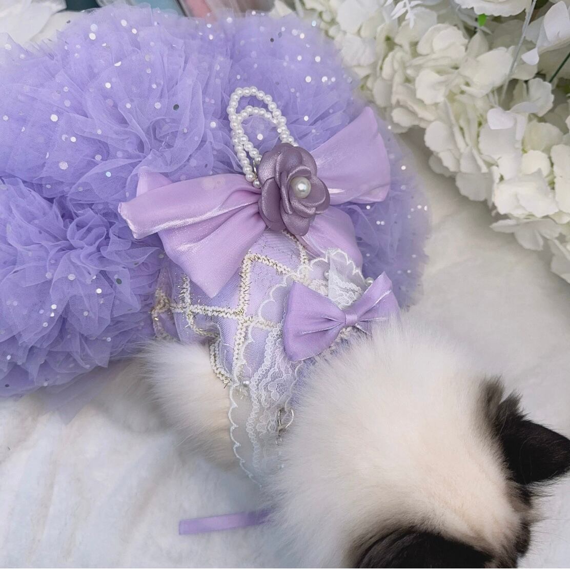 襟元の白いレースと何重にも重なったチュールがとてもキュート。