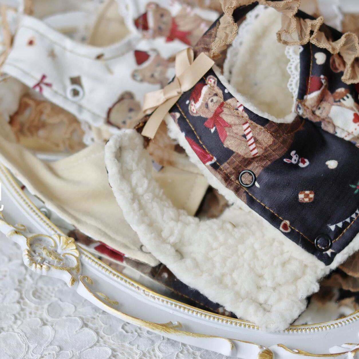 愛らしいベア柄が魅力のチ レースフリルワンピースです。
