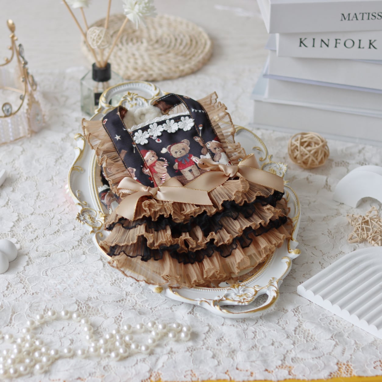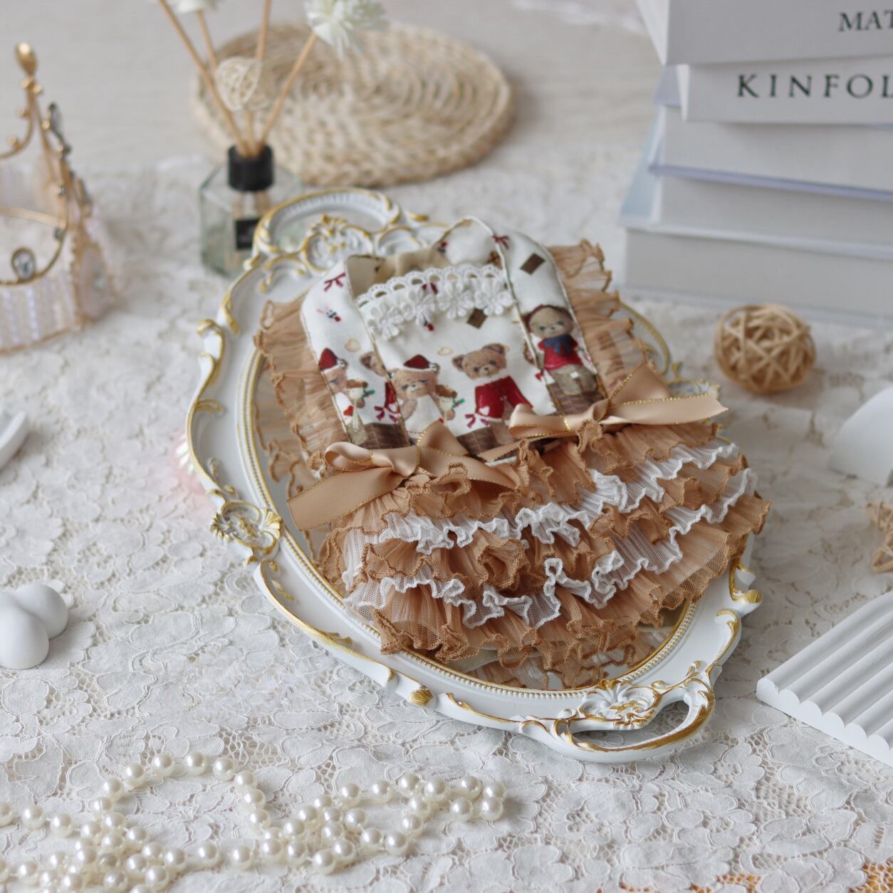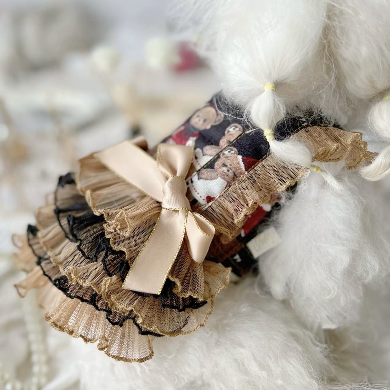ベア柄レースフリルワンピース 00297