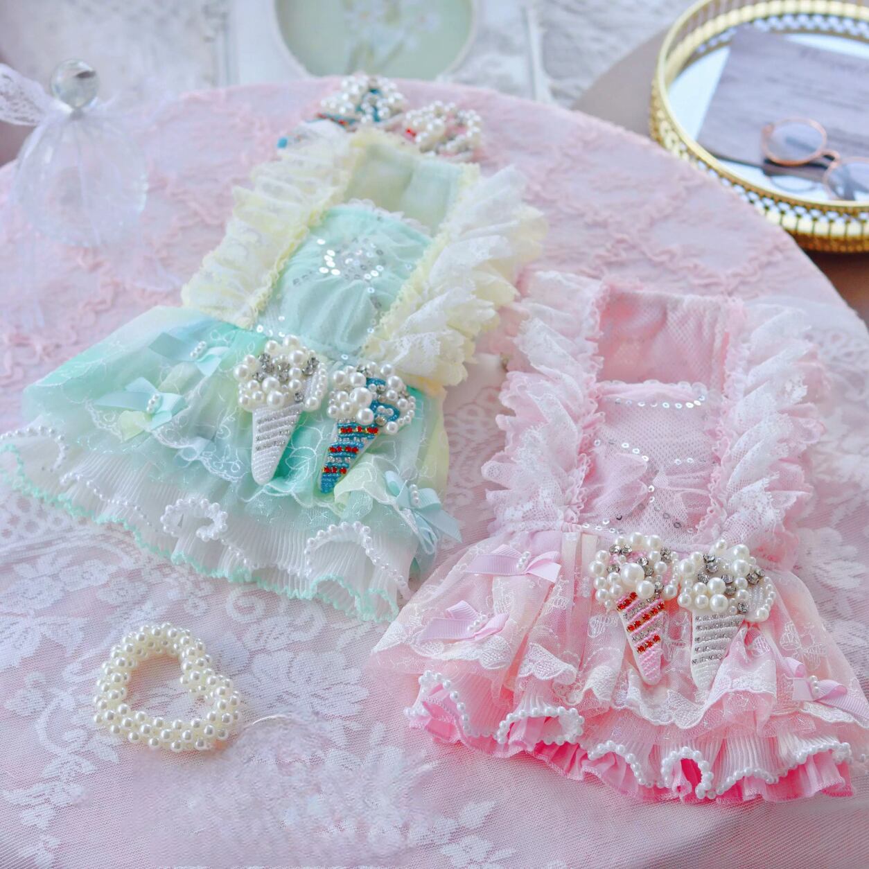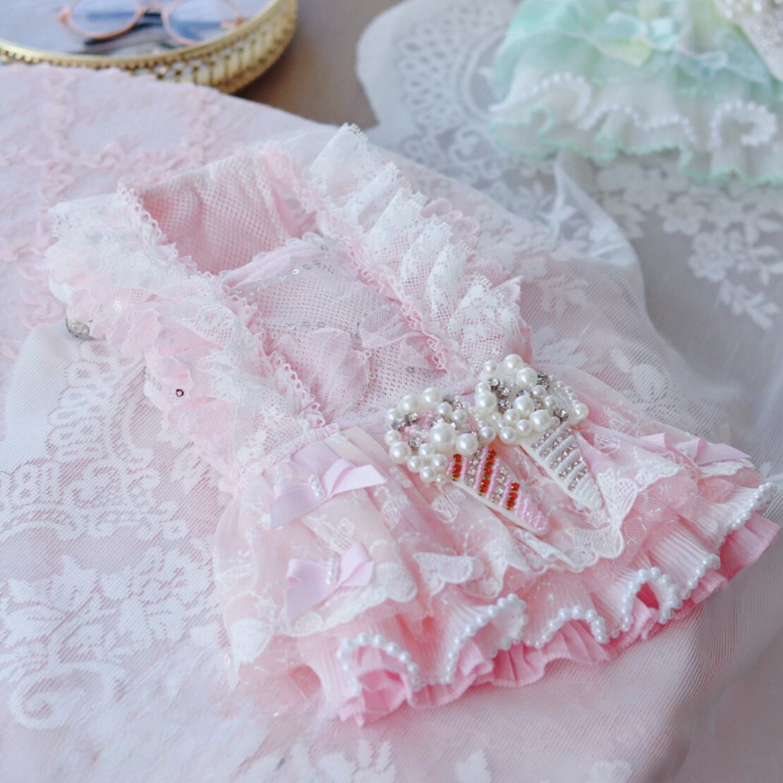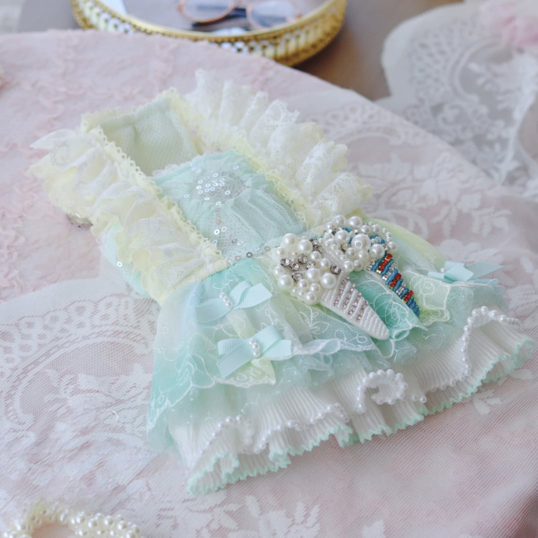 アイスクリームモチーフにたくさんのレースがあしらわれたガーリーなワンピースです。