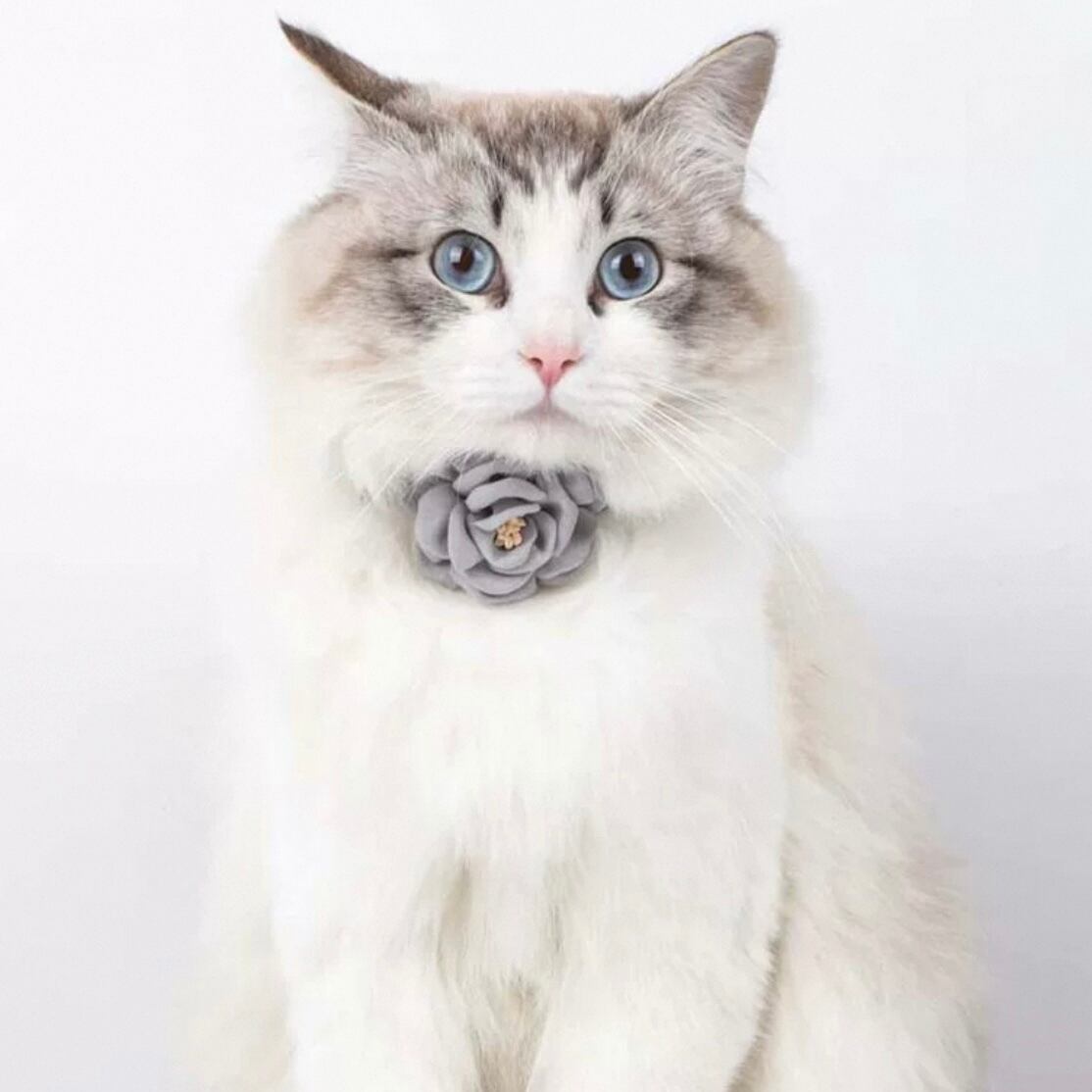 3D立体花モチーフが愛猫を華やかに彩る首輪。首元に咲く花は、まるで本物のよう。シンプルなデザインながら、存在感抜群です。お散歩や特別な日の装いに最適。
