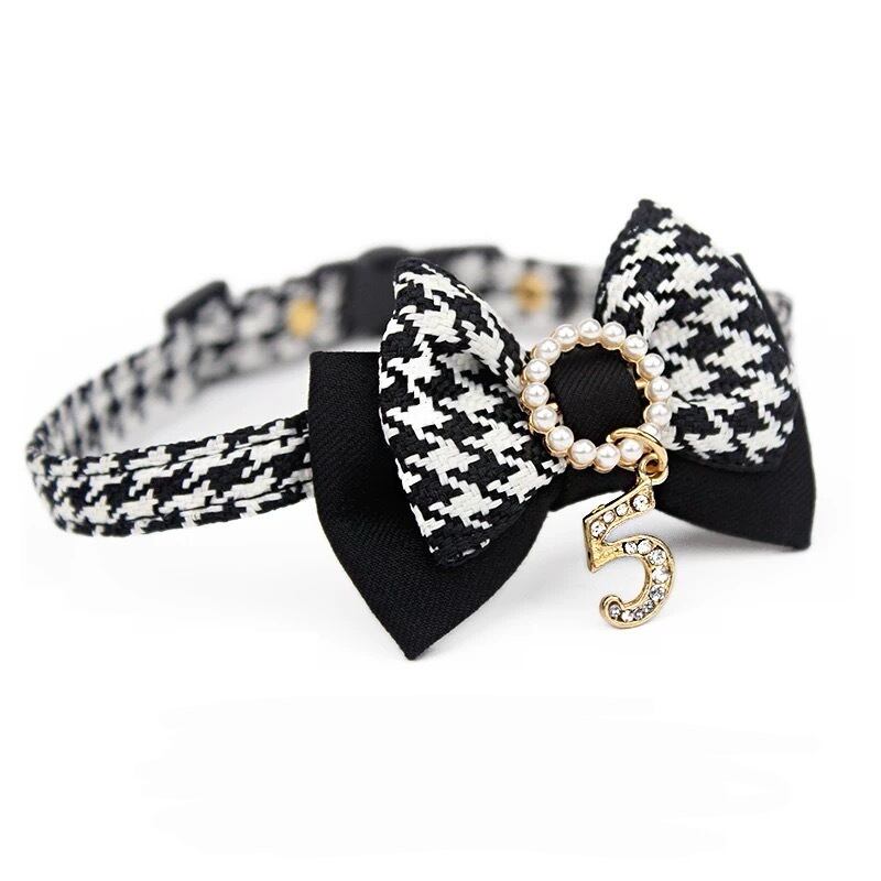 千鳥格子柄と大きなリボンが愛らしい首輪です。