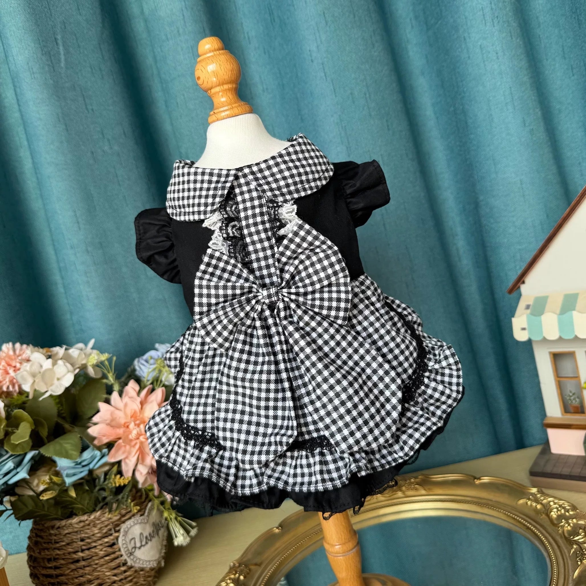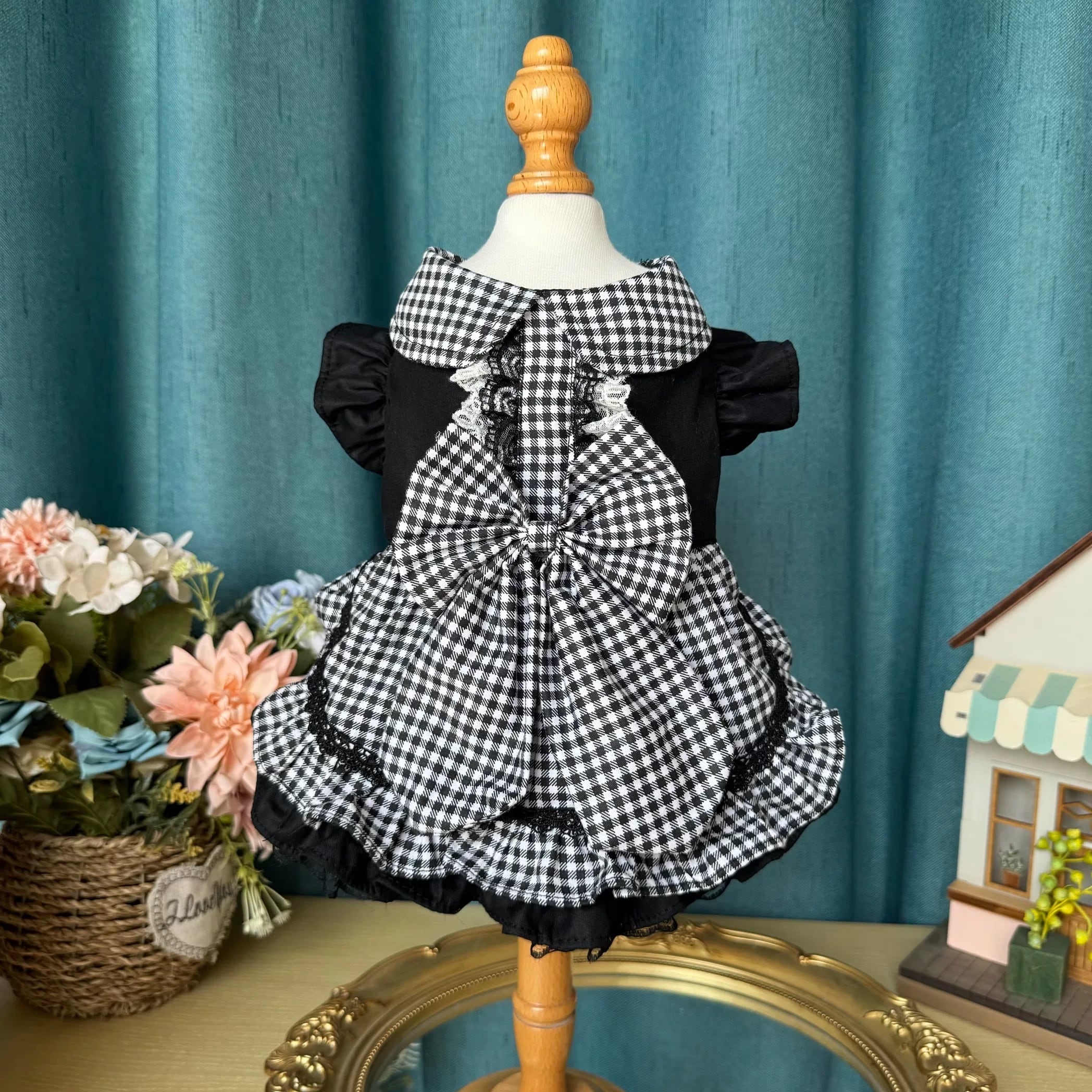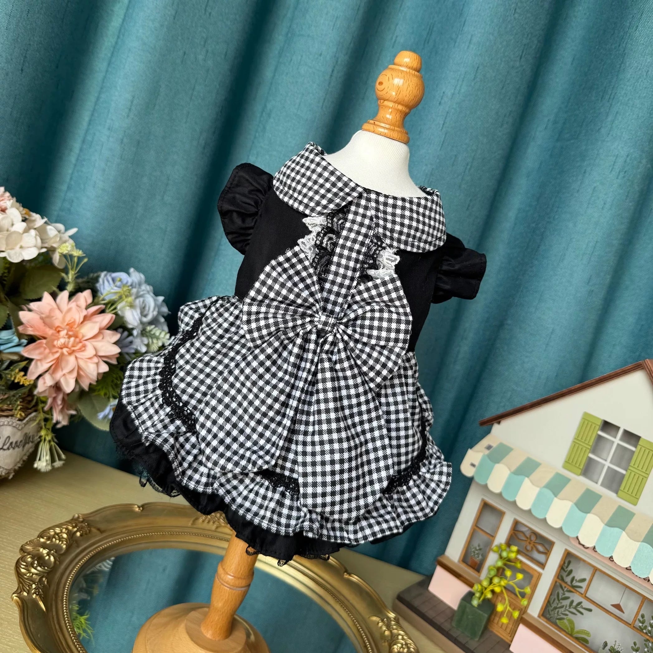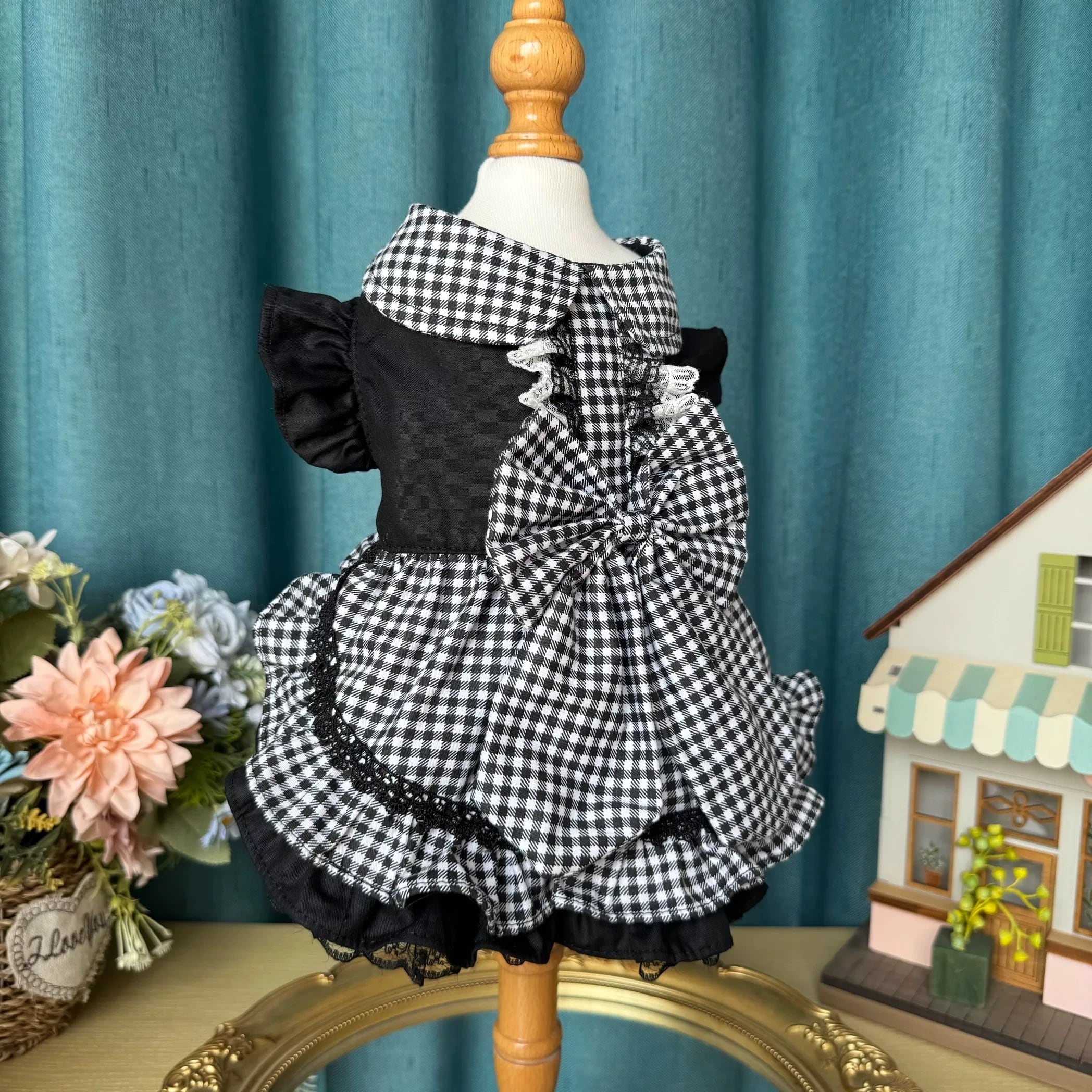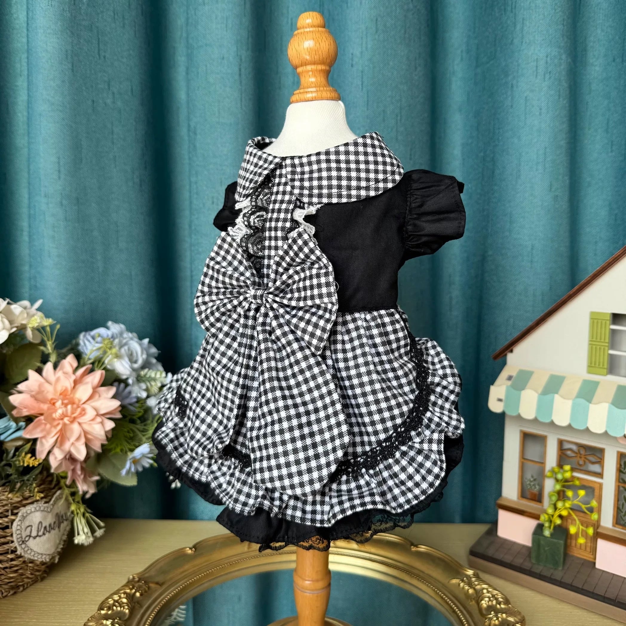 大きめのバックリボンとフリルが可愛いブラックギンガムチェックのワンピースです。