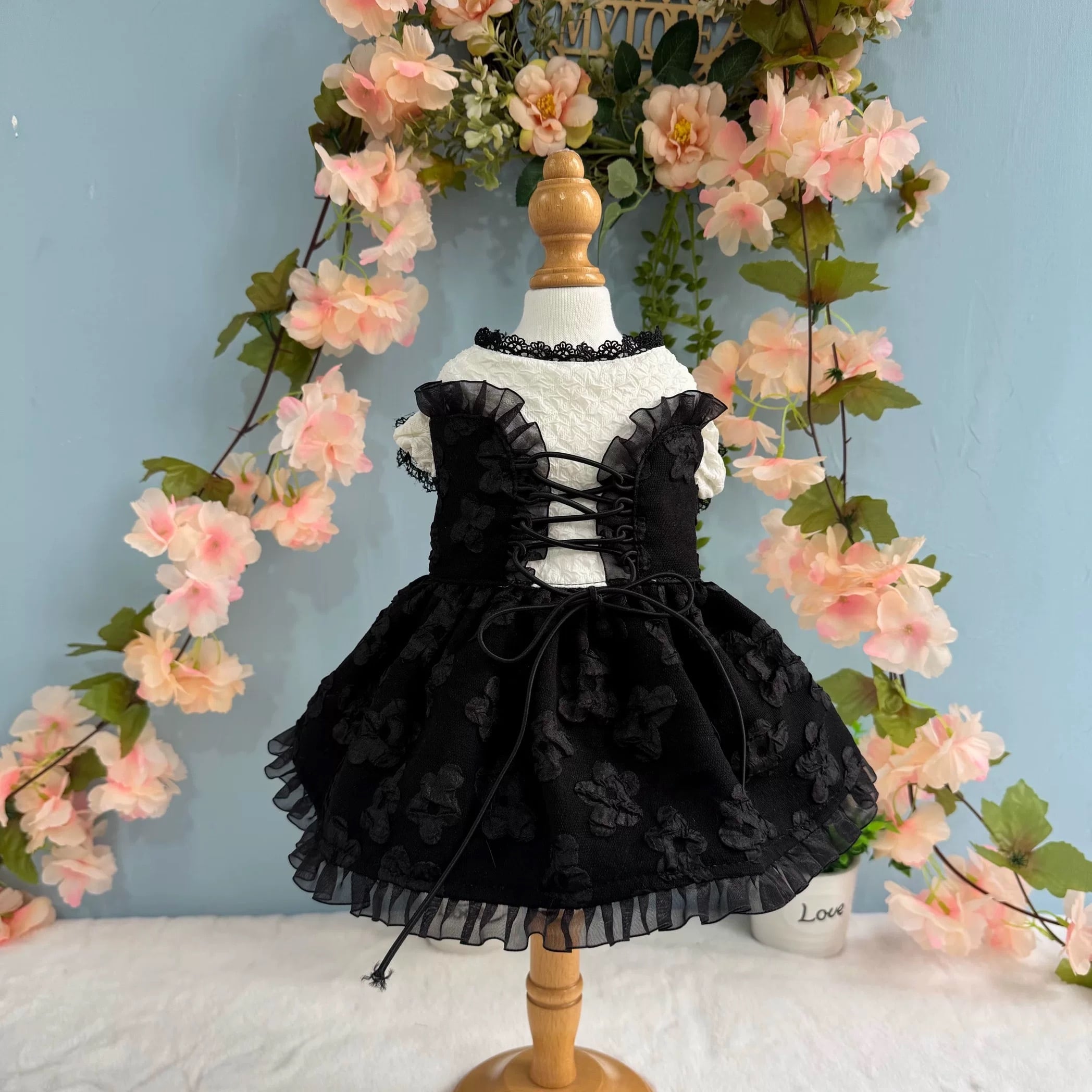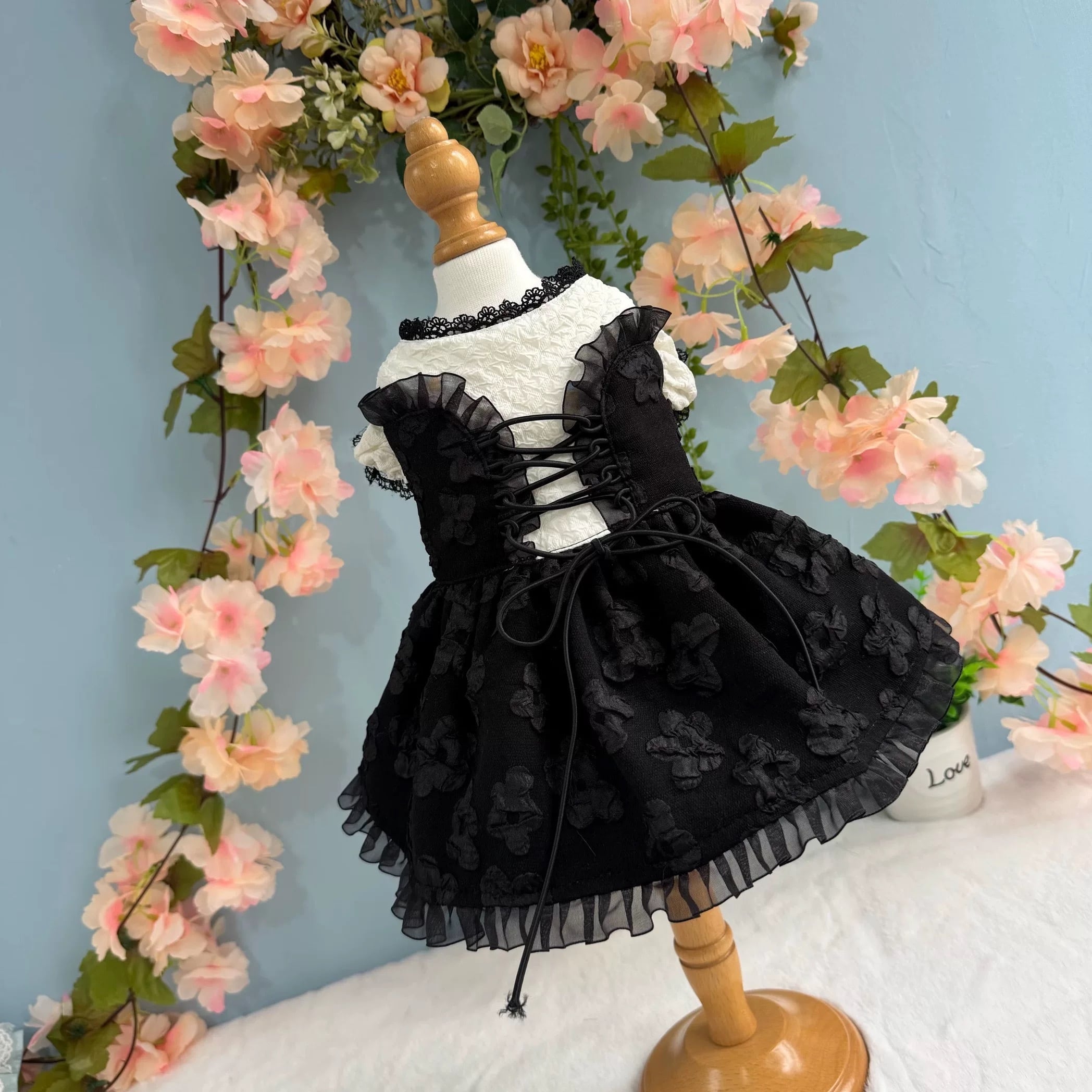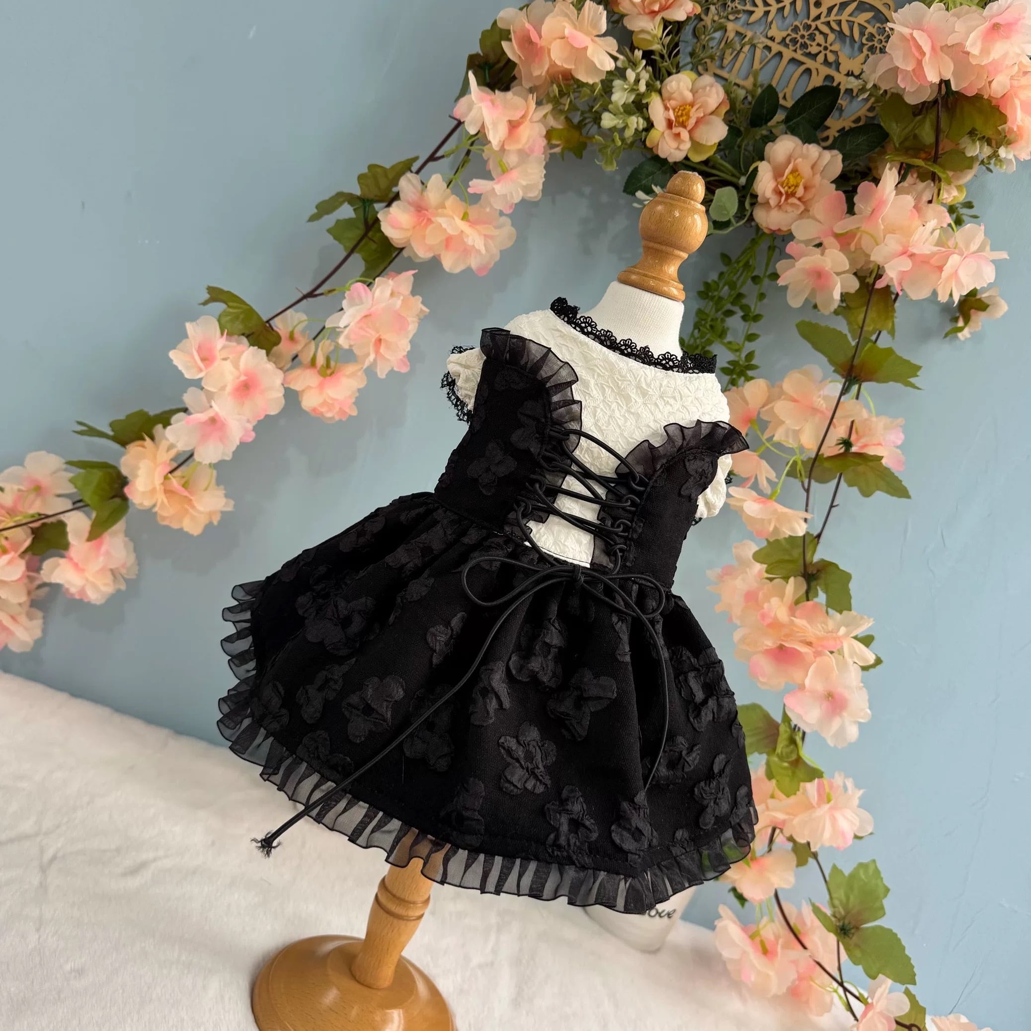 シックでエレガントな、エンブロイダリーレースアップワンピース。