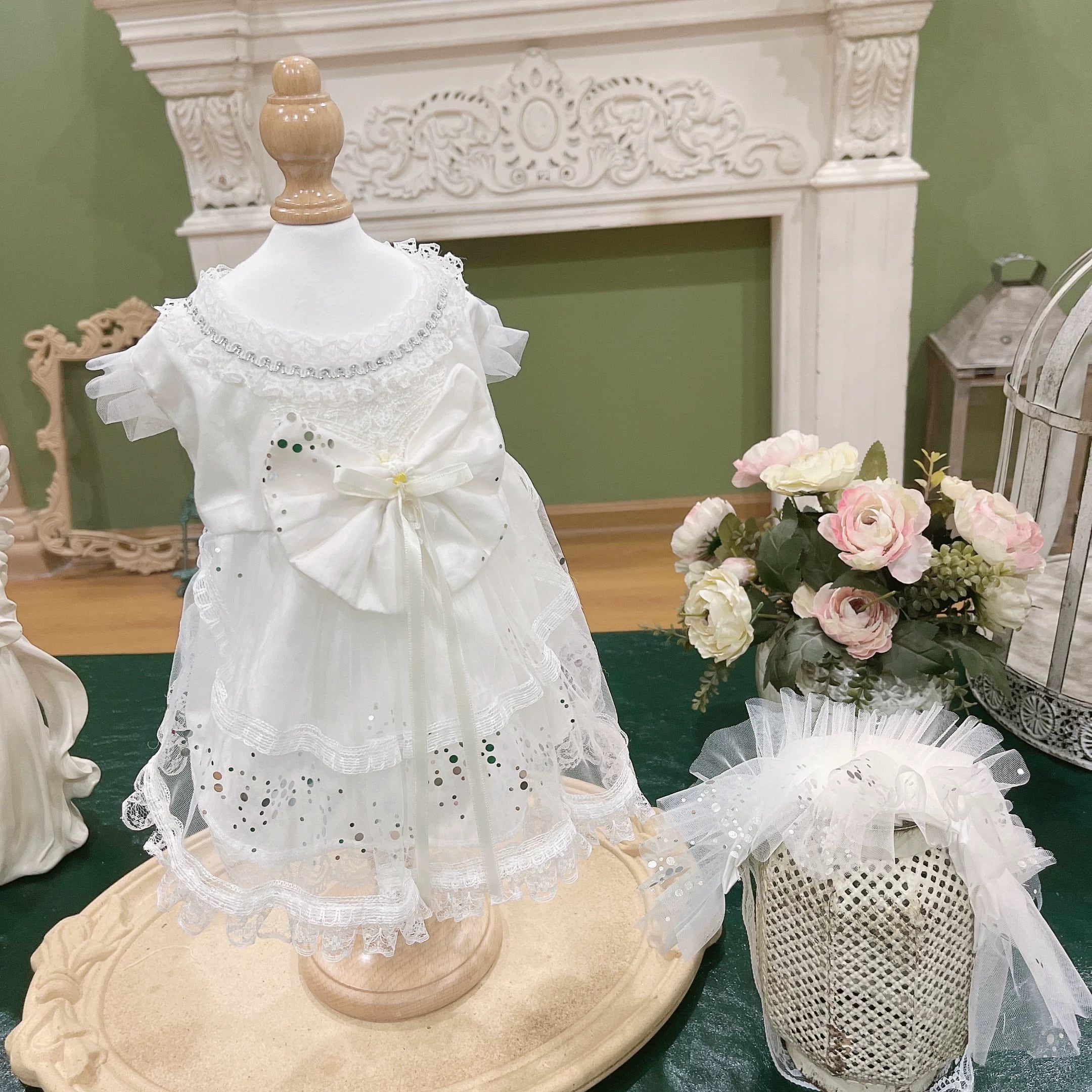 お揃いのホワイトレースのヘッドドレスもセットです。