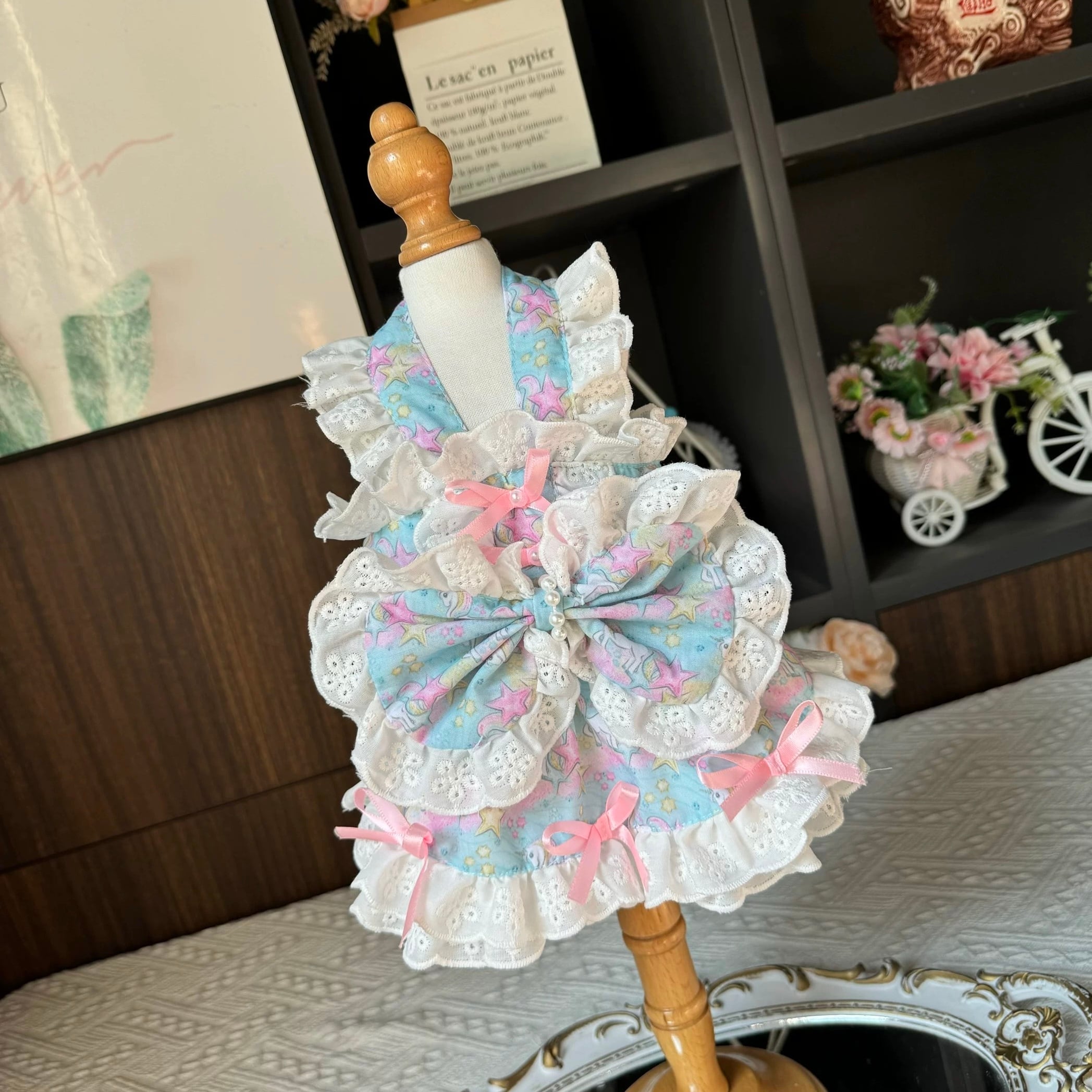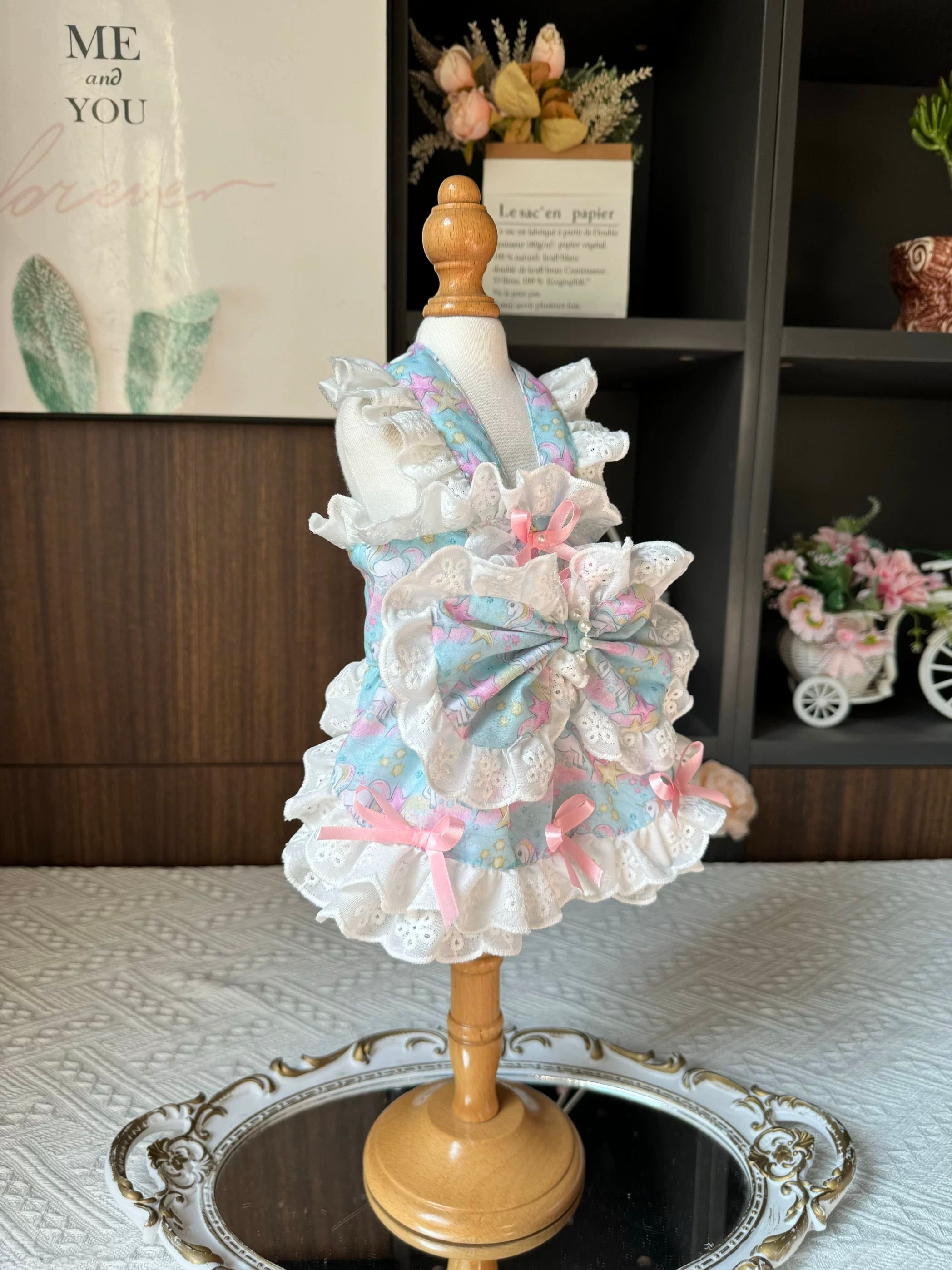 ユニコーンプリントのフリルワンピース。
