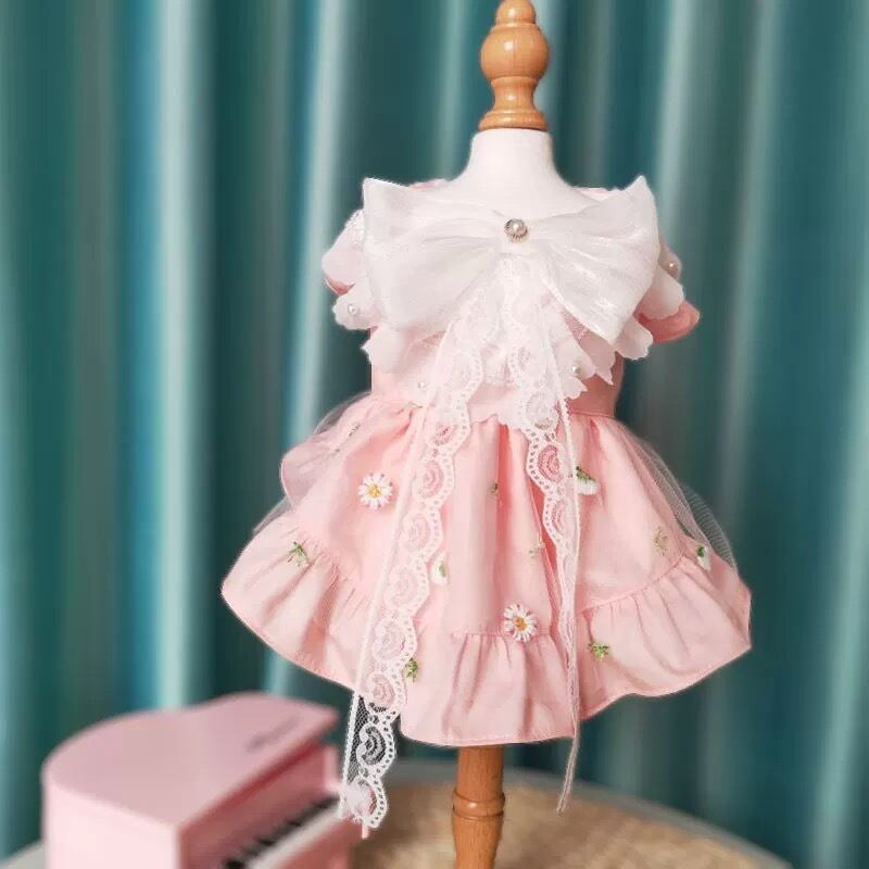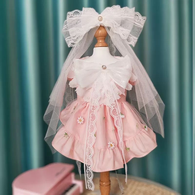ハイネックのデザインと、甘すぎないピンクの色合いが、清楚で可憐な雰囲気を演出します。デイジーの刺繍が散りばめられ、さりげない可愛らしさをプラス。シンプルながらも洗練されたデザインは、年齢やシーンを選ばず着こなせます。特別な日をさらに美しく彩る一着です。