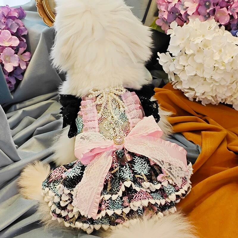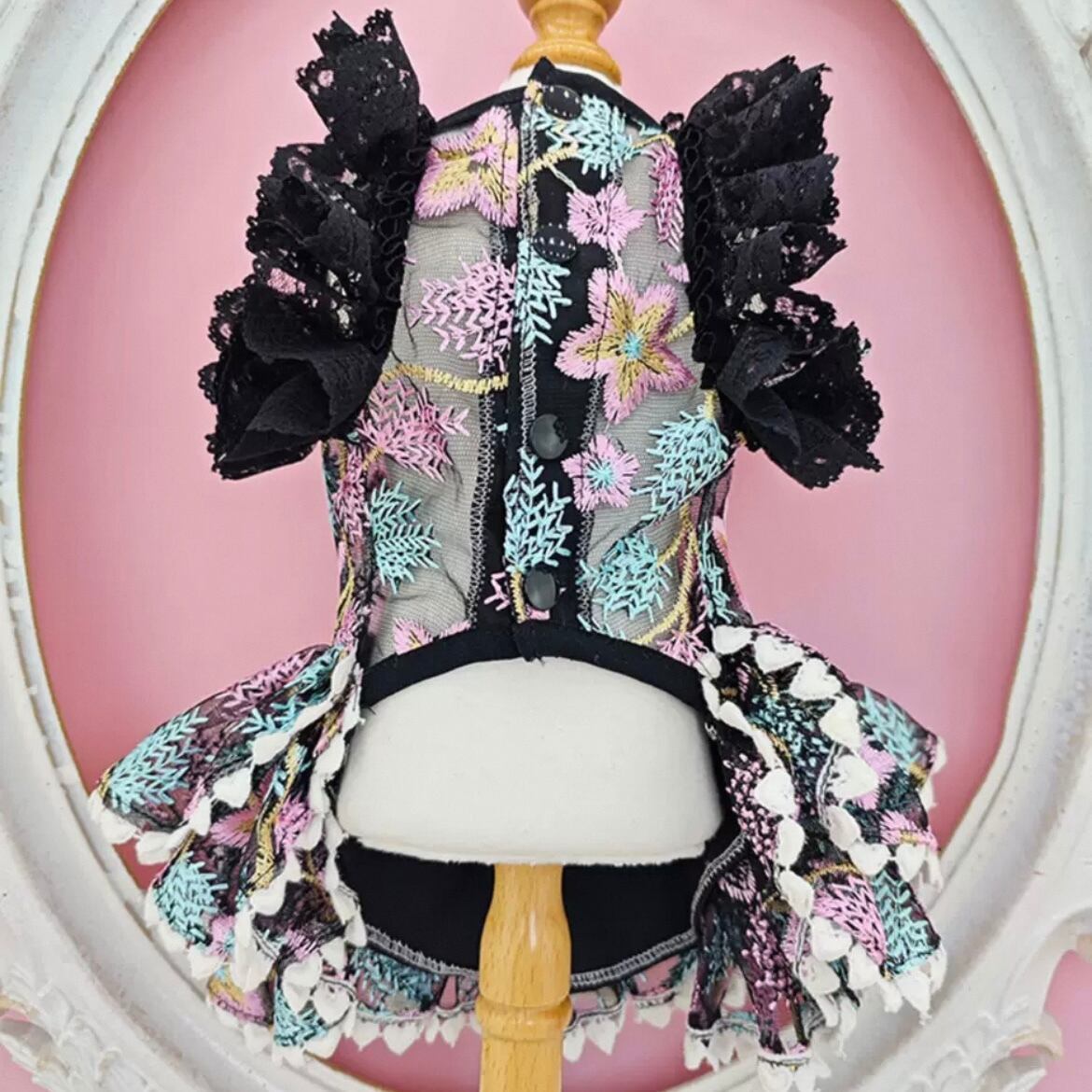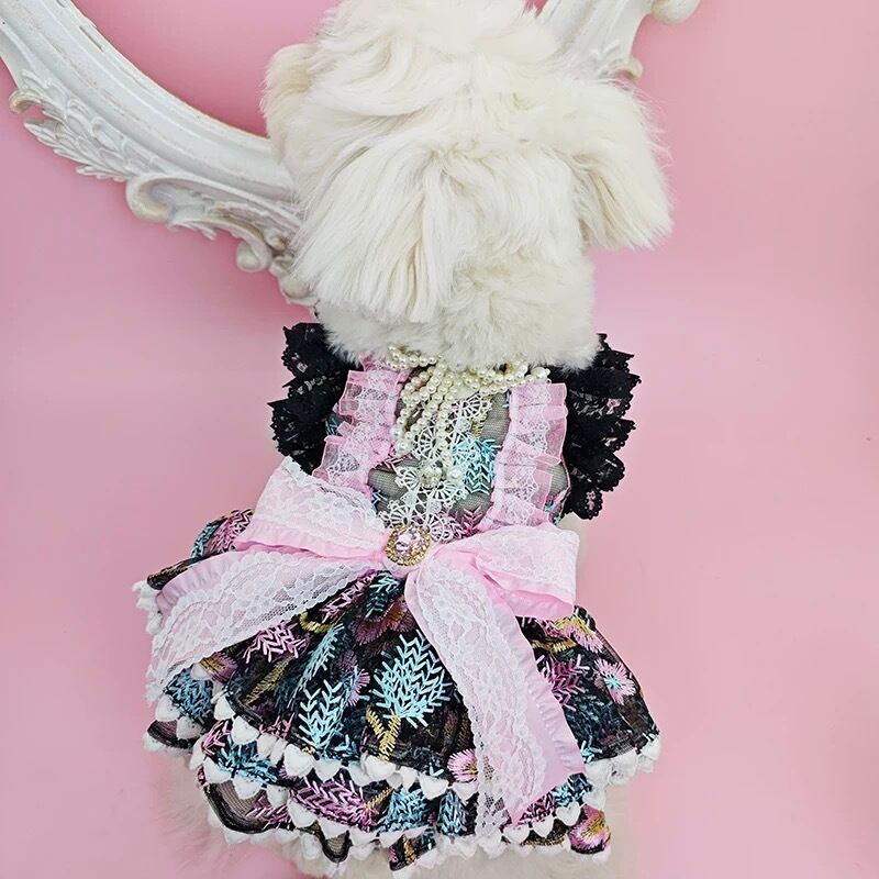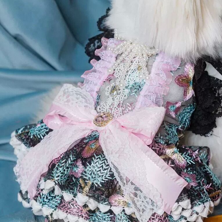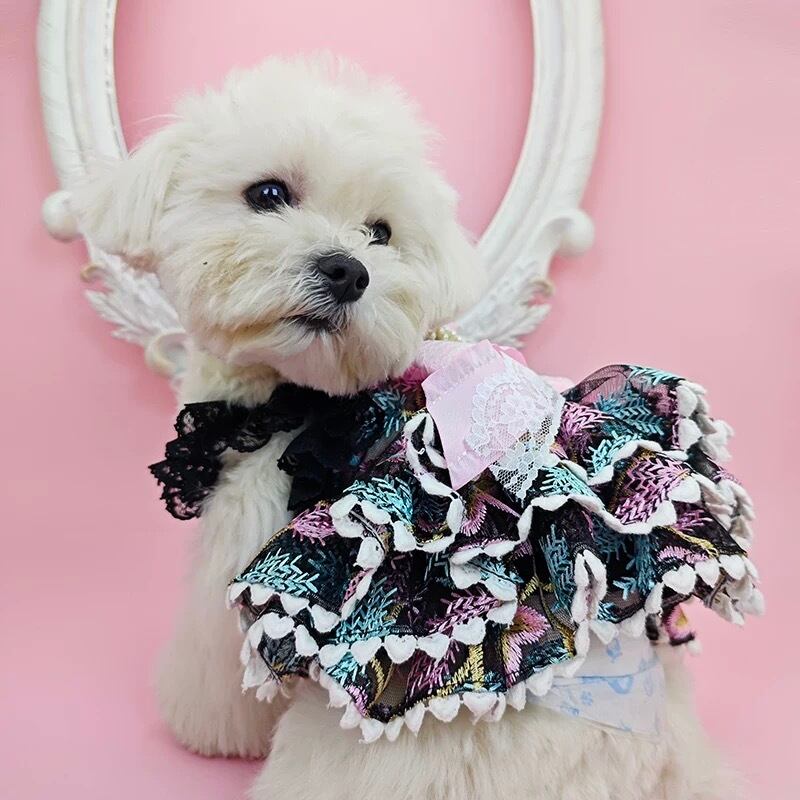 繊細なレース襟が魅力的なハイネックのドッグウェア。
