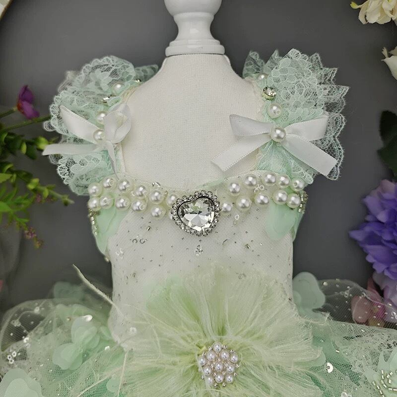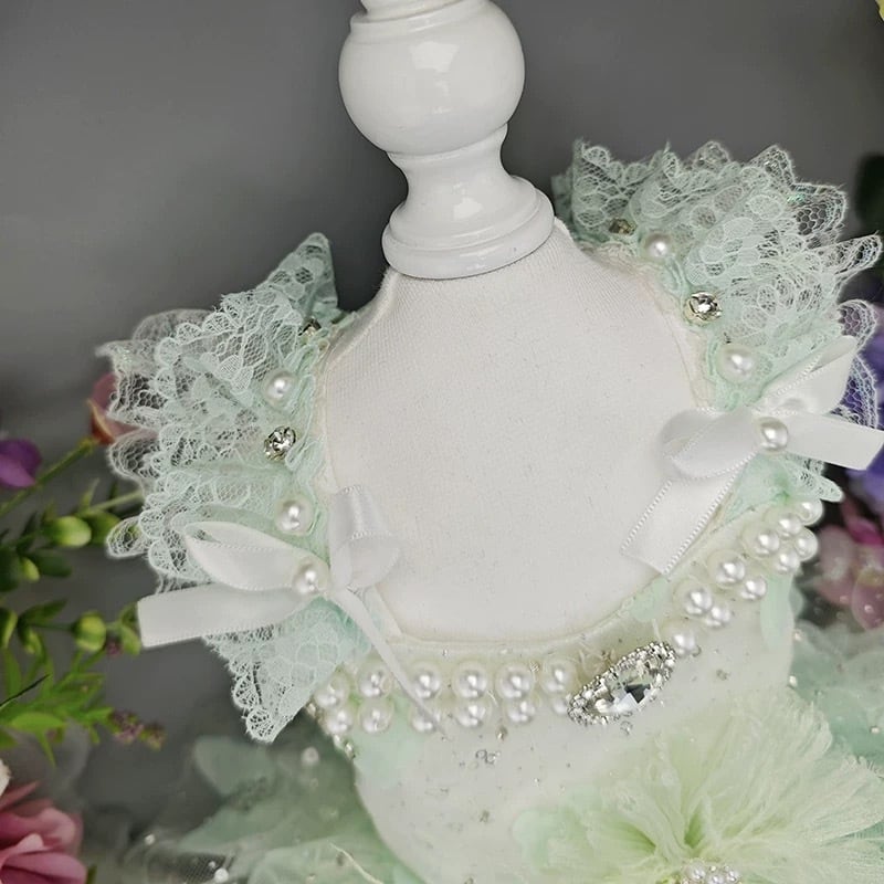 胸元には輝く装飾が施され、華やかさをプラス。