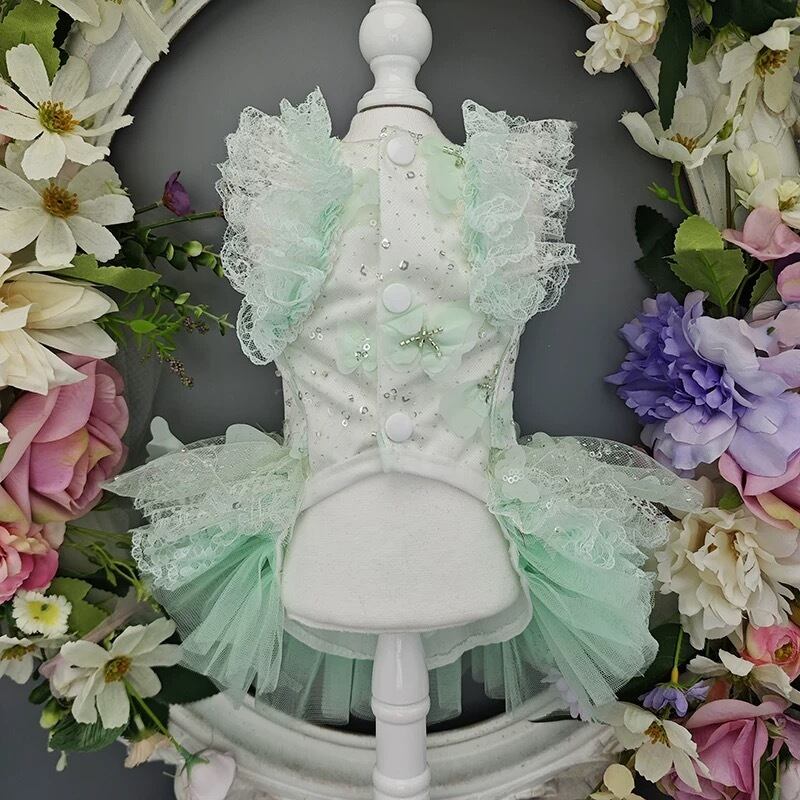 繊細なデザインの蝶モチーフがスカート全体にあしらわれ、軽やかでロマンチックな雰囲気を醸し出します。