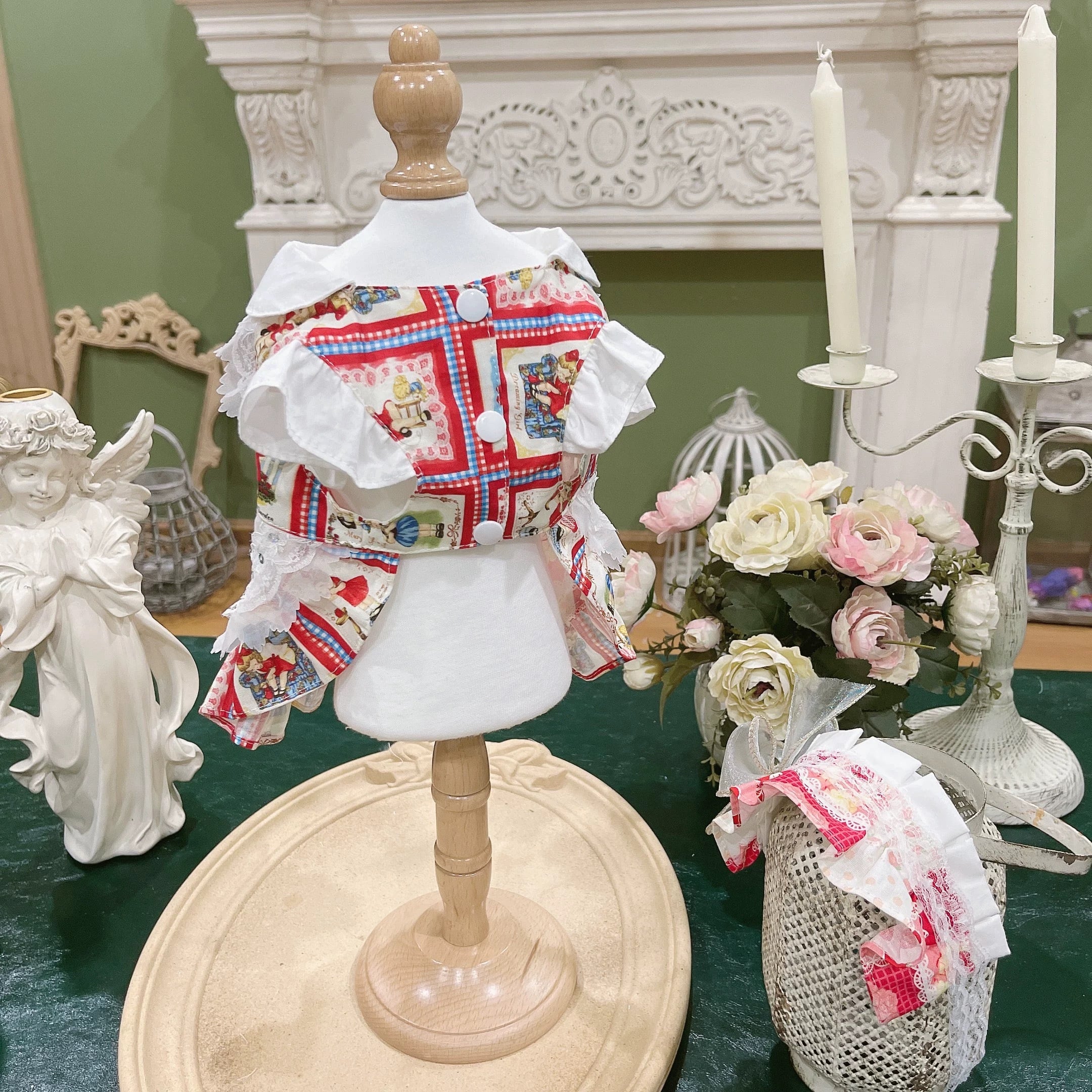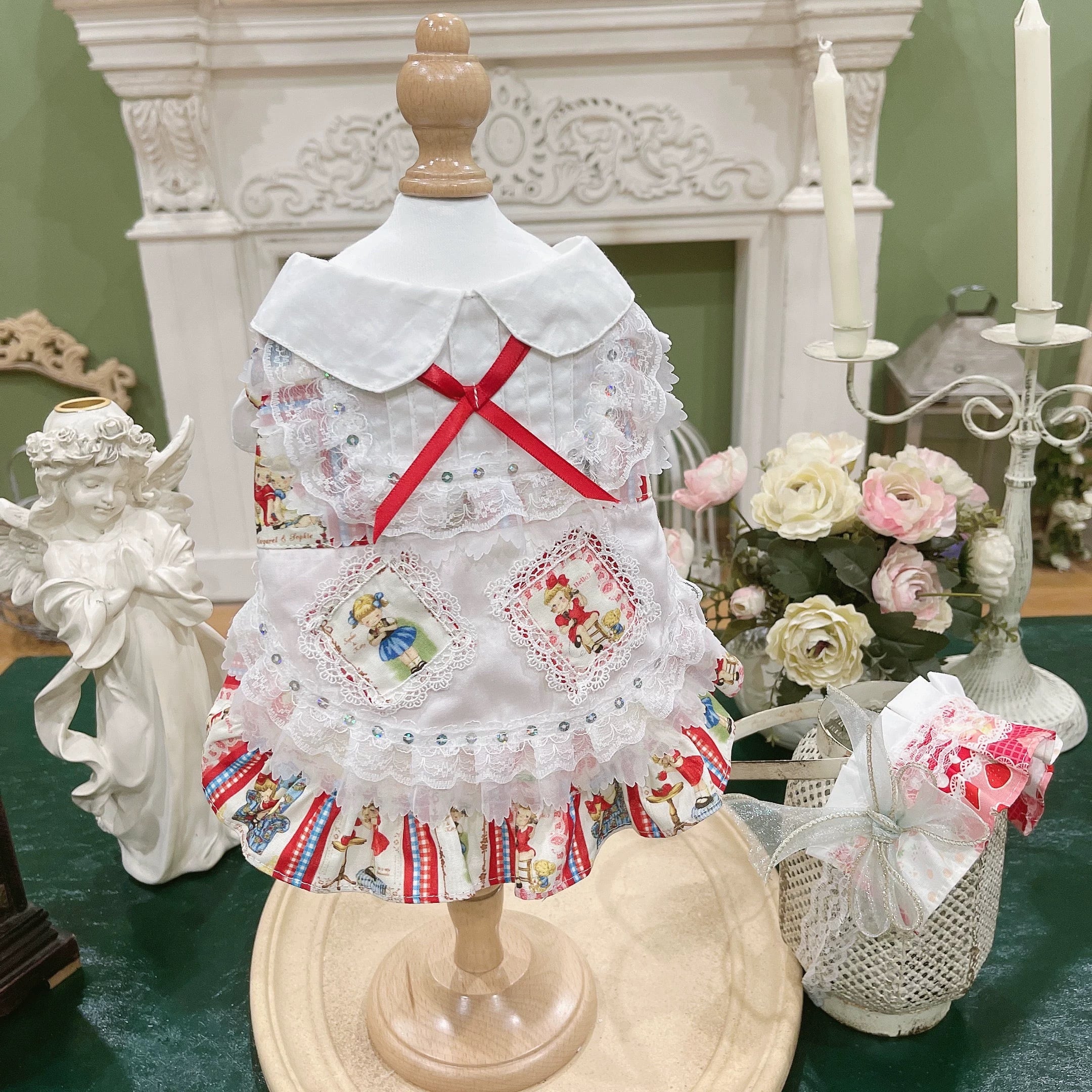 繊細なレースと女の子のプリントが、可愛らしさと上品さを同時に演出します。