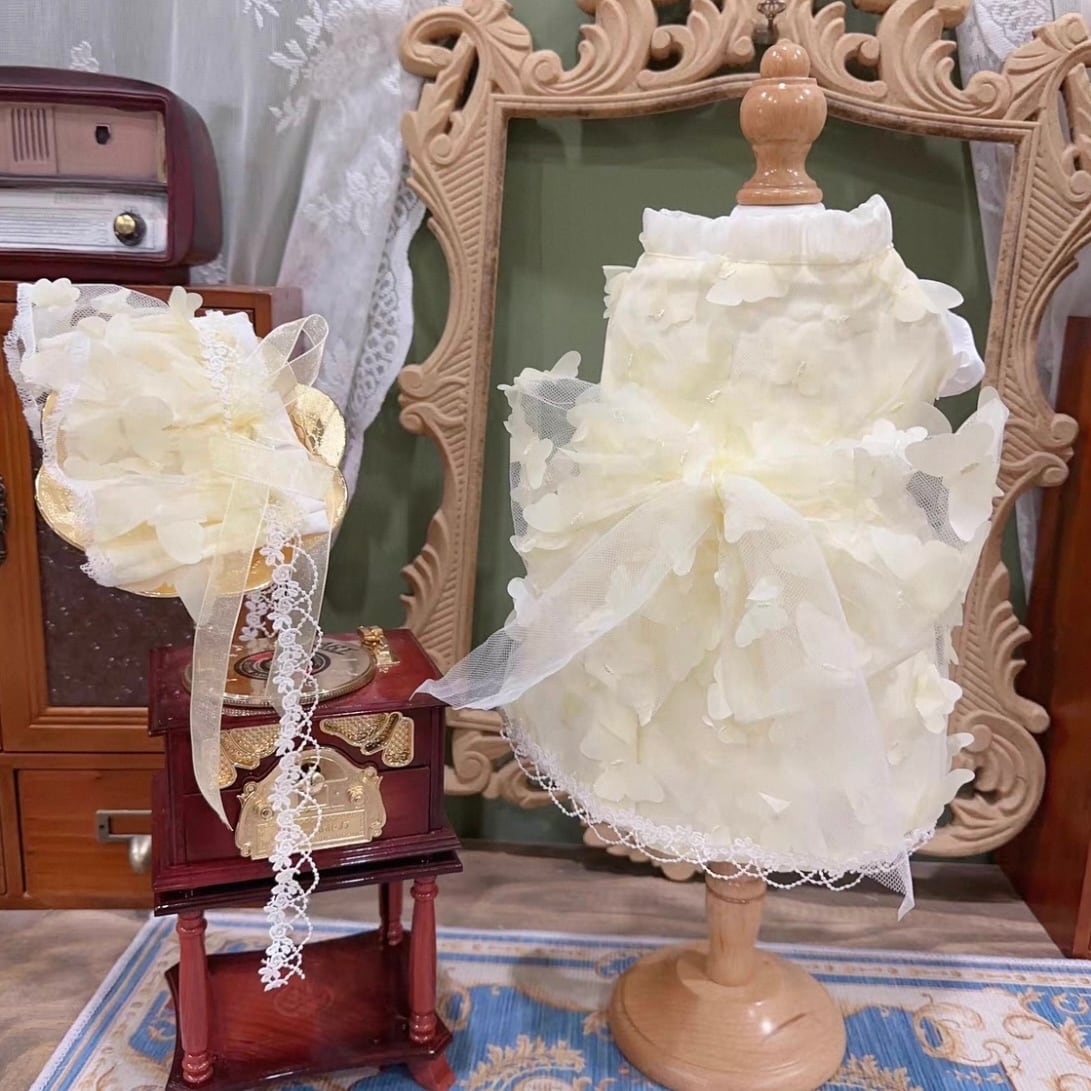 繊細な蝶々が幾重にも重なり、見る角度によって表情を変える美しいデザイン。