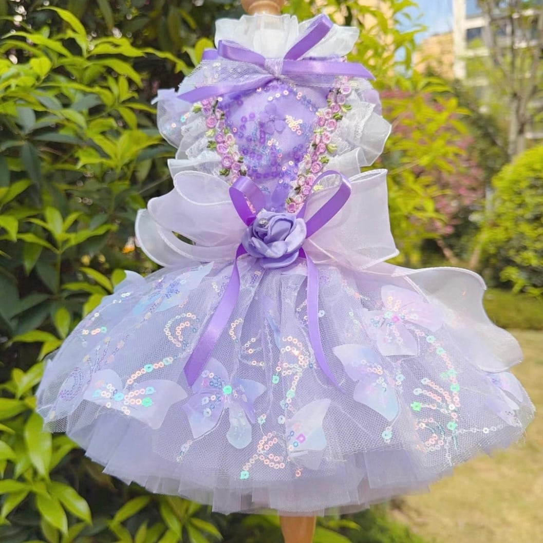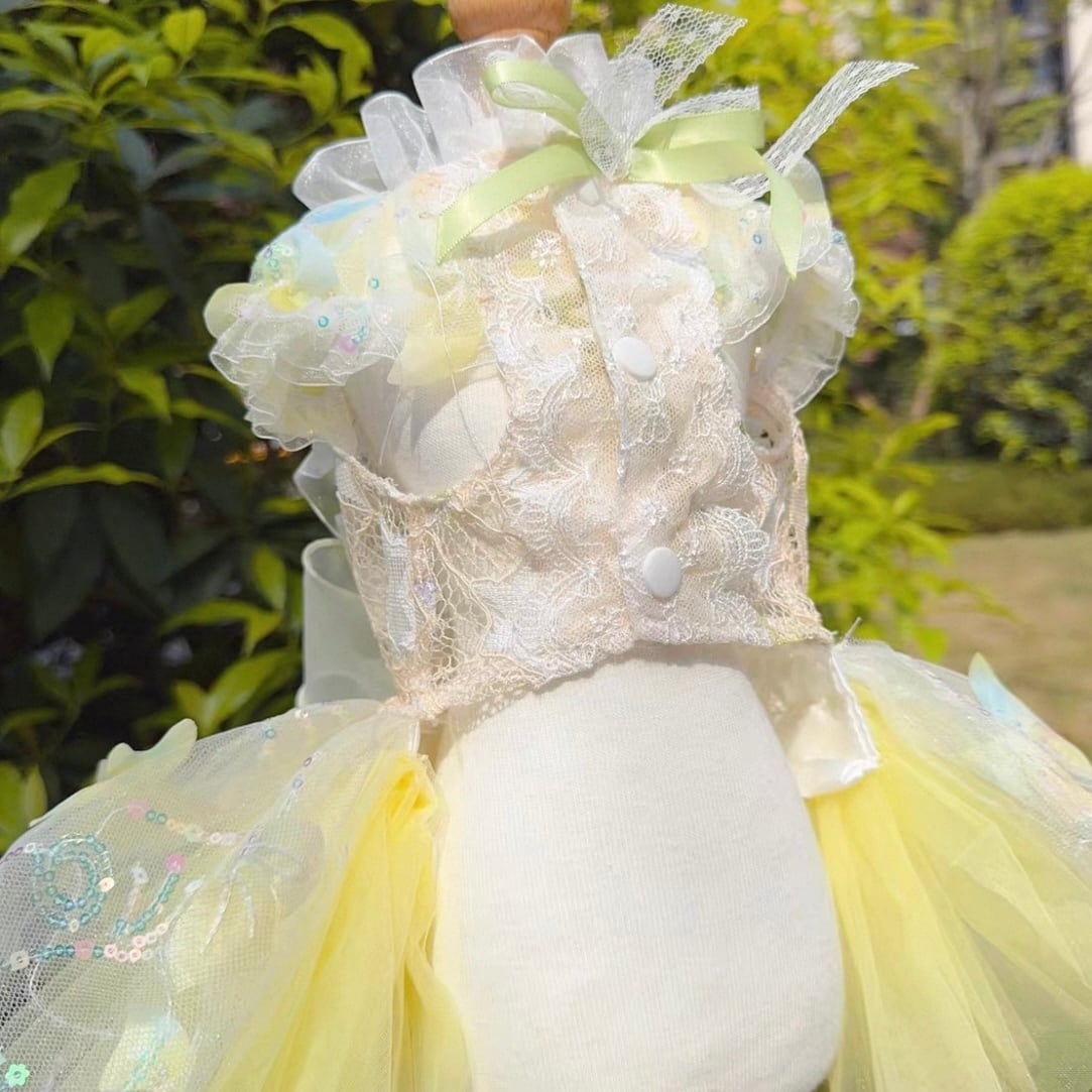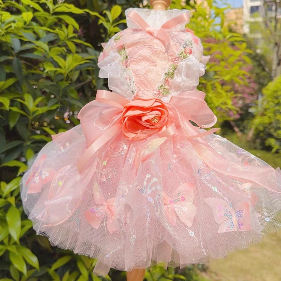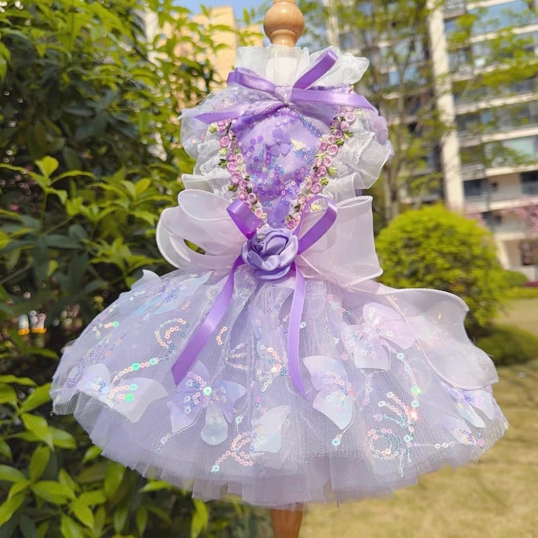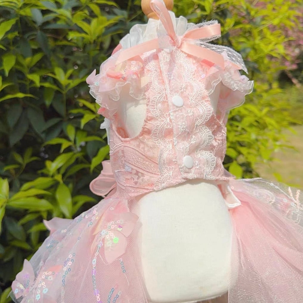 軽やかに舞う蝶のモチーフが散りばめられたチュールスカート。華やかなパステルカラーが、春の訪れを感じさせるような魅力的なデザインです。上品なリボンと繊細な装飾が、可憐な印象をさらに高めてくれます。お散歩やピクニック、特別な日の装いなど、様々なシーンで活躍すること間違いなしです。
