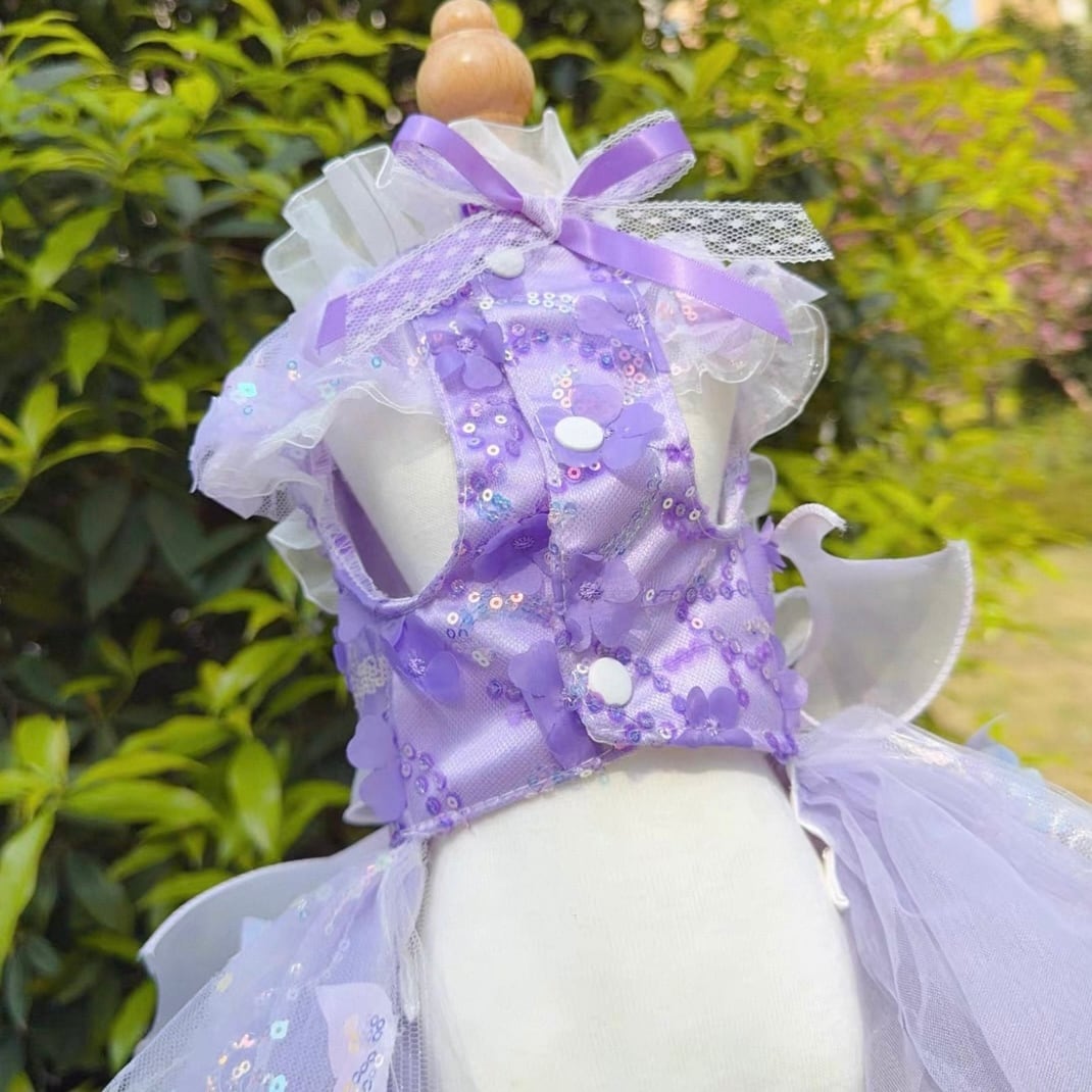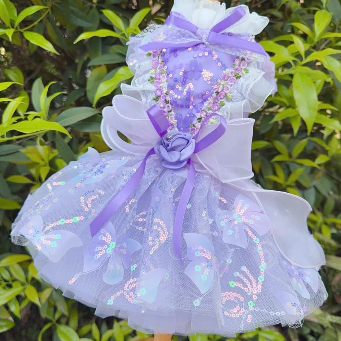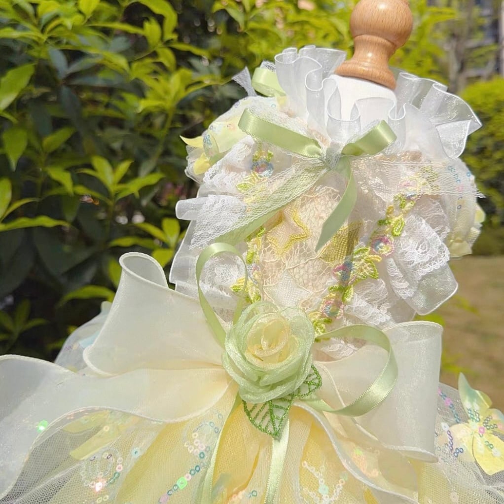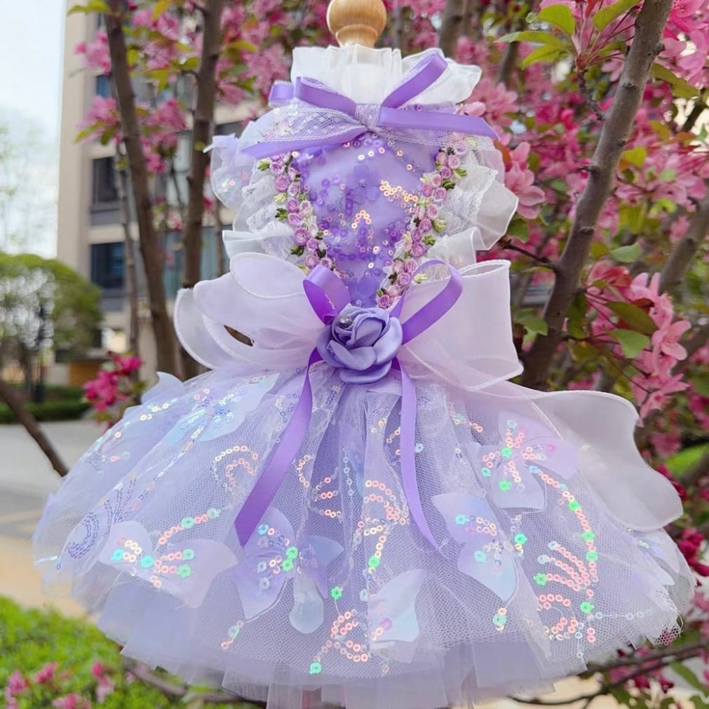 軽やかに舞う蝶のモチーフが散りばめられたチュールスカート。華やかなパステルカラーが、春の訪れを感じさせるような魅力的なデザインです。上品なリボンと繊細な装飾が、可憐な印象をさらに高めてくれます。お散歩やピクニック、特別な日の装いなど、様々なシーンで活躍すること間違いなしです。