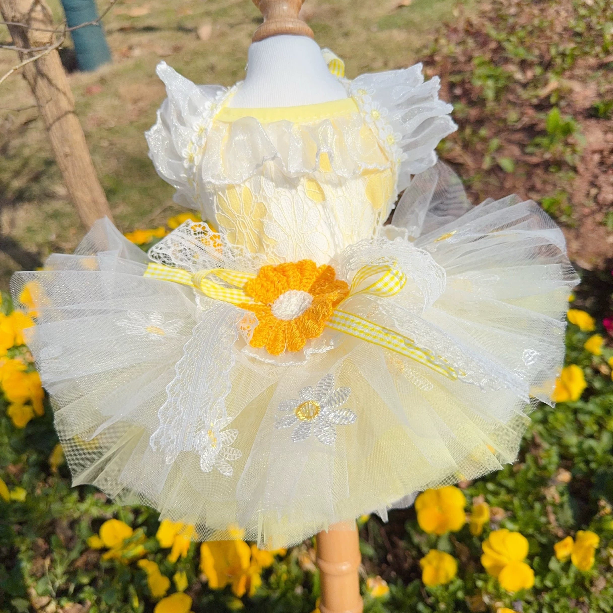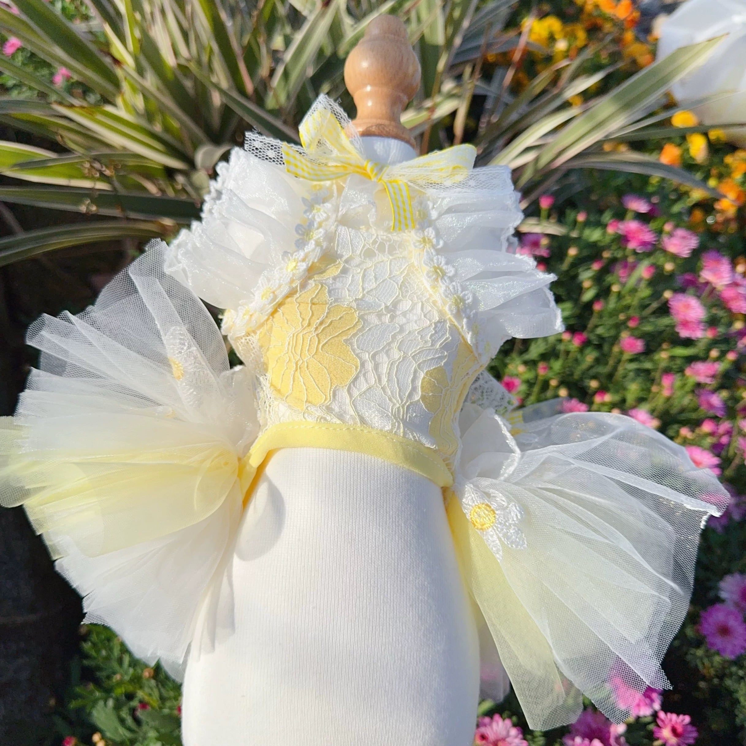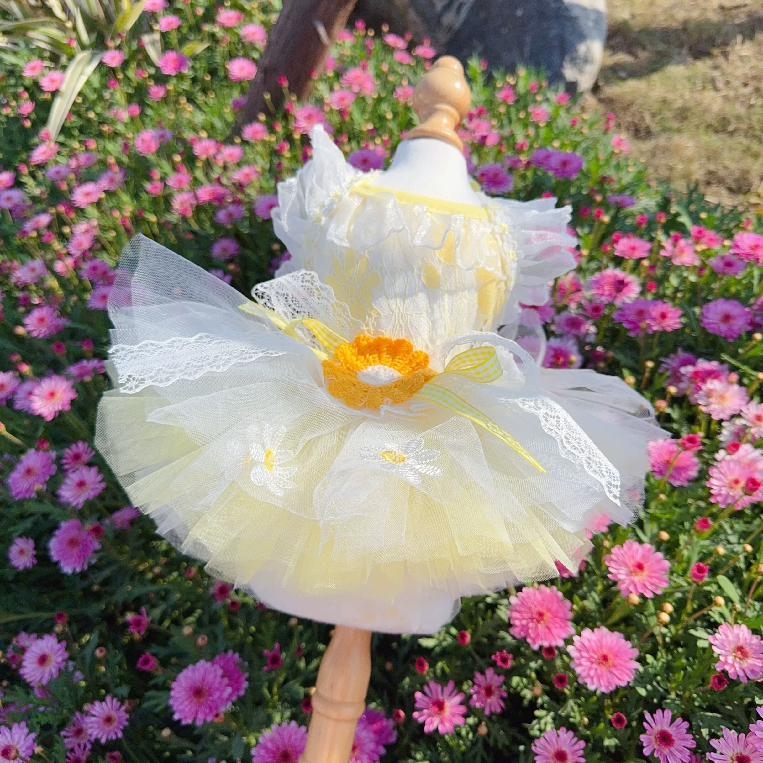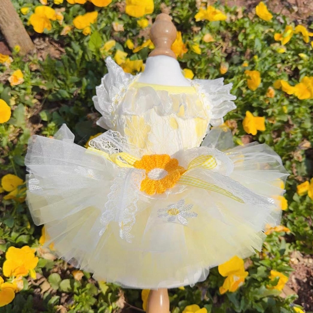 チュールスカートの繊細なレイヤードが、春の訪れを告げるような軽やかさを演出します。
