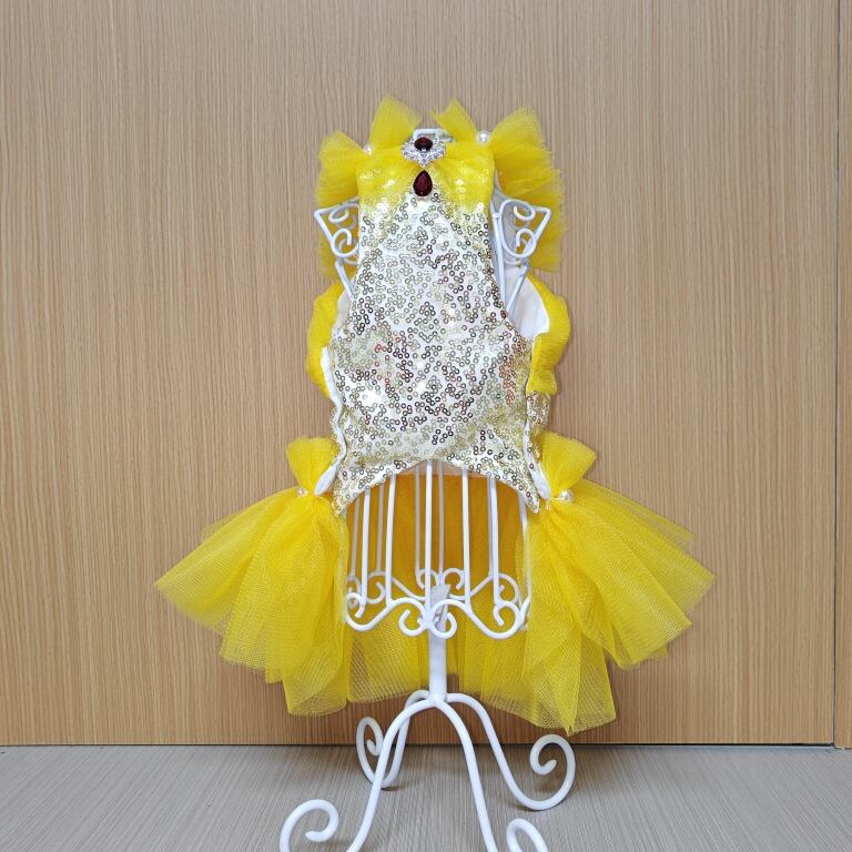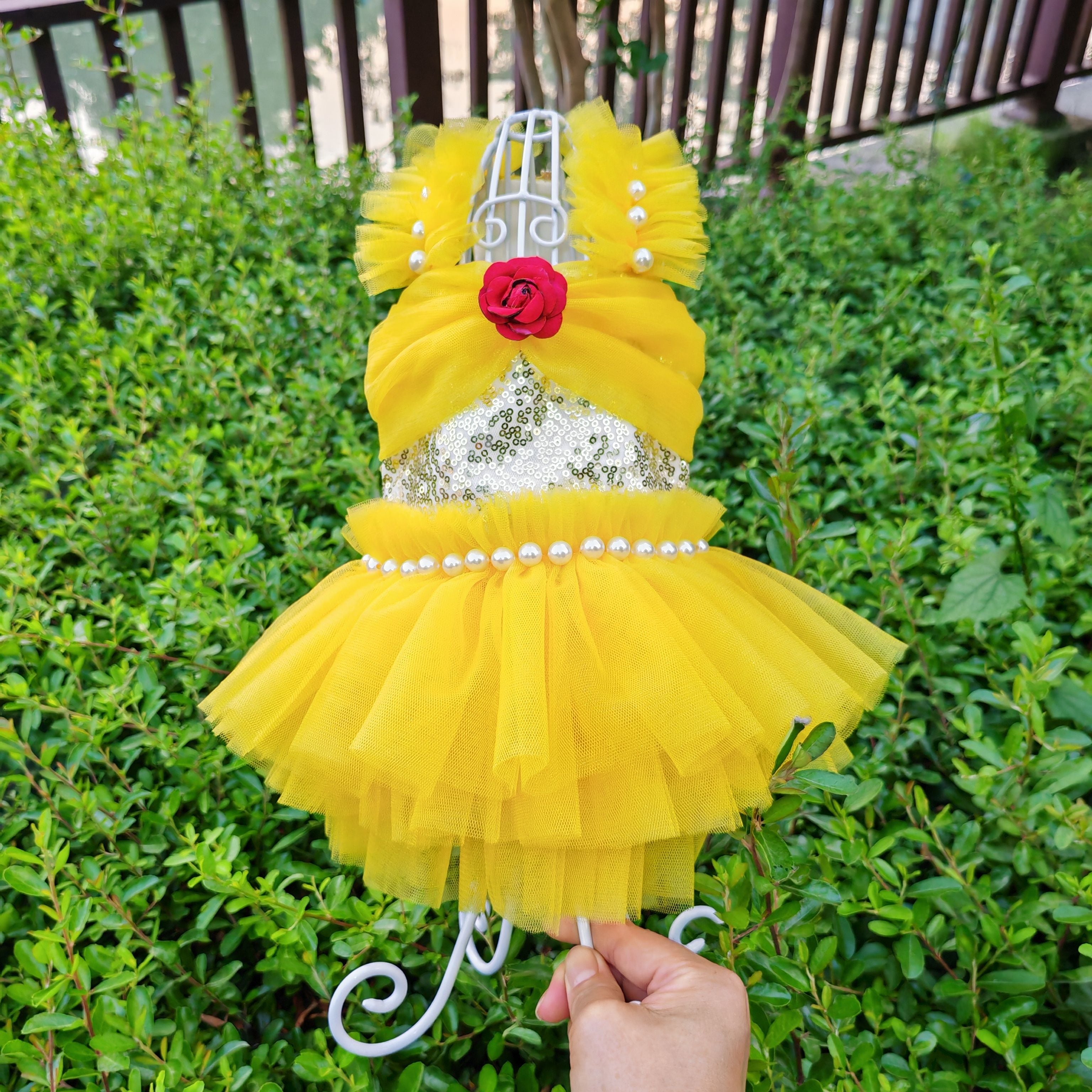 「美女と野獣」のベルを思わせるデザインで、愛犬を物語のヒロインへと導く特別な一着。