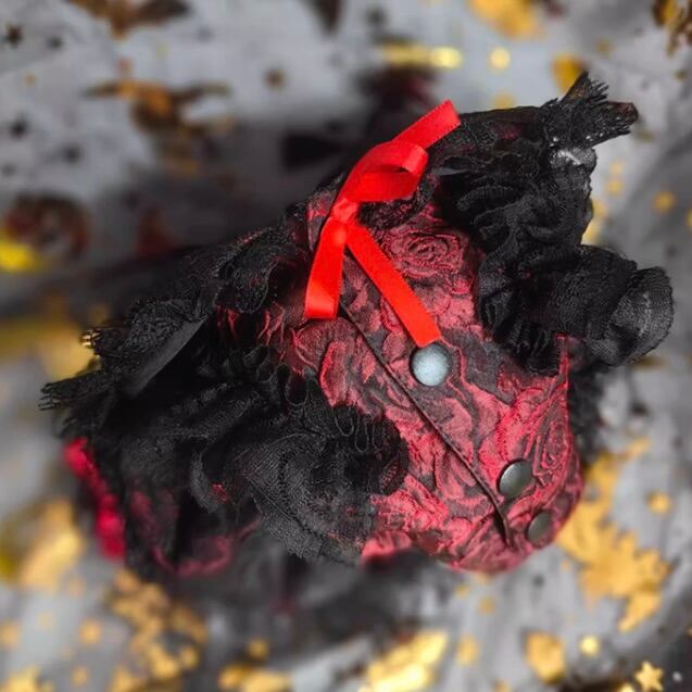 レディ用は黒のレースと赤い薔薇モチーフが重なり、リボンが可憐に揺れるプリンセススタイル。