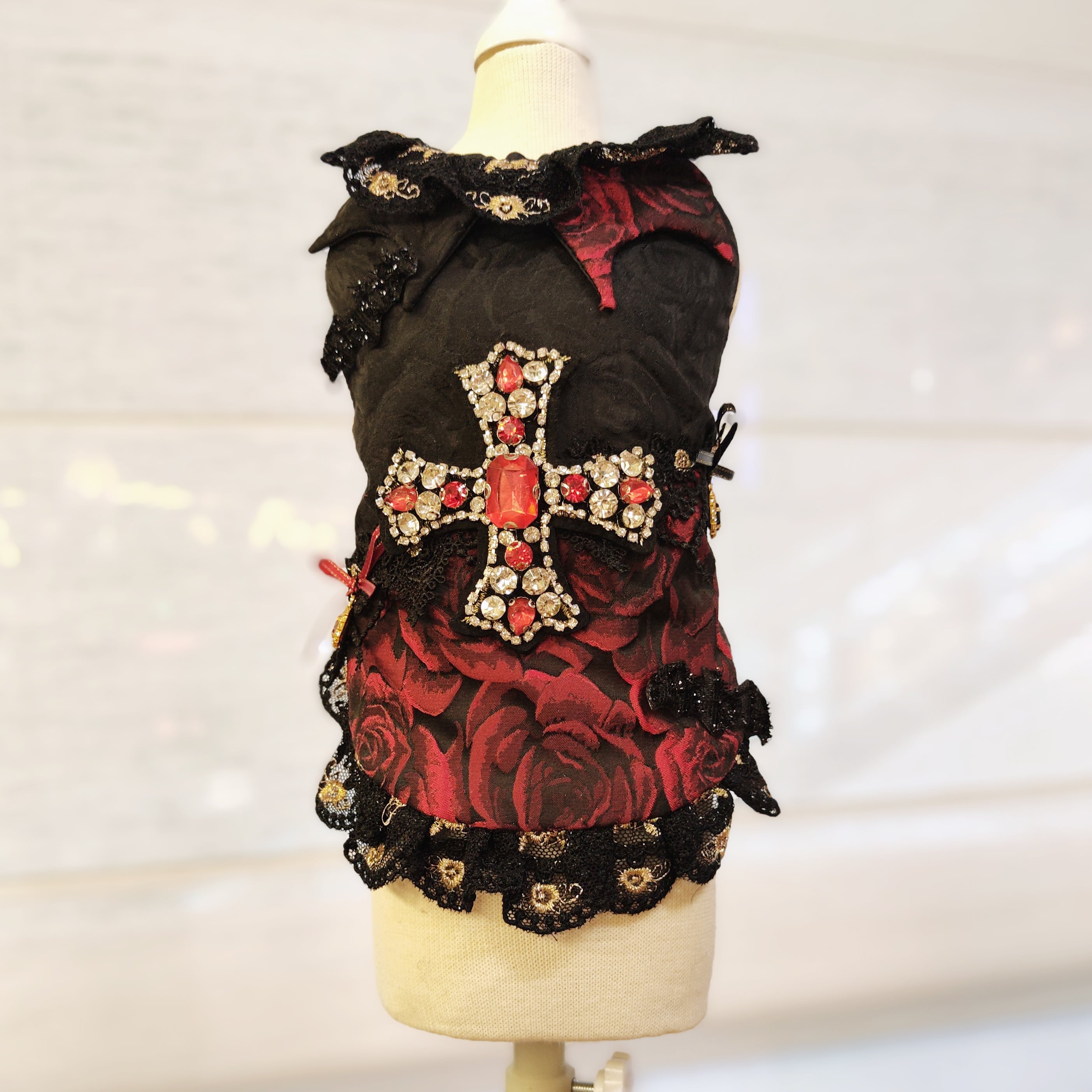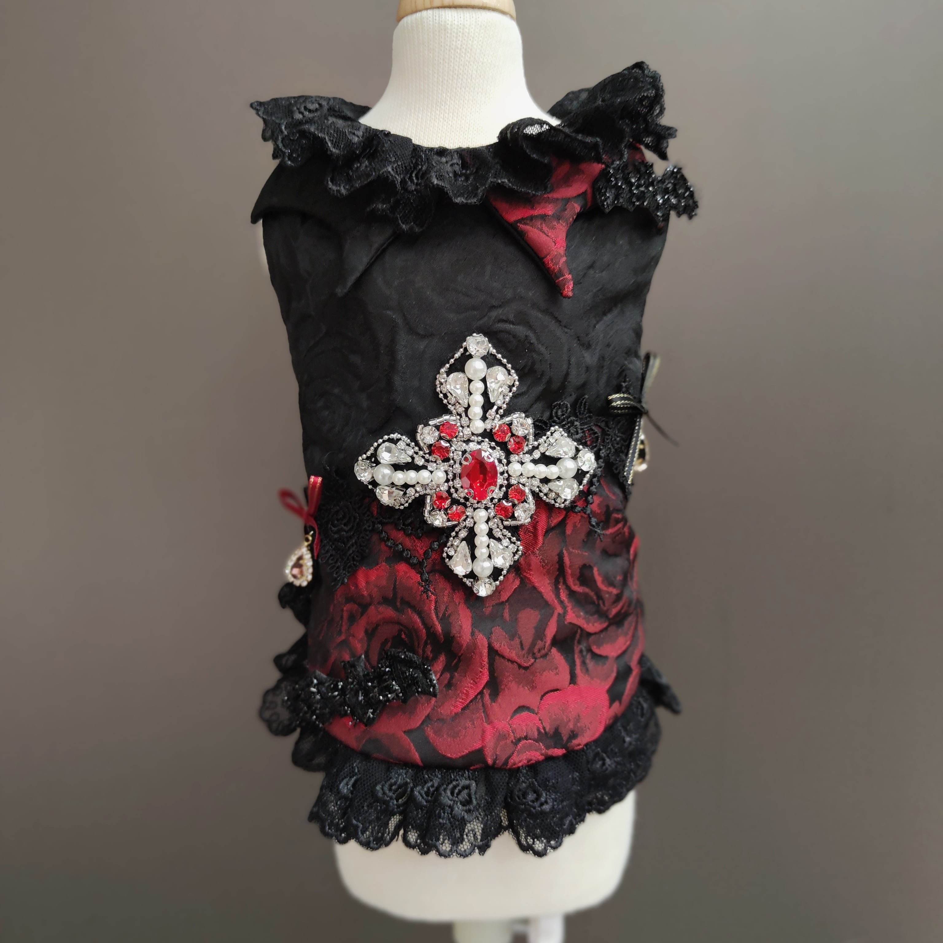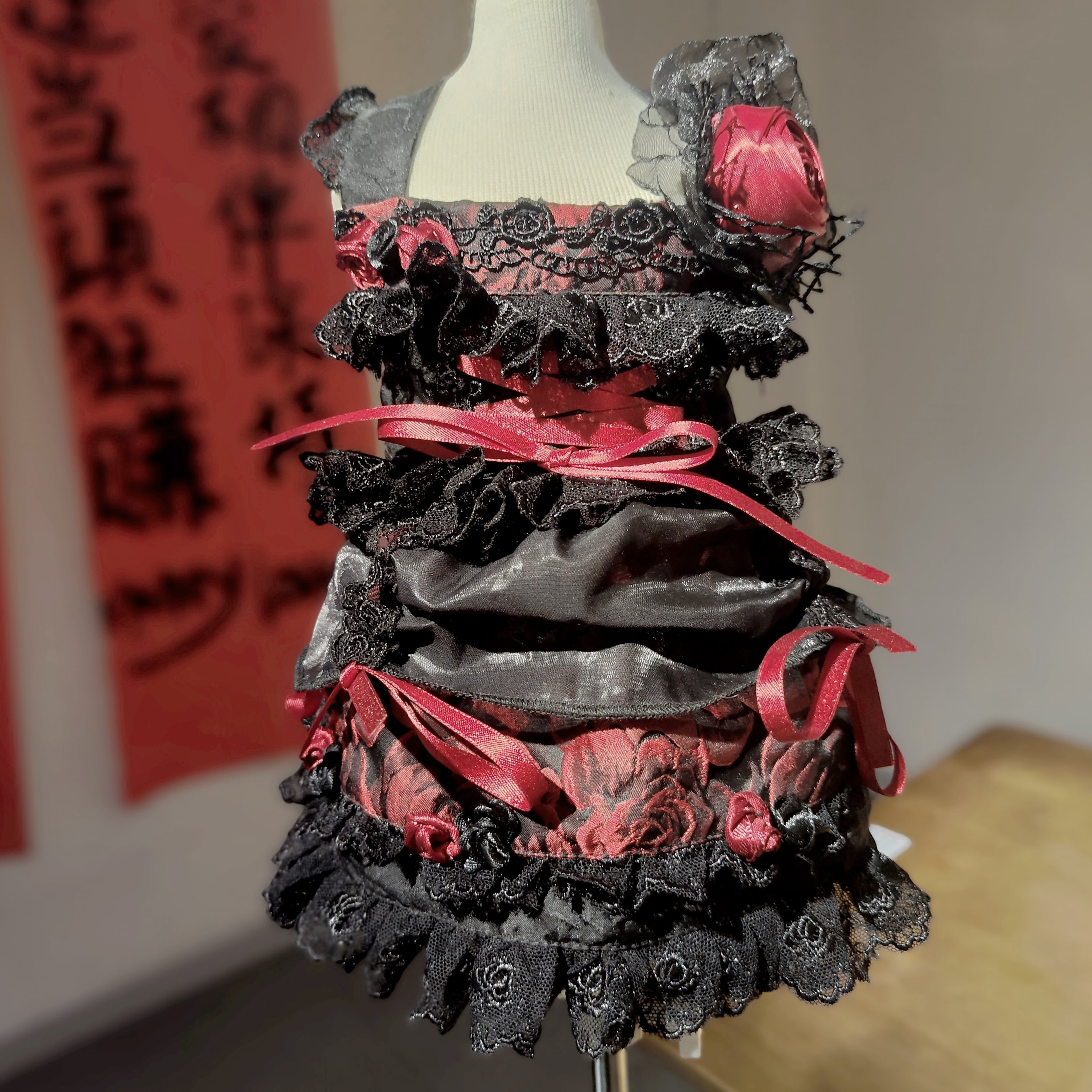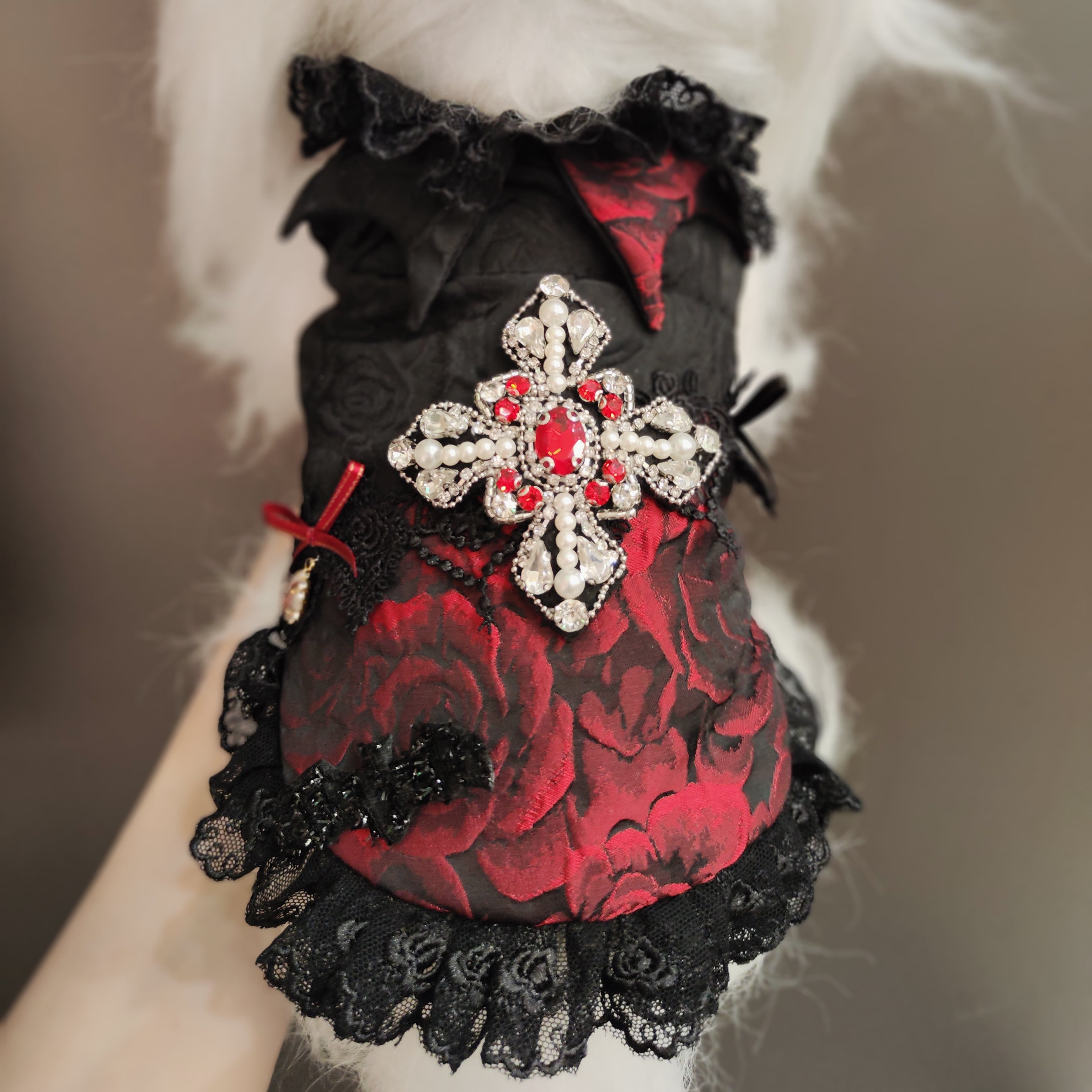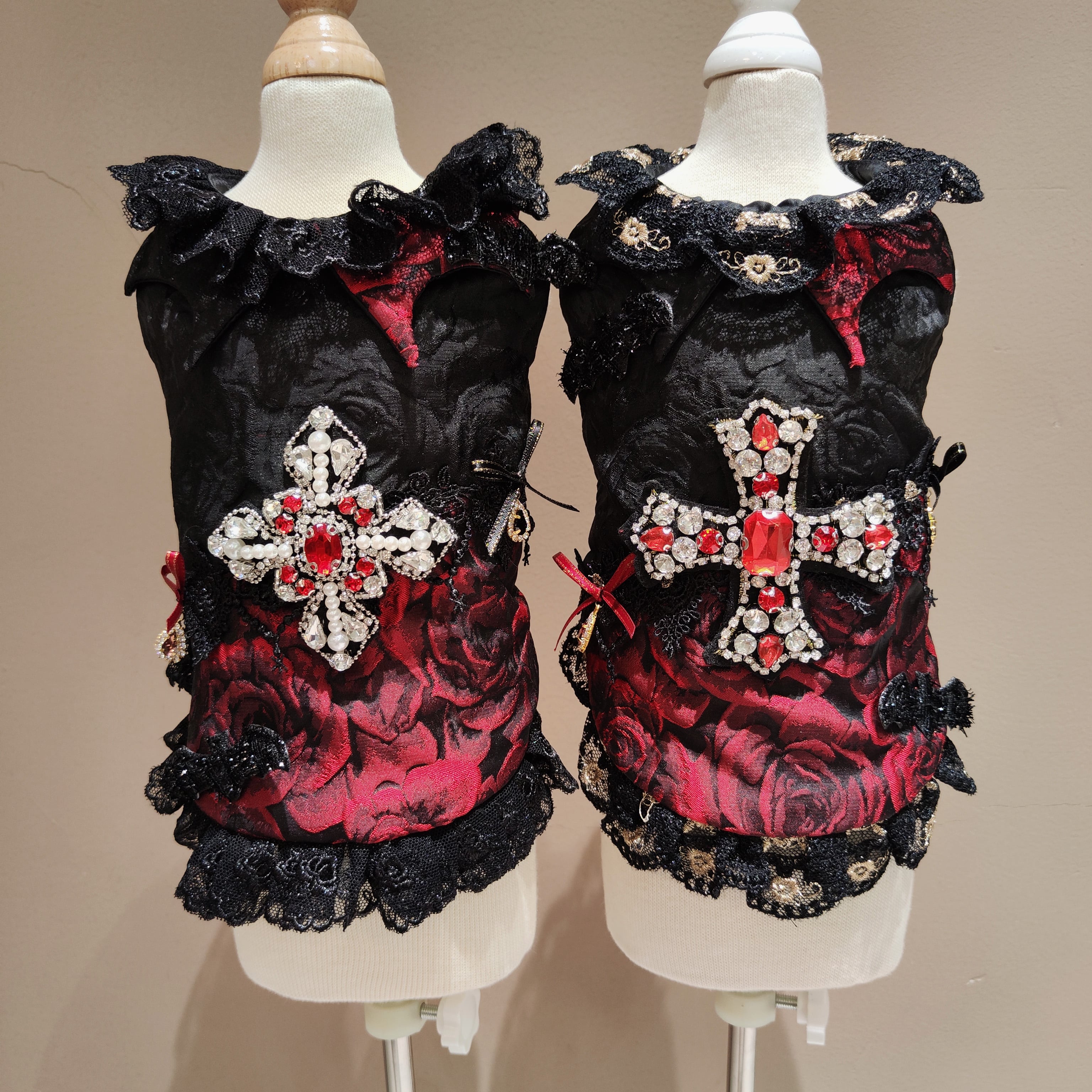 ゴールドの煌めき、漆黒のレース、深紅の薔薇──3つの異なるスタイルが、愛犬を特別な存在に引き立てます。