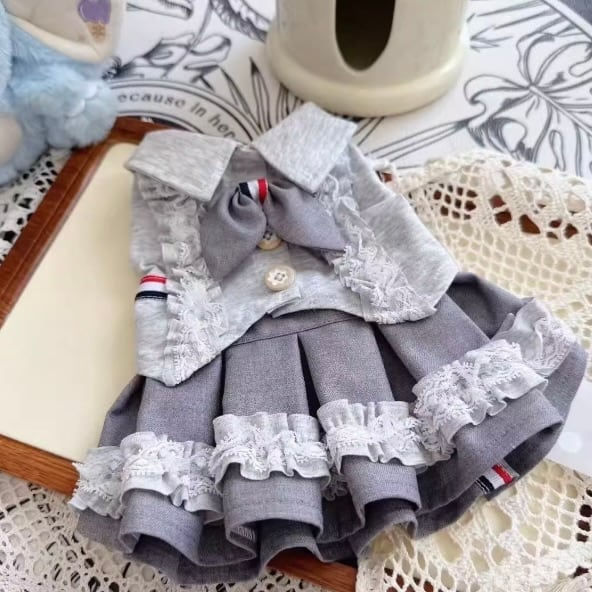 クラシカルな制服風のトップスに、プリーツスカートが軽やかに広がり、