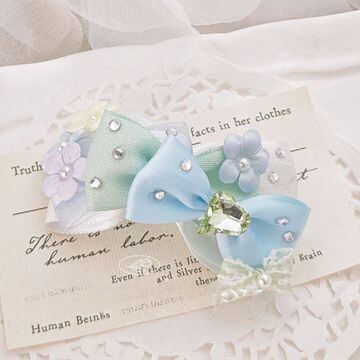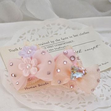 リボン全体に散りばめられたストーンが光を受けてきらきらと輝き、特別な日のお出かけや撮影会にもぴったり。