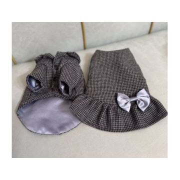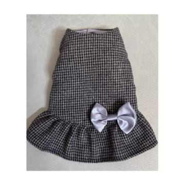 千鳥格子柄に上品なグレーリボンをあしらった、クラシカルなワンピース。