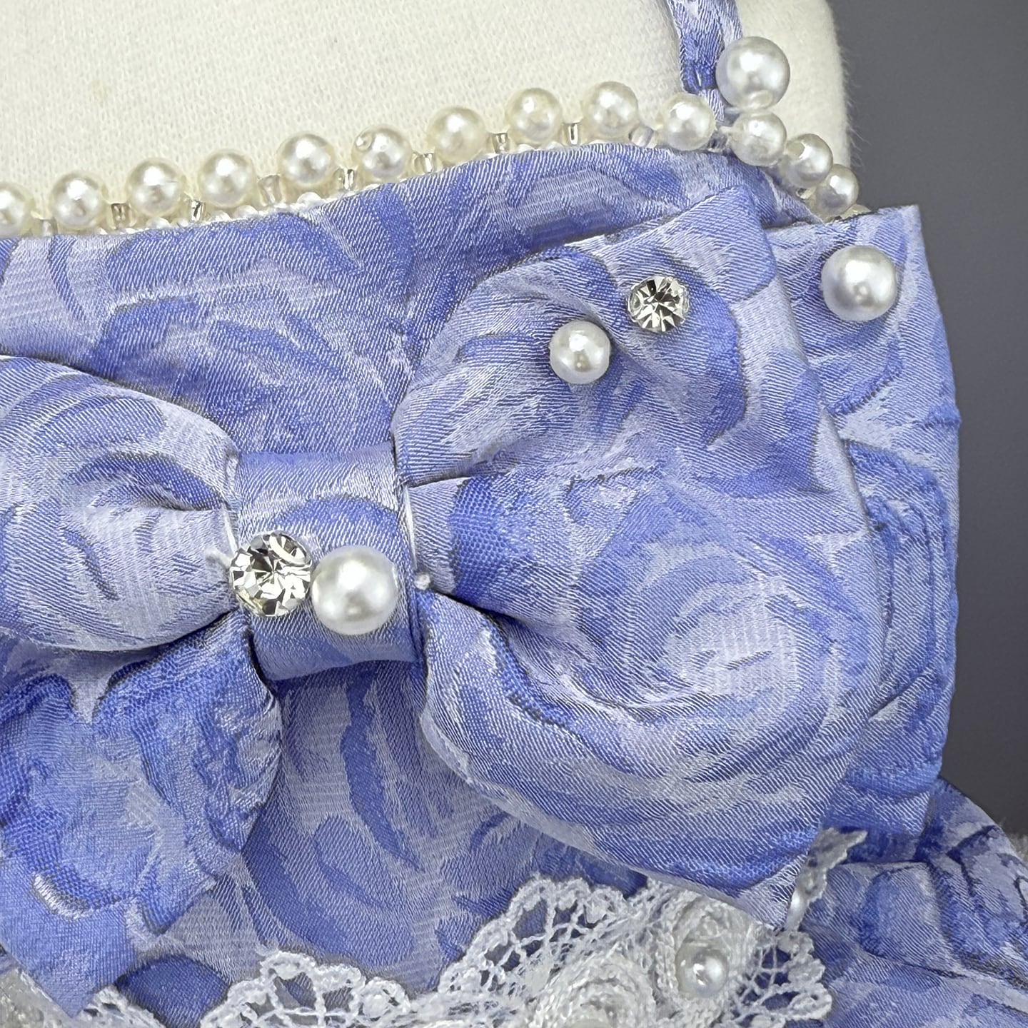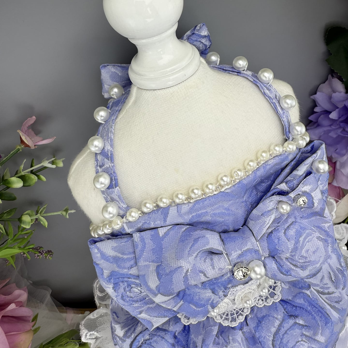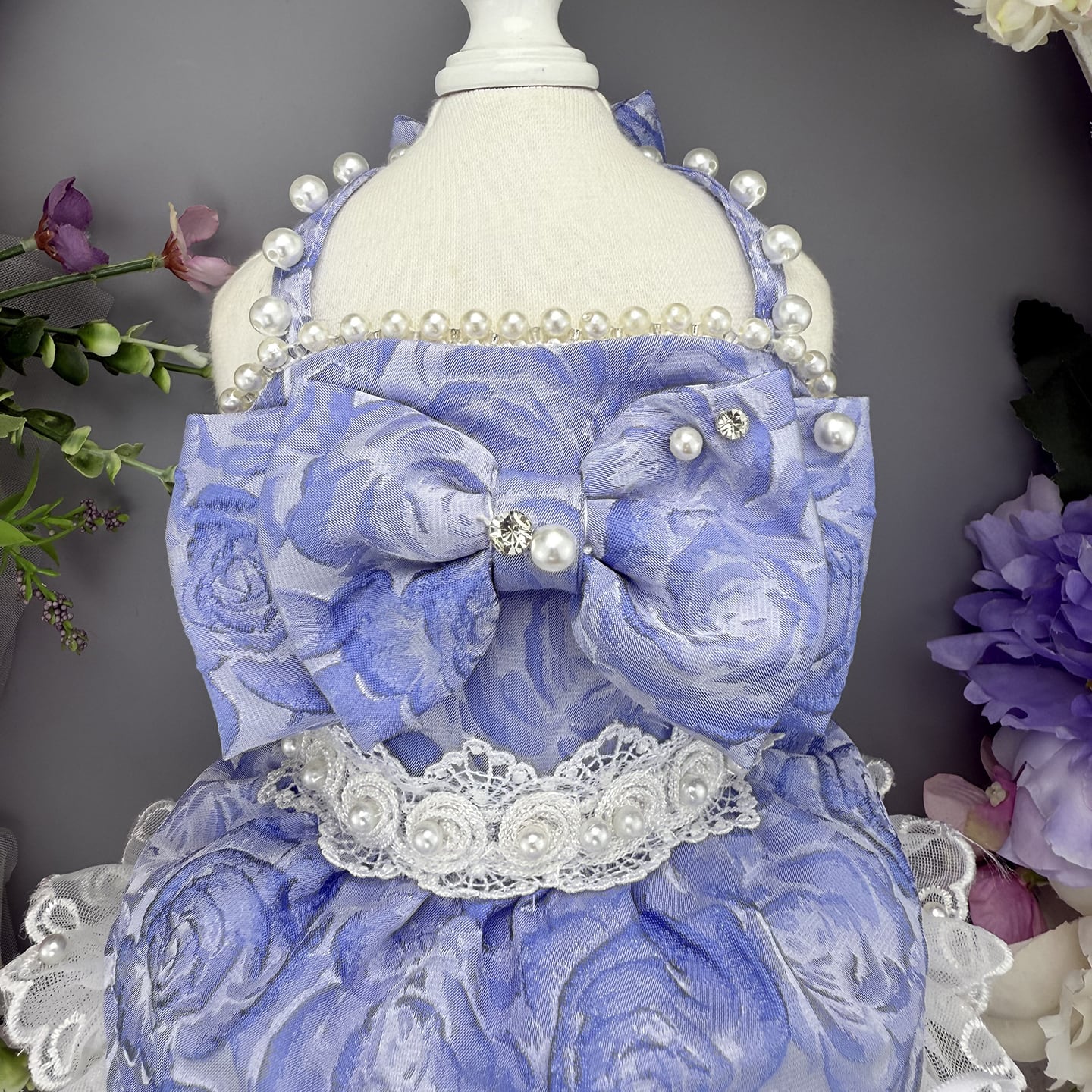 ふんわり広がるチュールスカートには繊細なレースとリボンを添え、可愛らしさをぎゅっと詰め込みました。ウエストには華やかな大きなリボン、胸元にはパールの装飾が輝き、まるでおとぎ話のお姫様のよう。