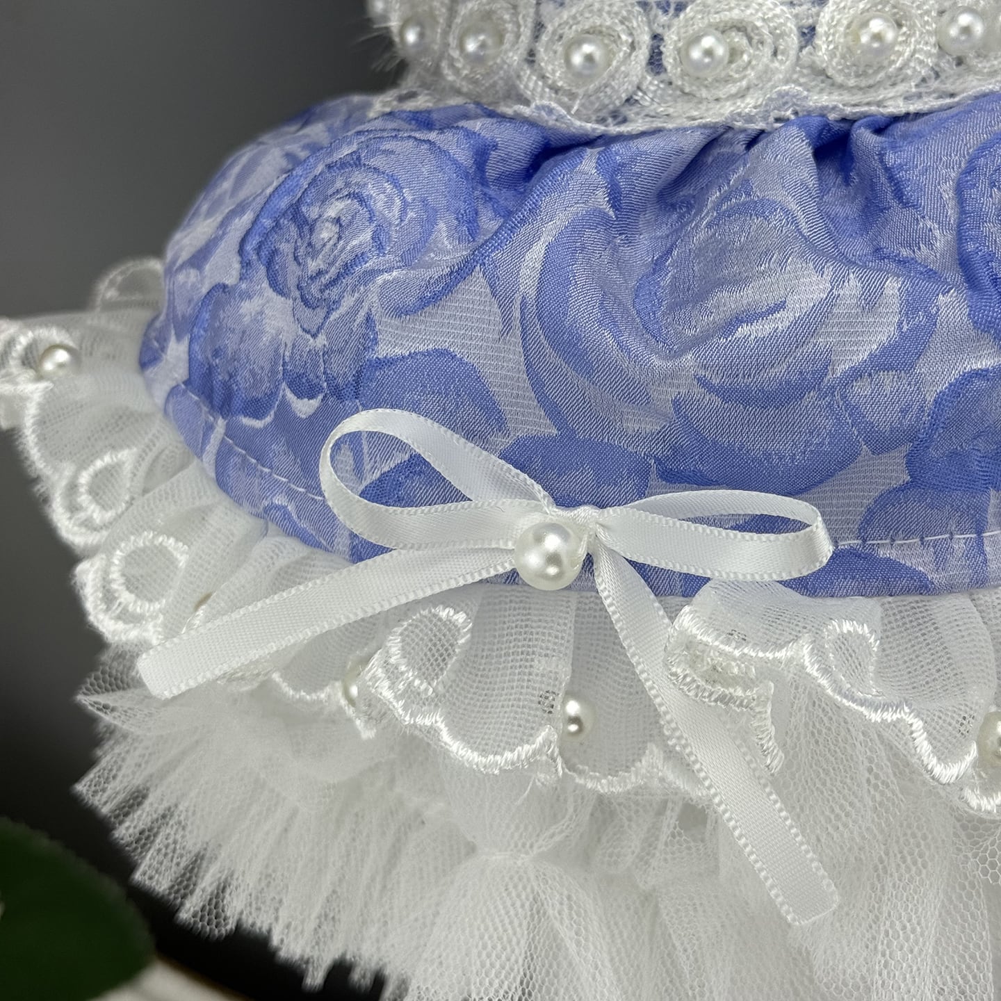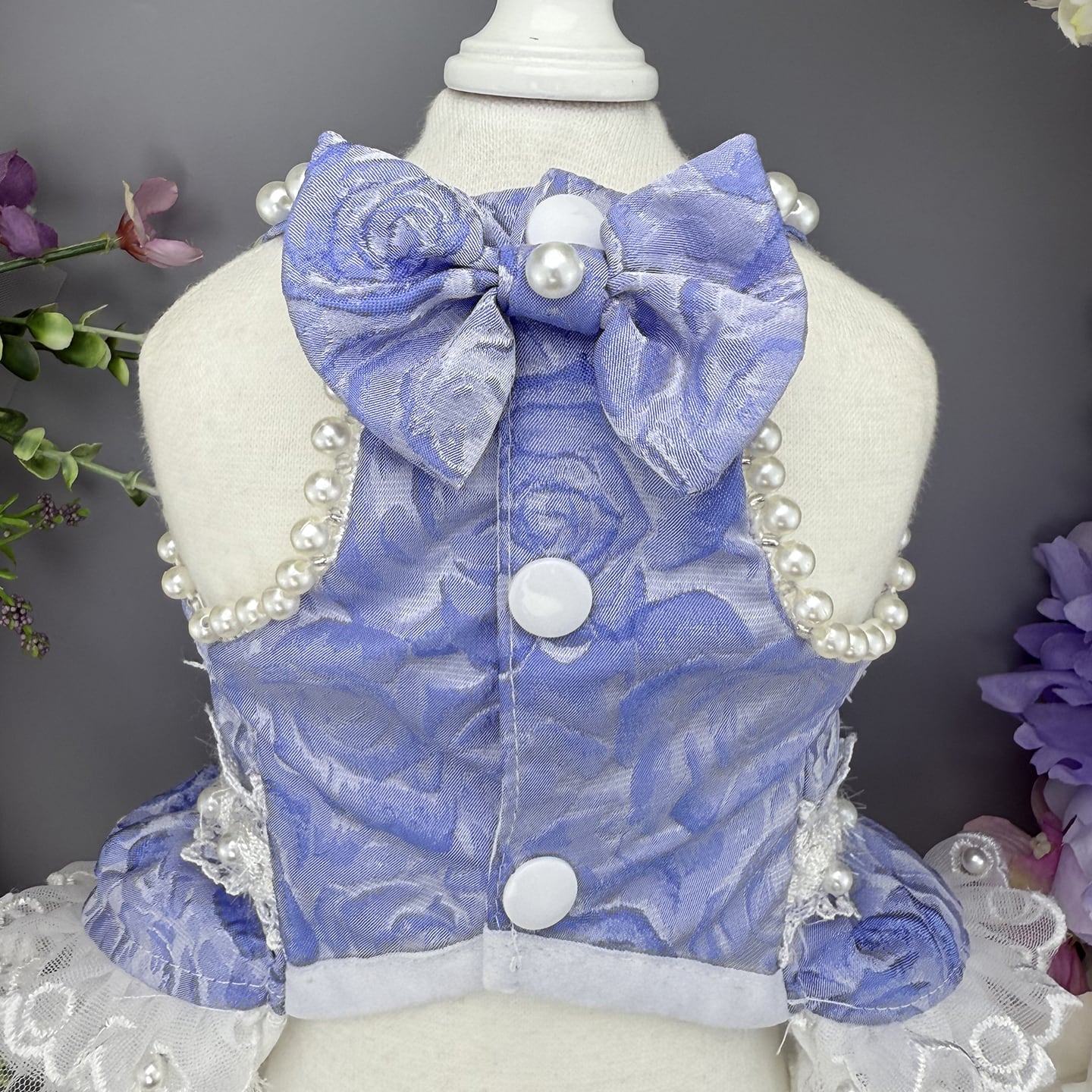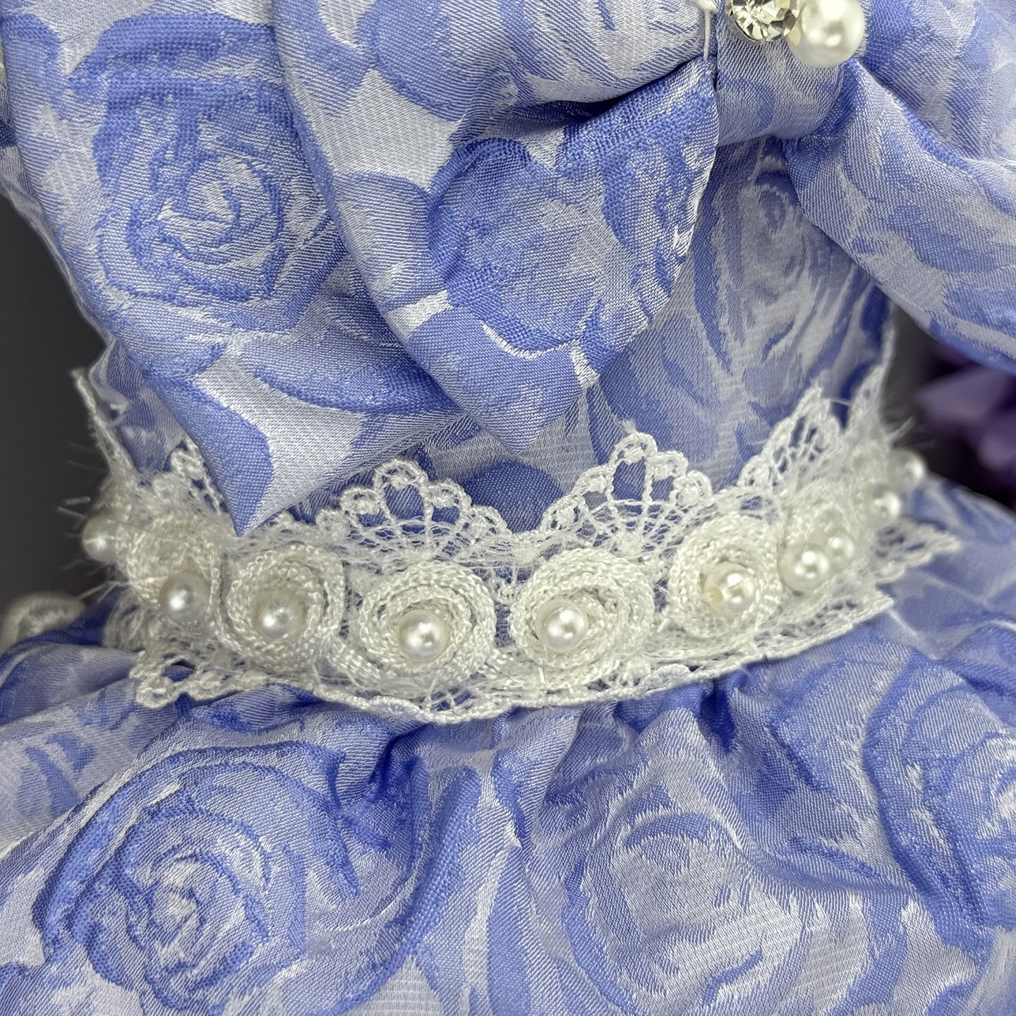 ふんわり広がるチュールスカートには繊細なレースとリボンを添え、可愛らしさをぎゅっと詰め込みました。ウエストには華やかな大きなリボン、胸元にはパールの装飾が輝き、まるでおとぎ話のお姫様のよう。