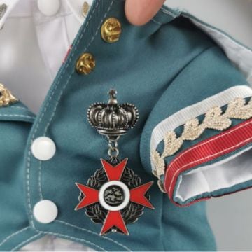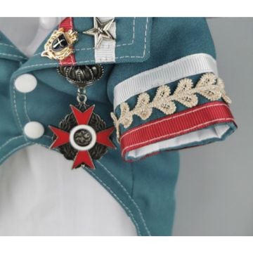 胸元には王冠付きの勲章モチーフや星の装飾があしらわれ、格式高い雰囲気を演出します。