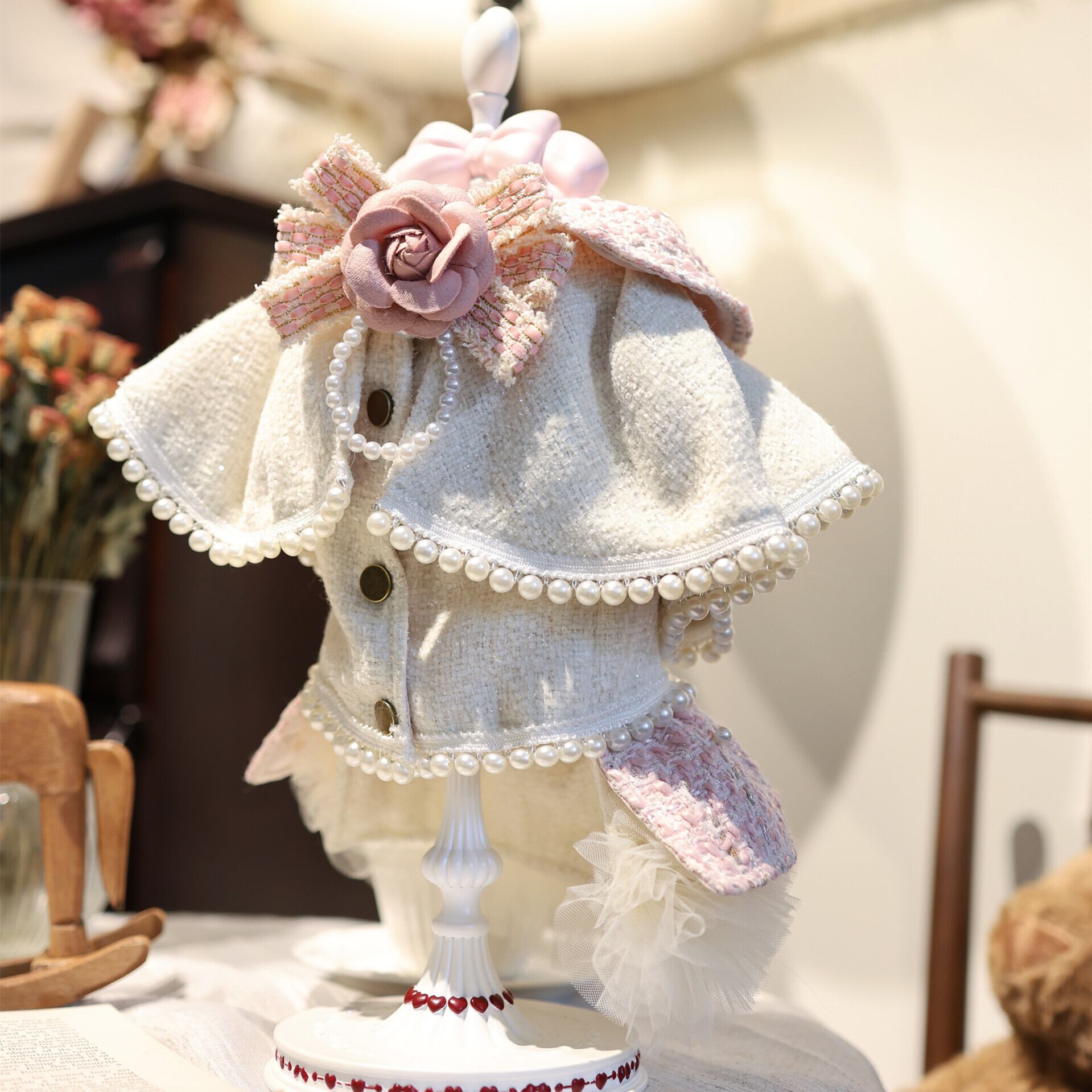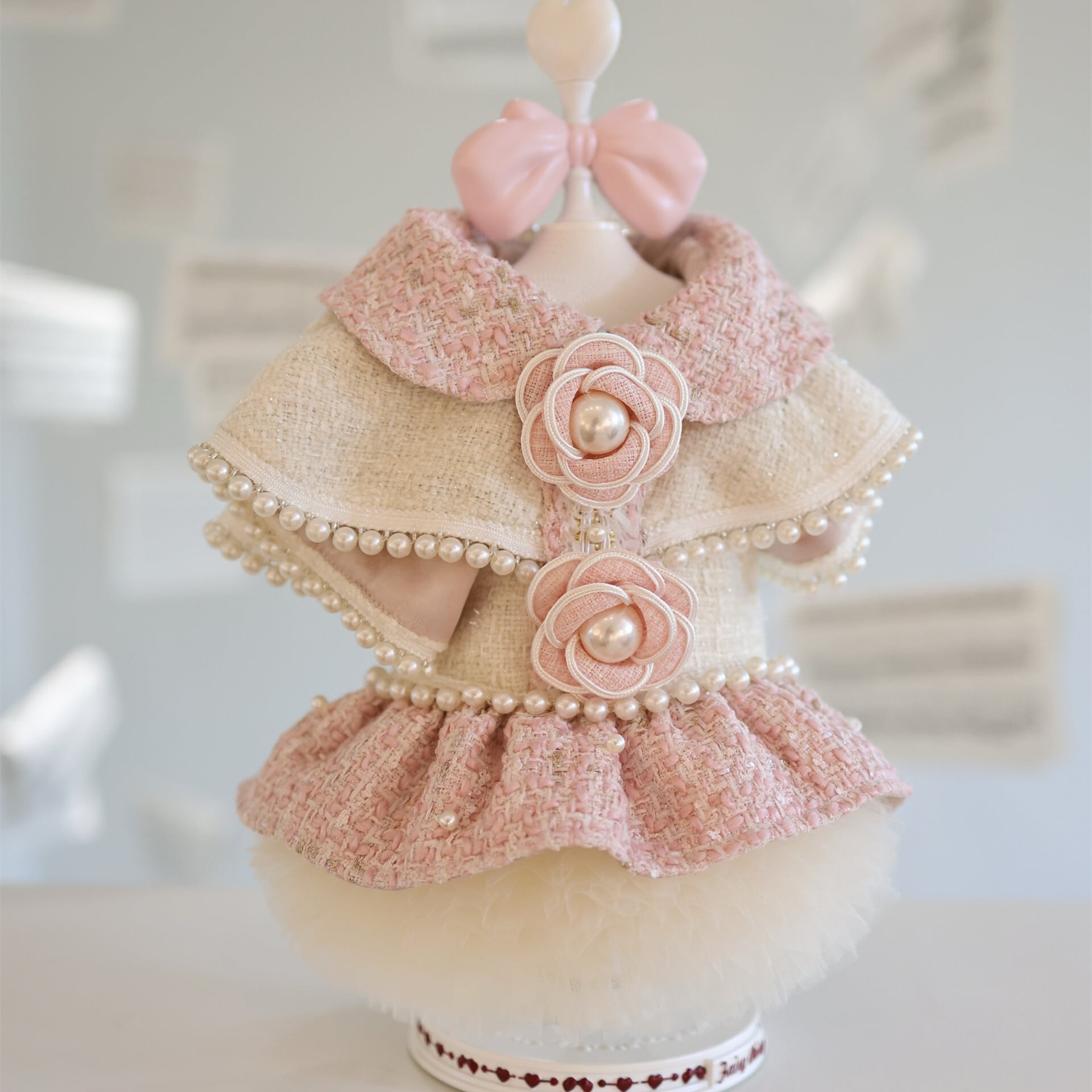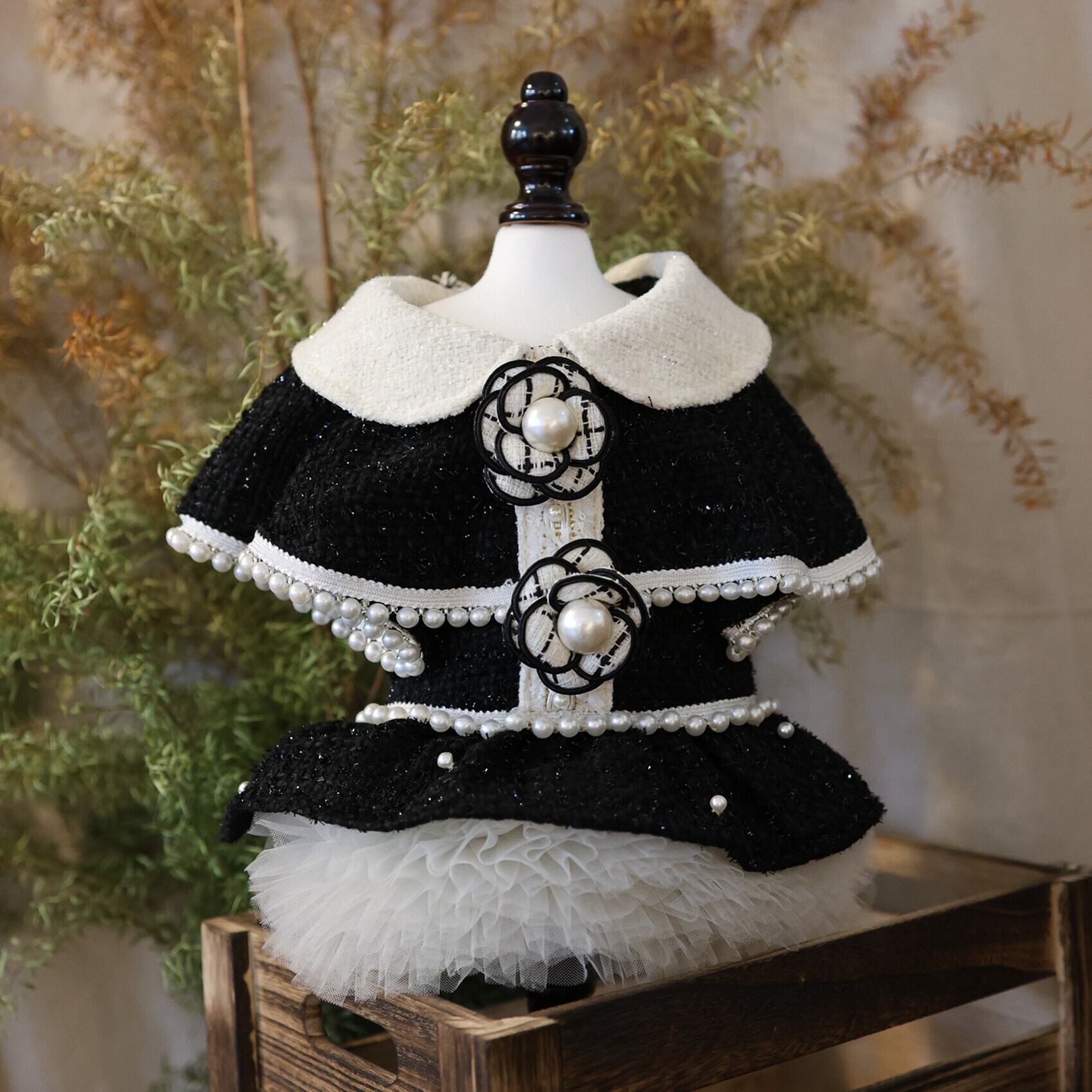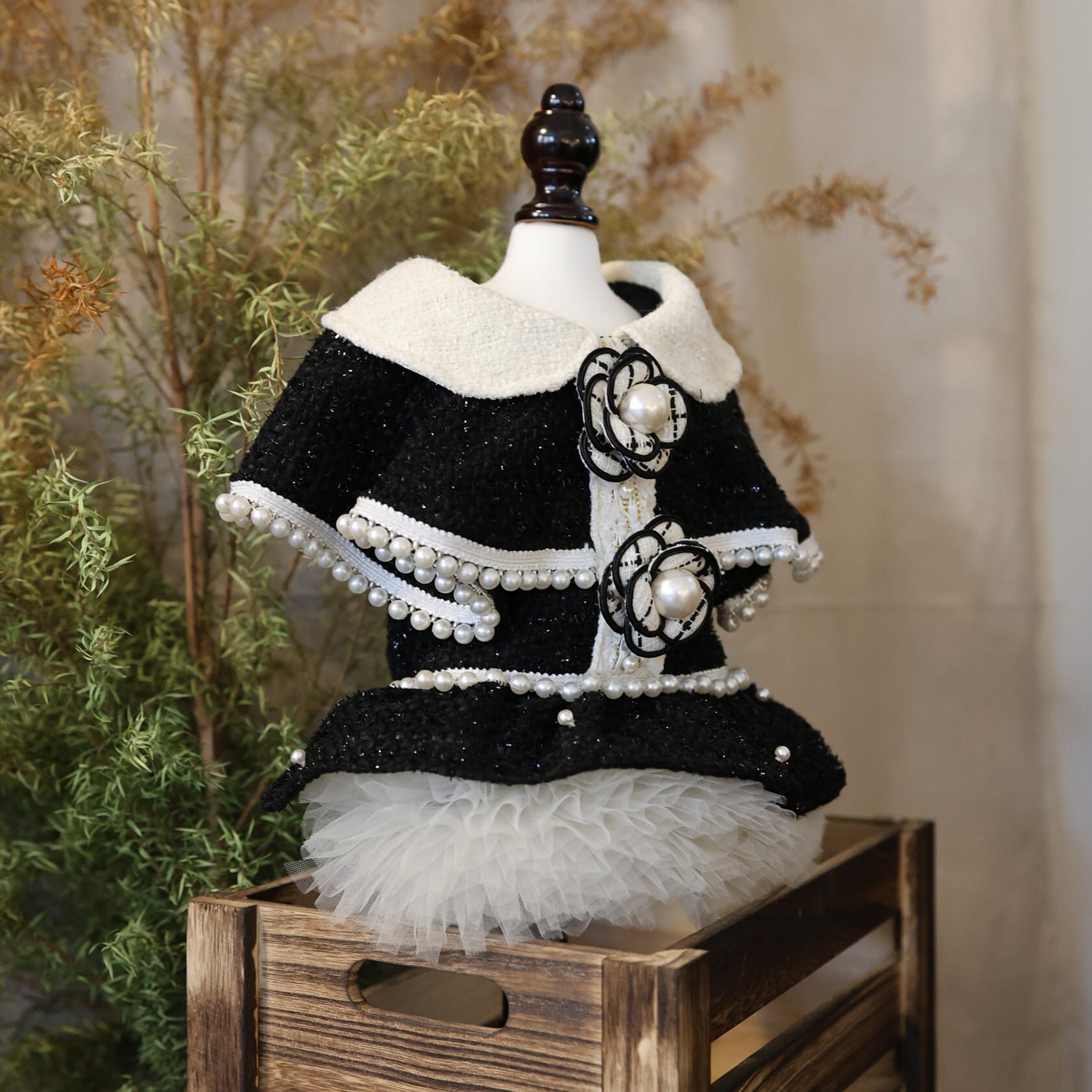 まるでおとぎ話のお姫様のために仕立てられたような、甘くロマンティックなツイードドレス。