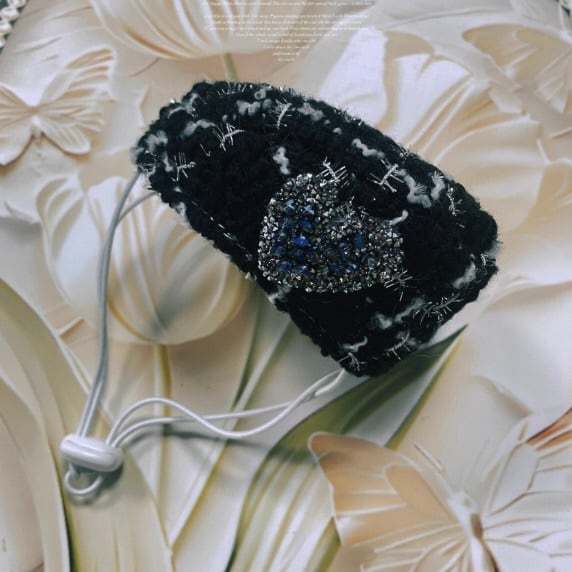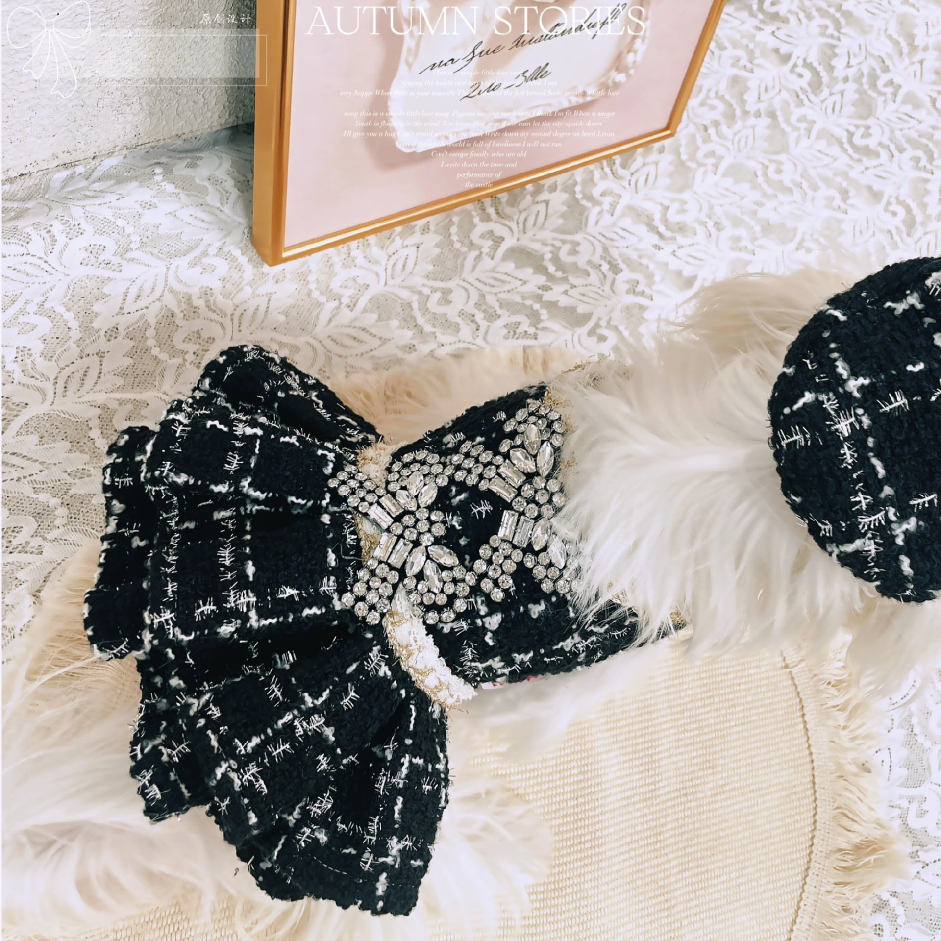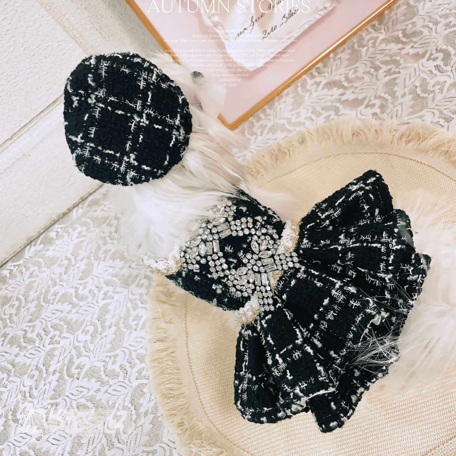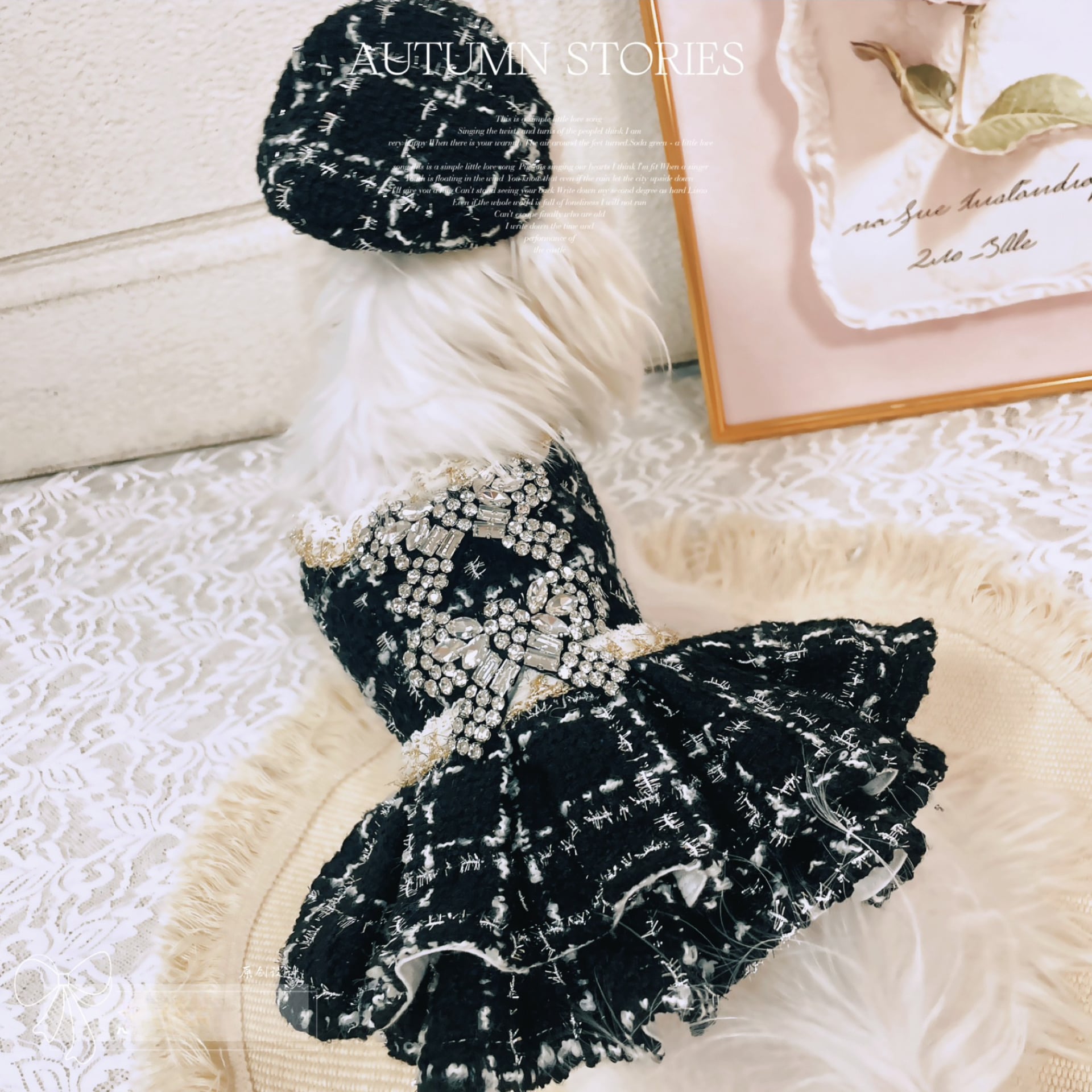 艶めくブラックツイードに、ゴールドのブレードとビジューがきらめく上品なデザイン。