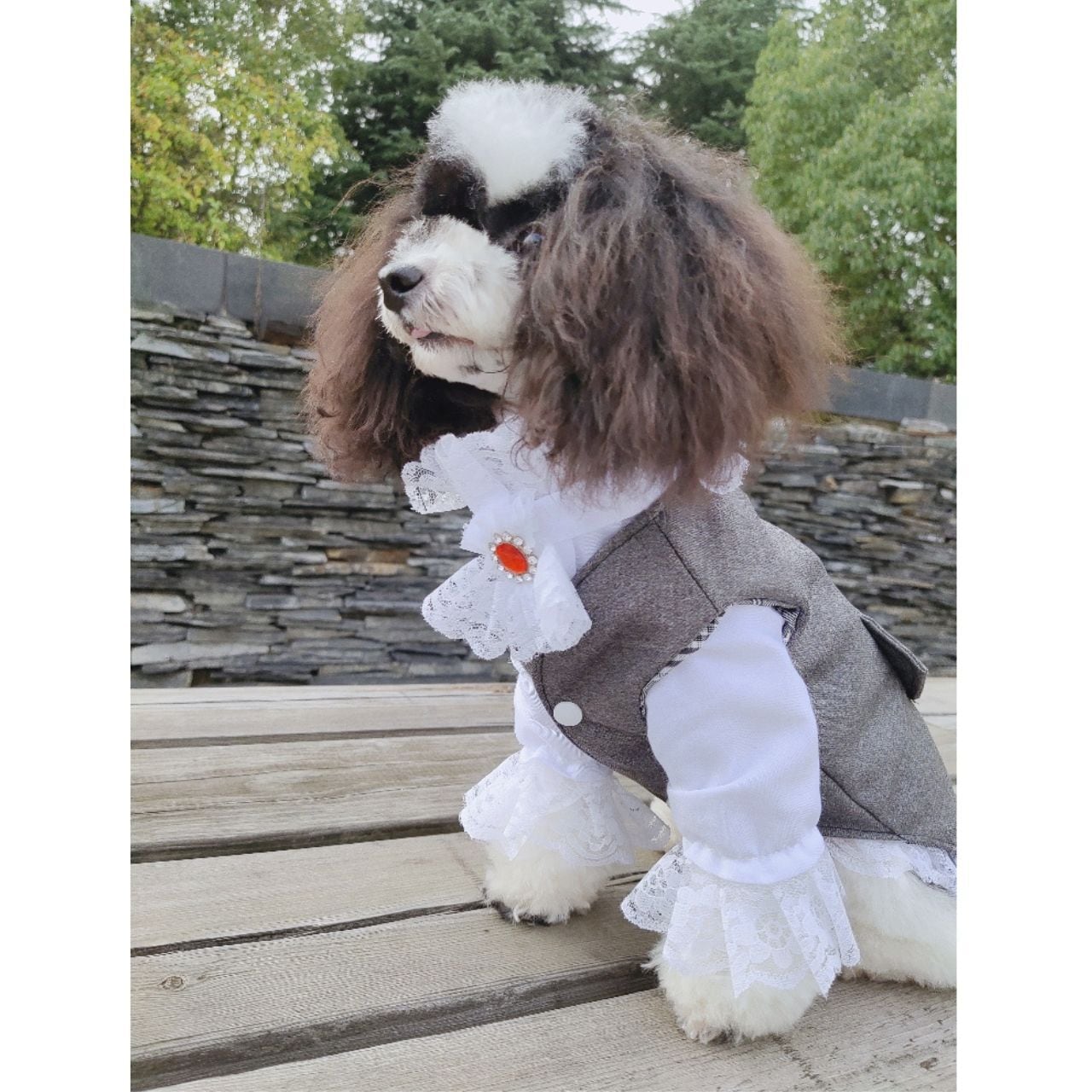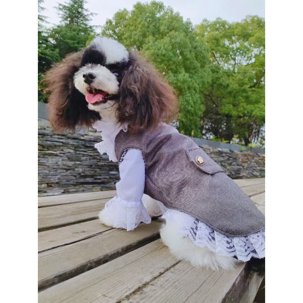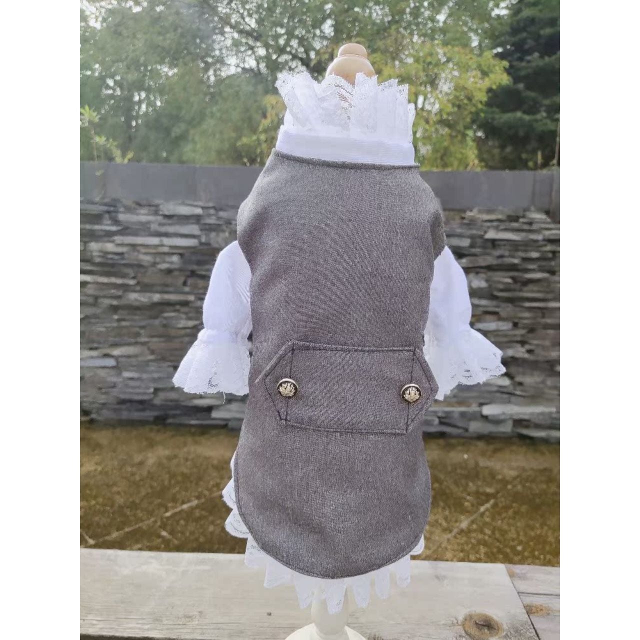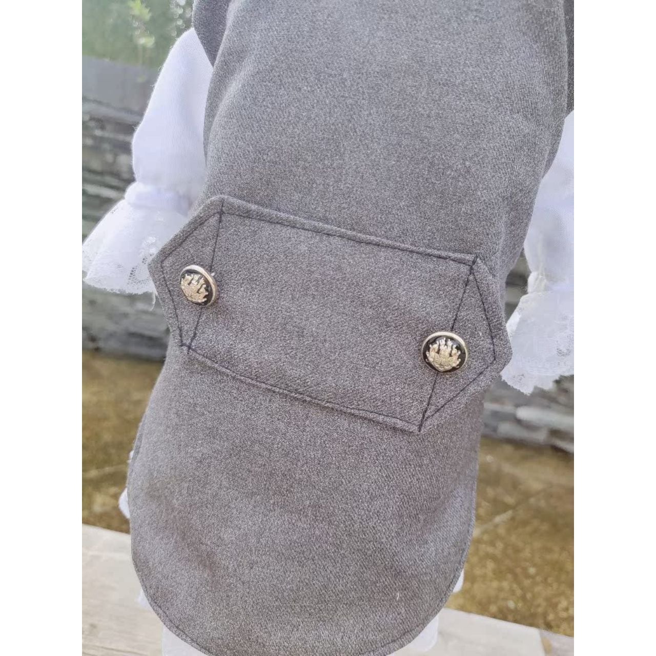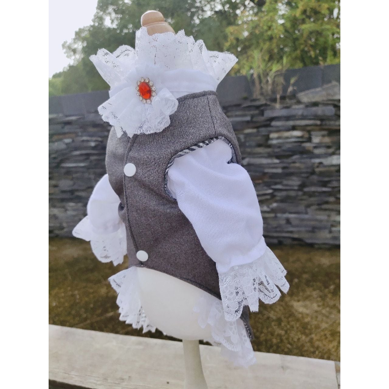 上質なグレーベストにレースシャツを重ねた、洗練されたデザインです。