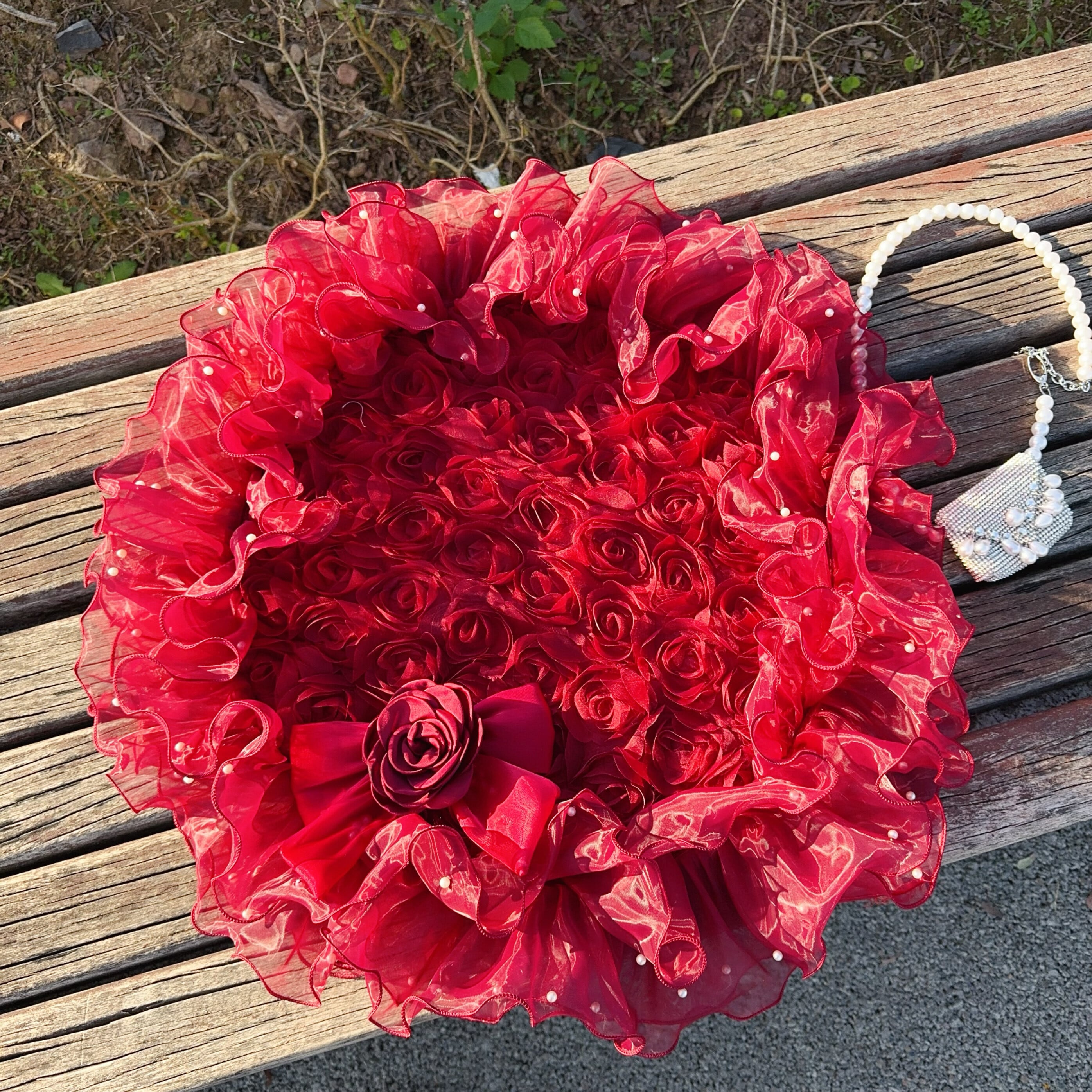 ふんわりと重なるオーガンジーフリルと立体的なローズモチーフが、