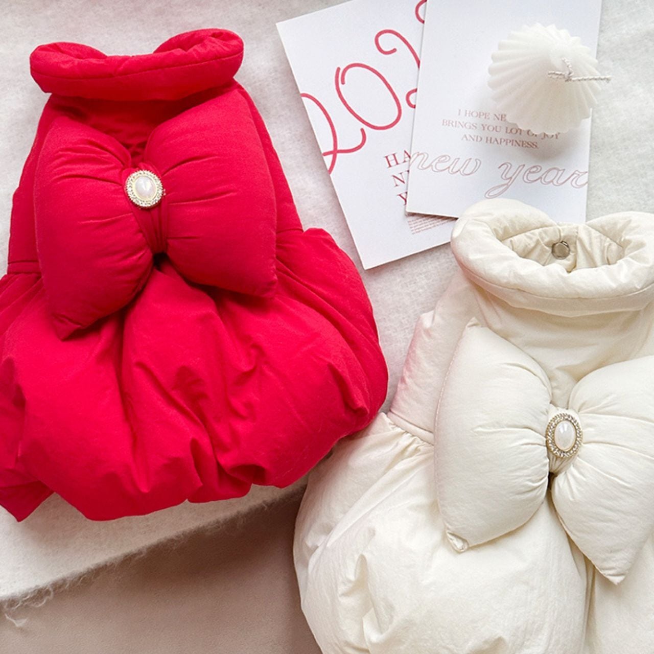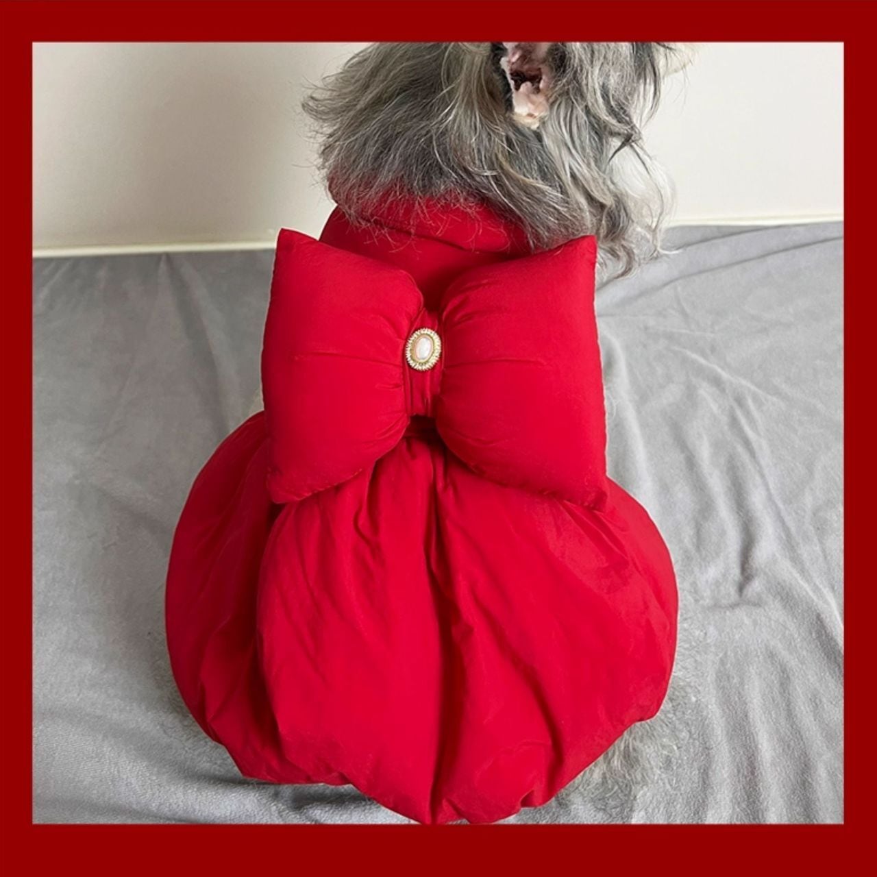 ふんわりボリュームのある大きなリボンが印象的な、冬のプリンセスコートドレス。