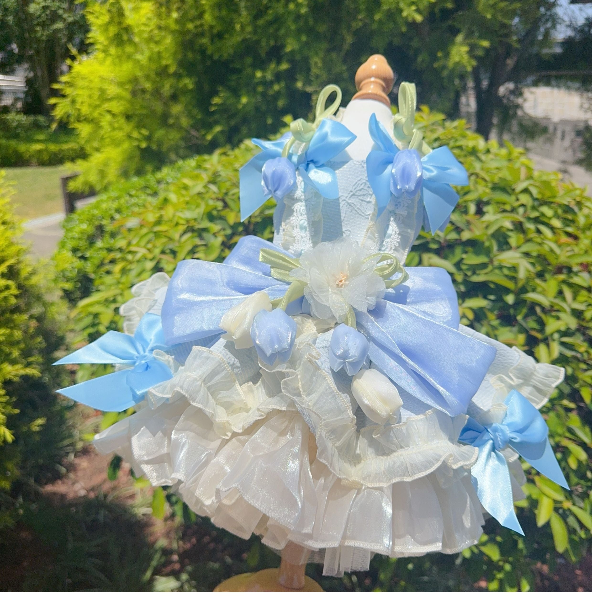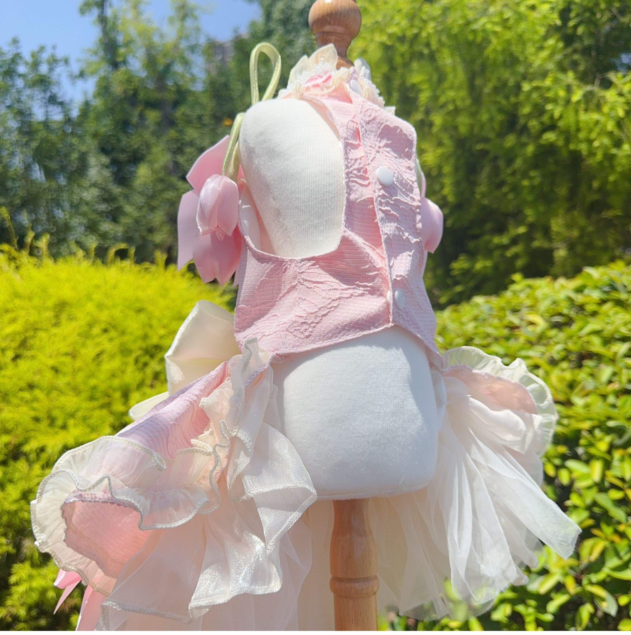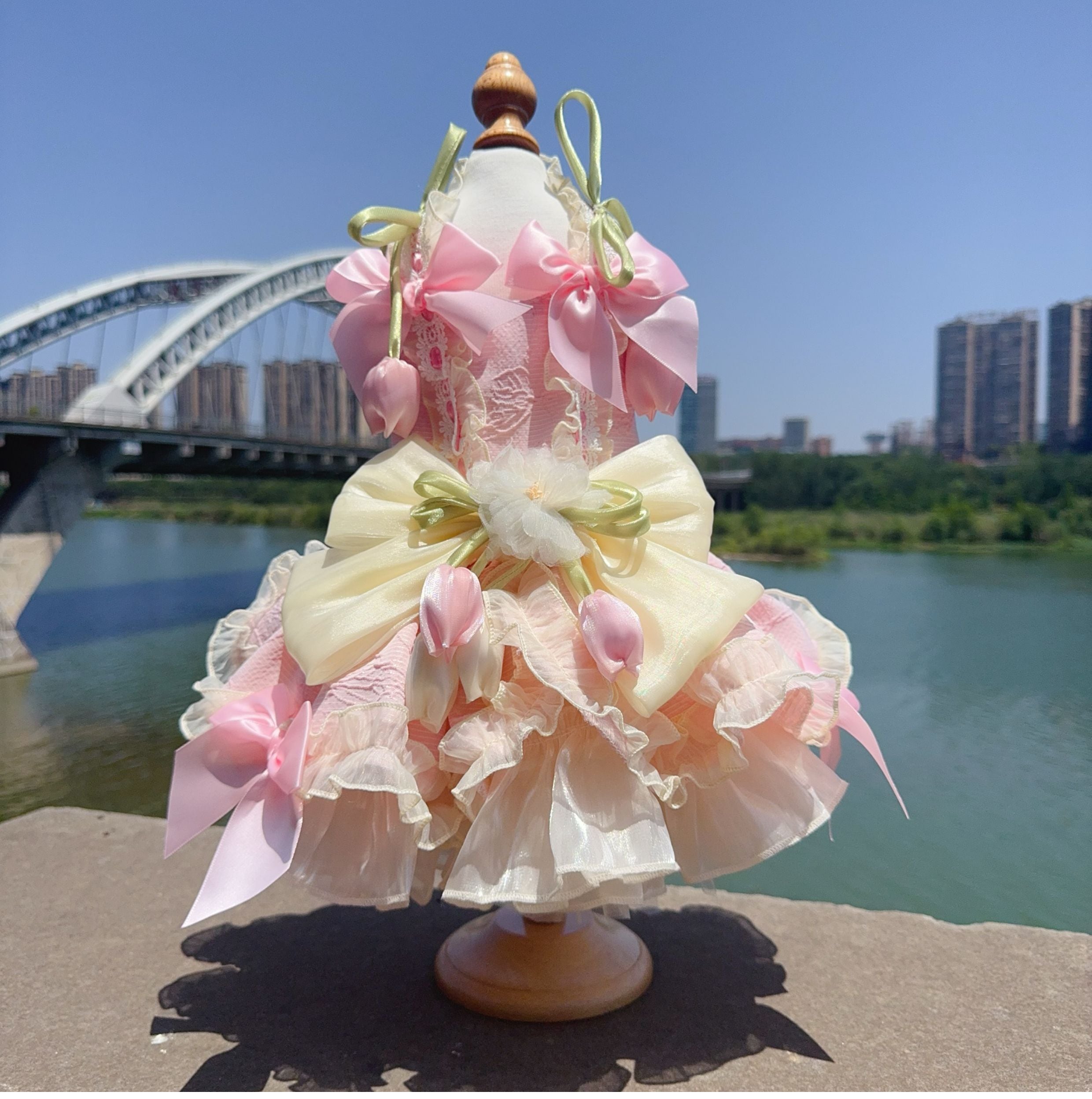 軽やかなチュールスカートに、淡い色合いのチューリップリボンをあしらった春のプリンセスドレス。