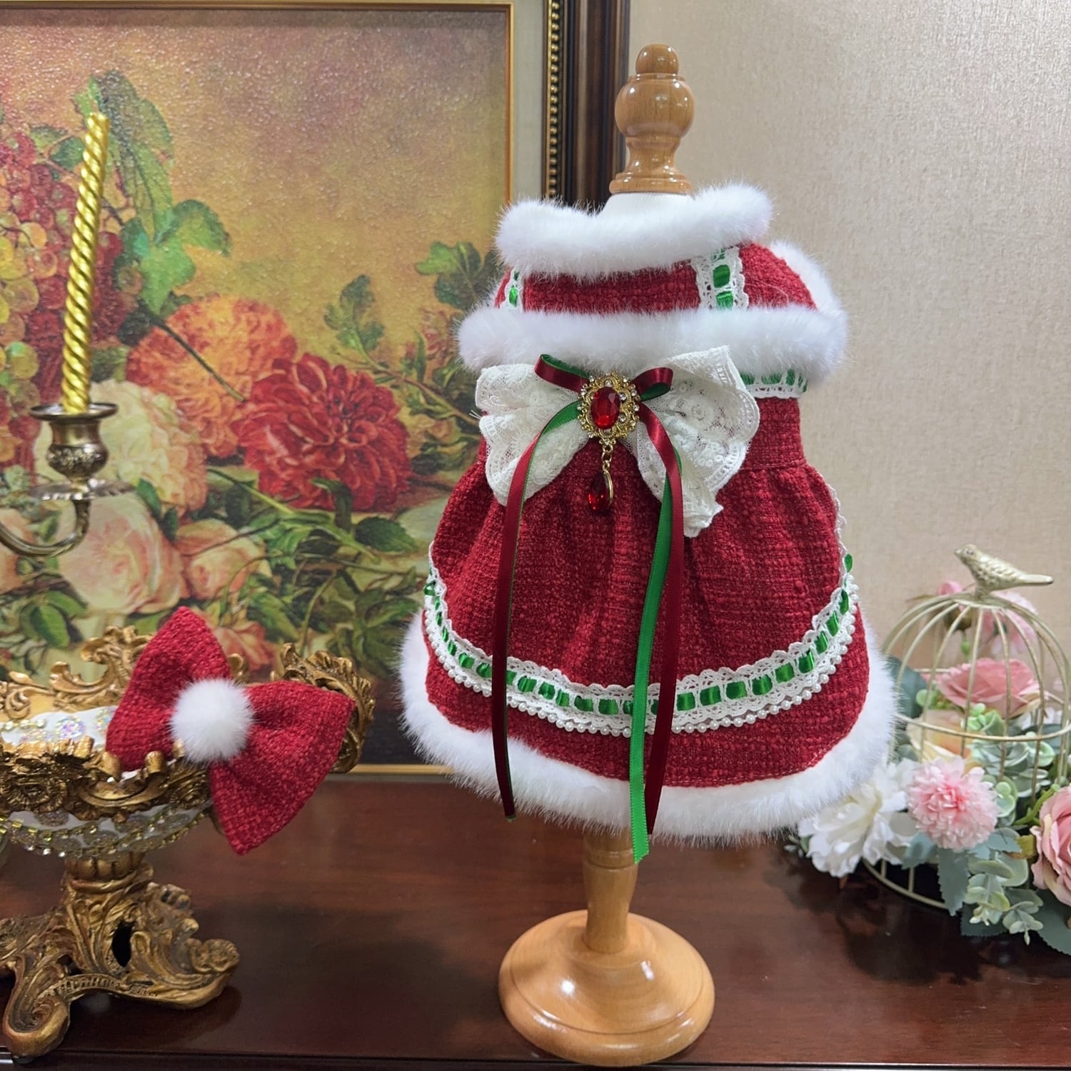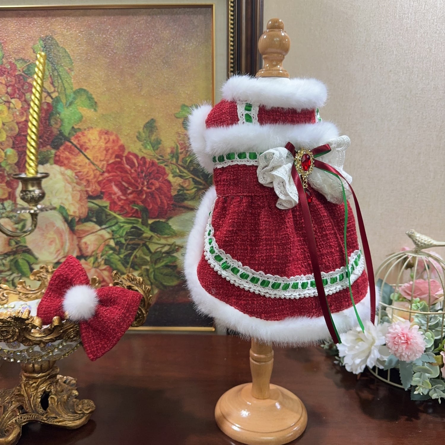 お揃いのヘアリボンを合わせれば、完璧なクリスマスコーデが完成します