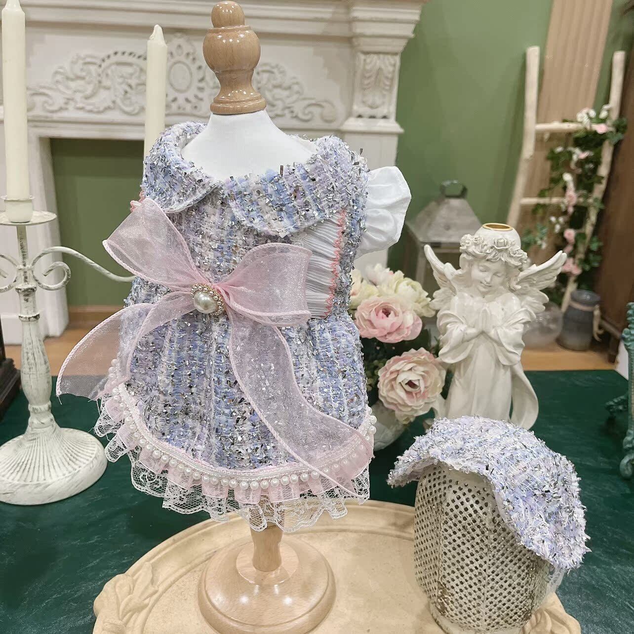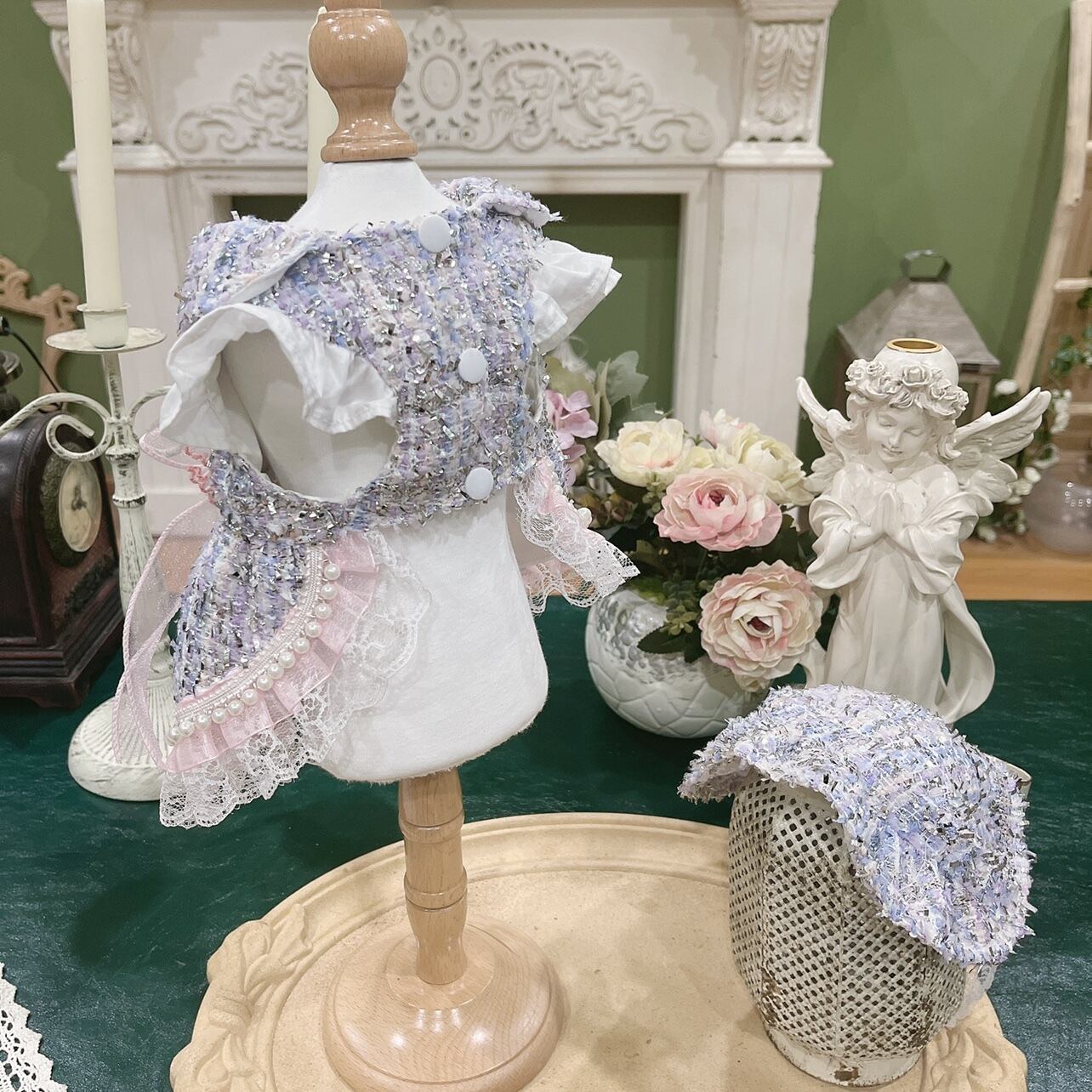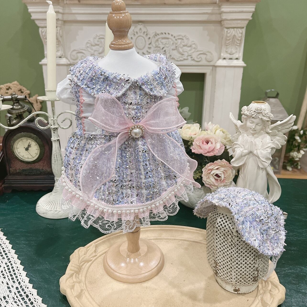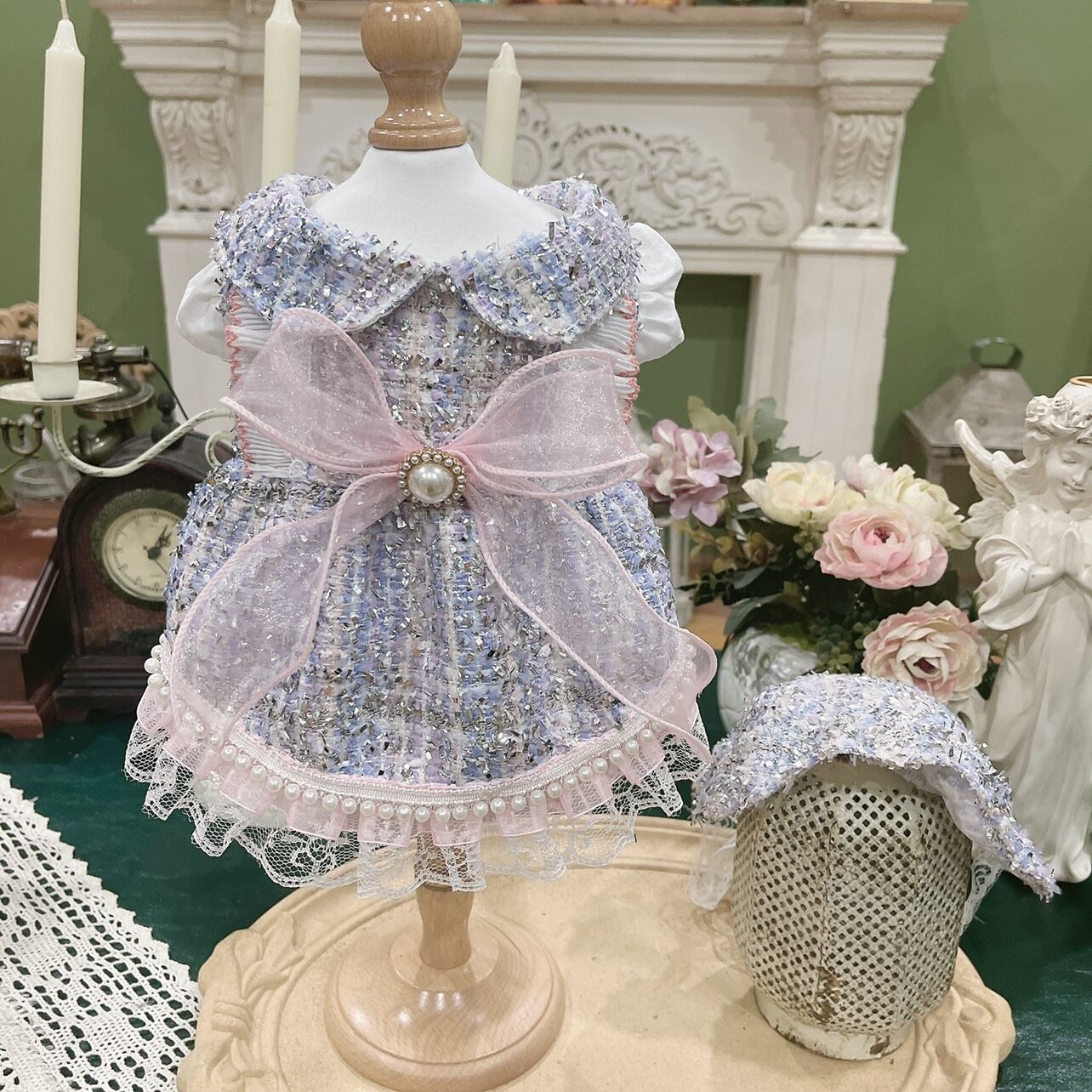 裾のレースとパールの組み合わせが美しく、細部まで丁寧に仕上げられたデザインです。