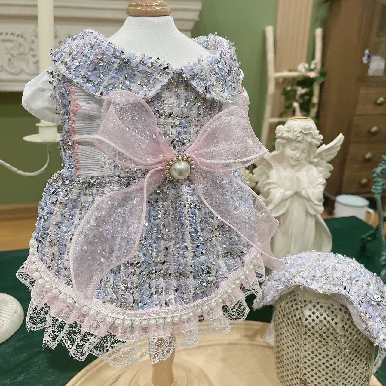 繊細なツイード生地にラメがきらめく、華やかで上品なドレス。
