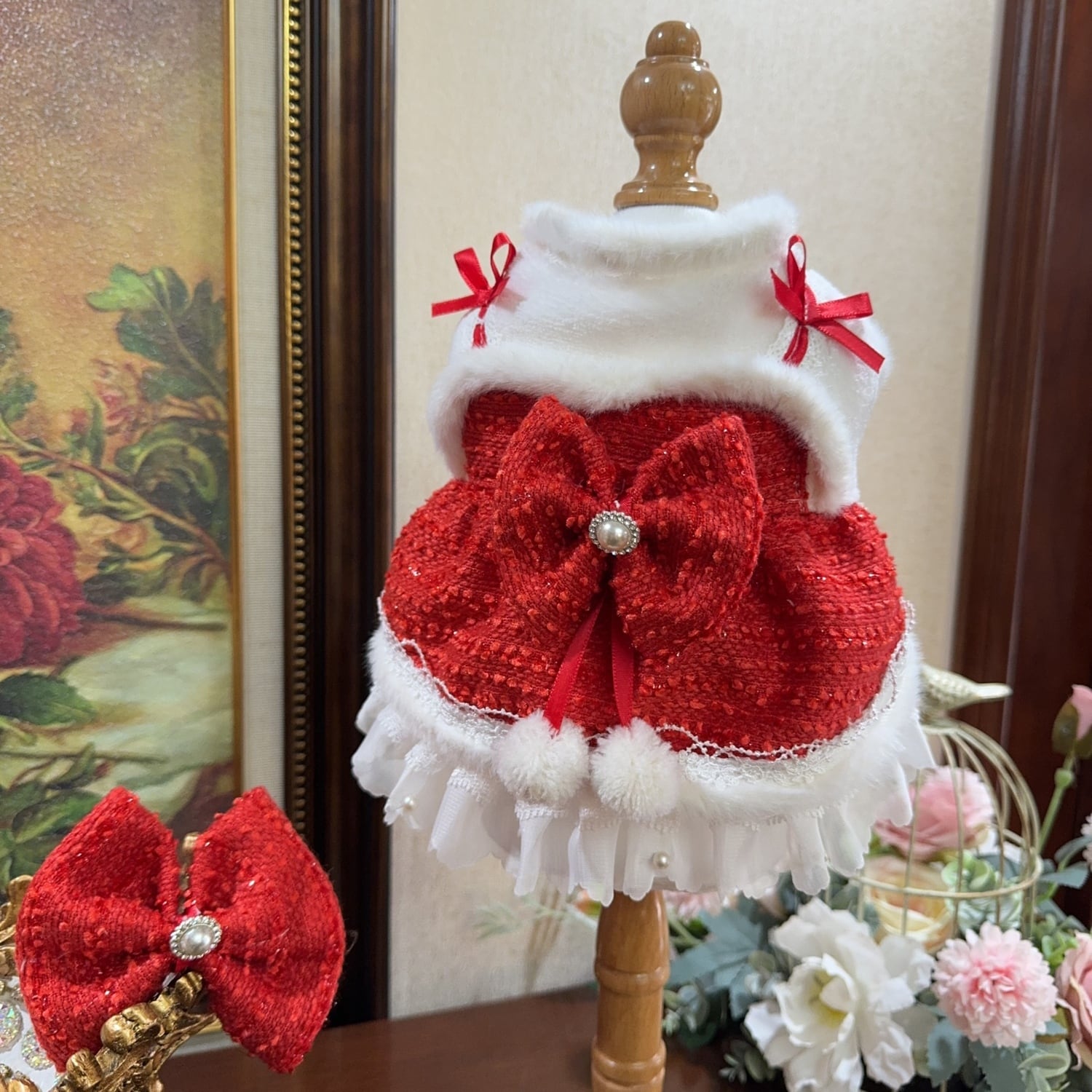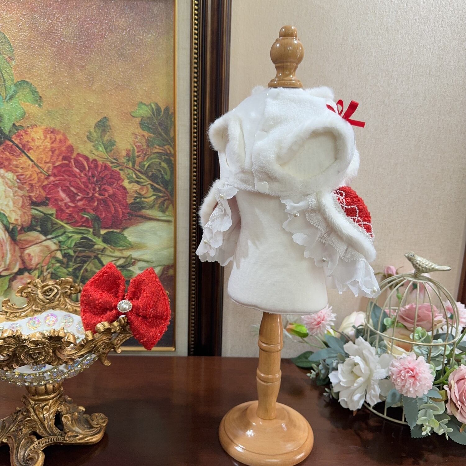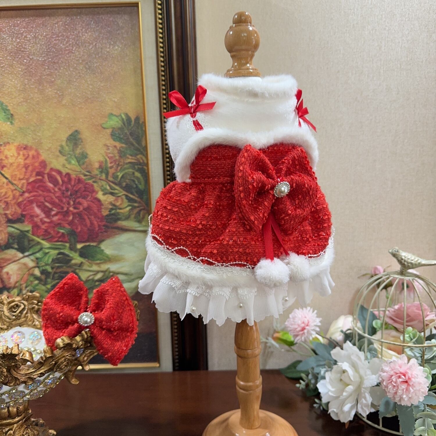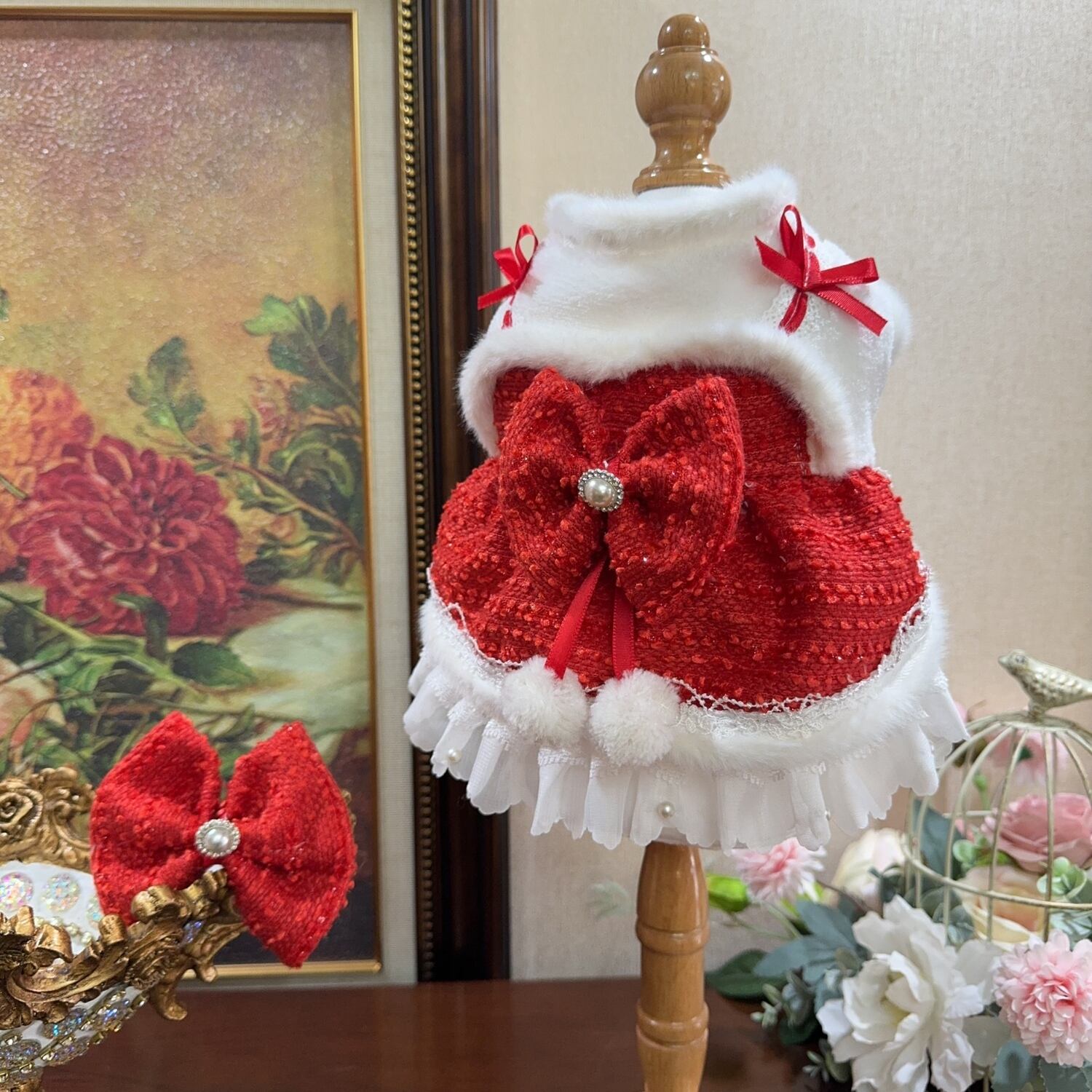 上品な赤と白のコントラストが魅力のドレス。