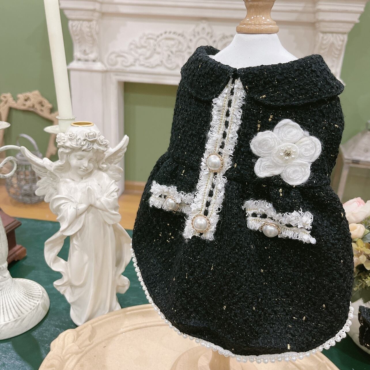 シックなブラックにゴールドの糸が輝く上品なドレス。