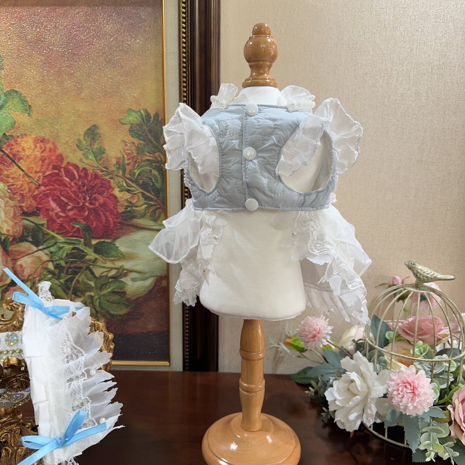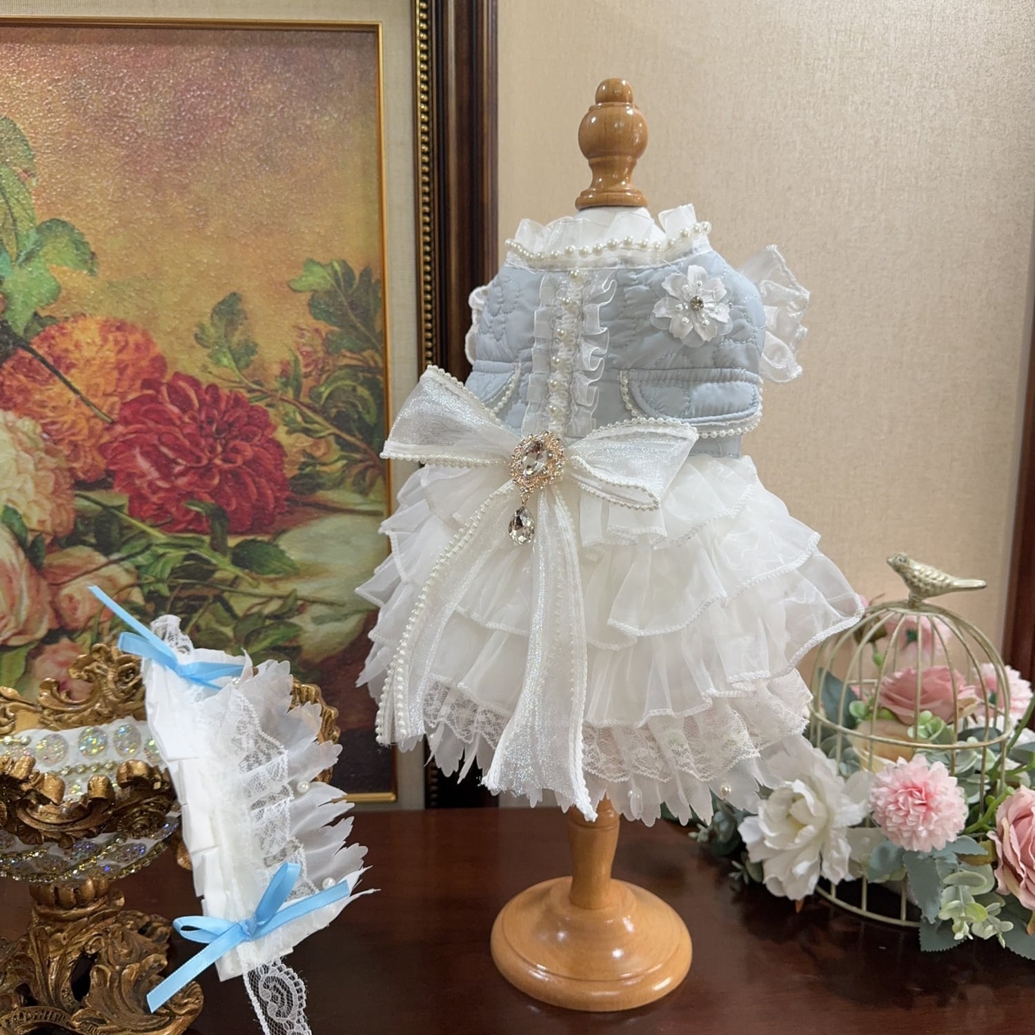 淡いブルー×ホワイトの組み合わせが優しく、立体的なフリルが華やかさを演出します。