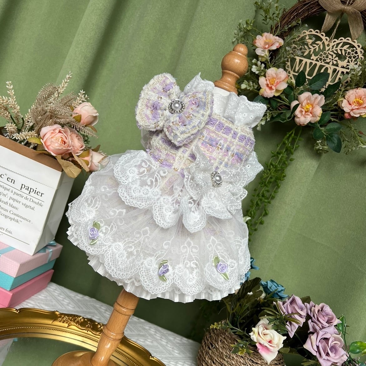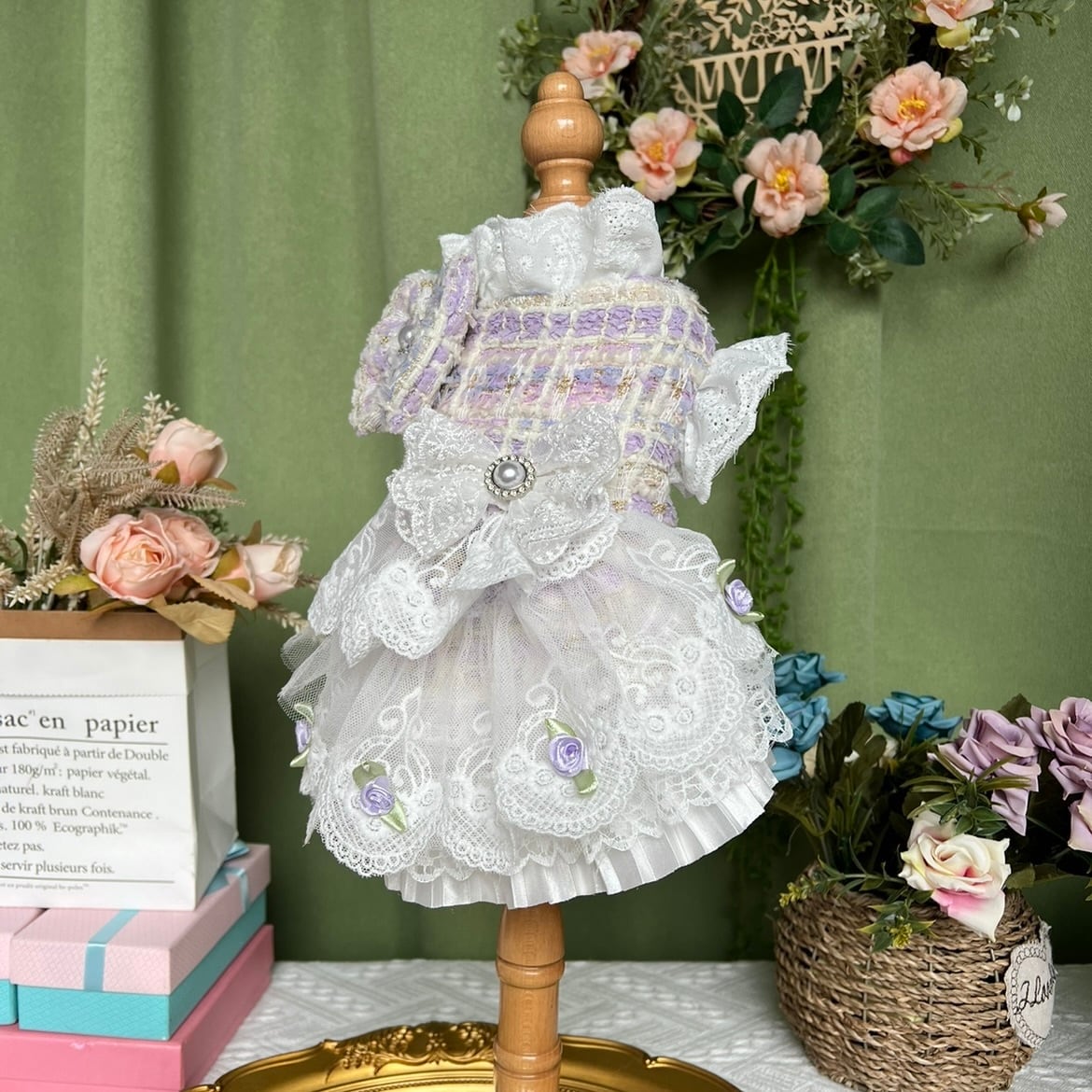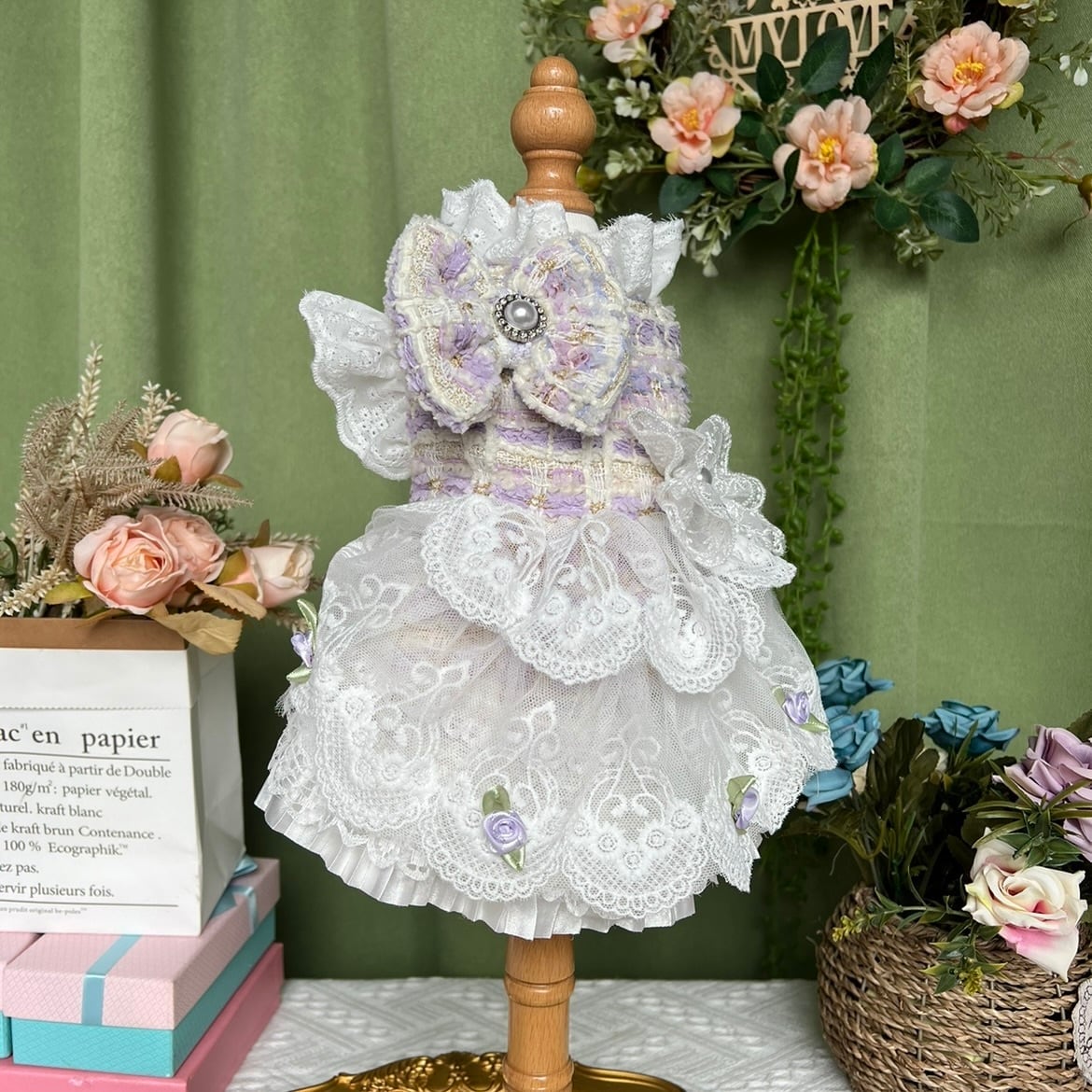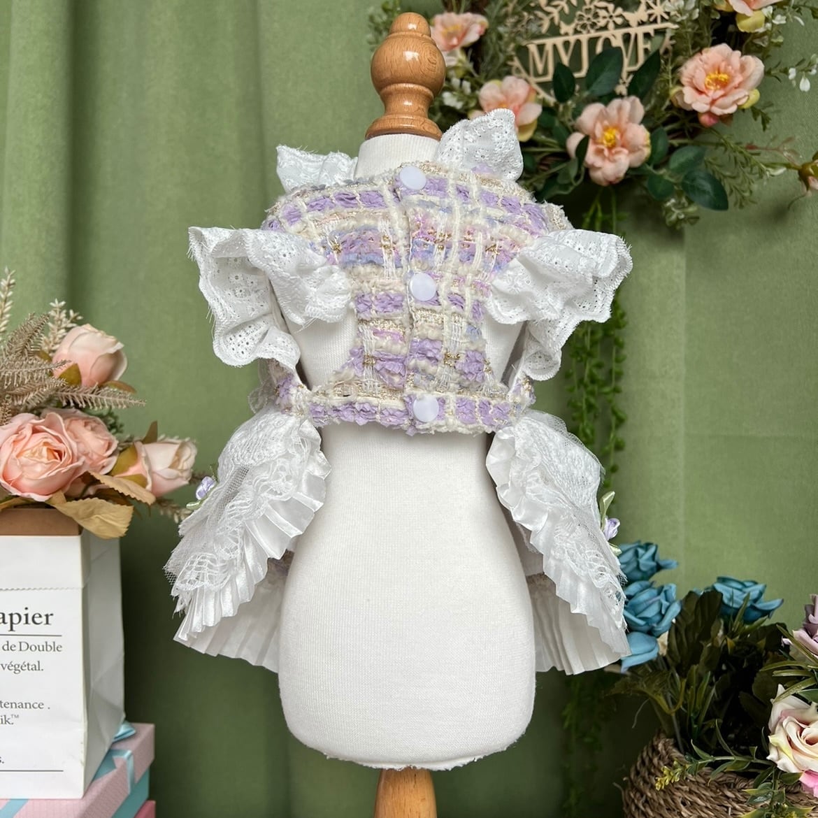 淡いパープルのトップとフリルレースが重なり合う、優美なデザイン。