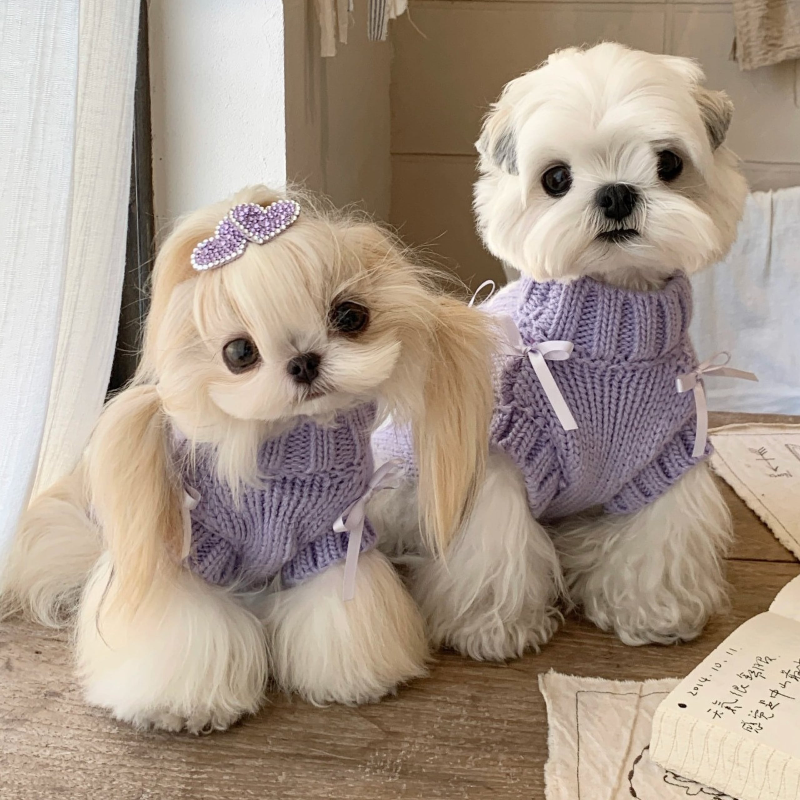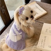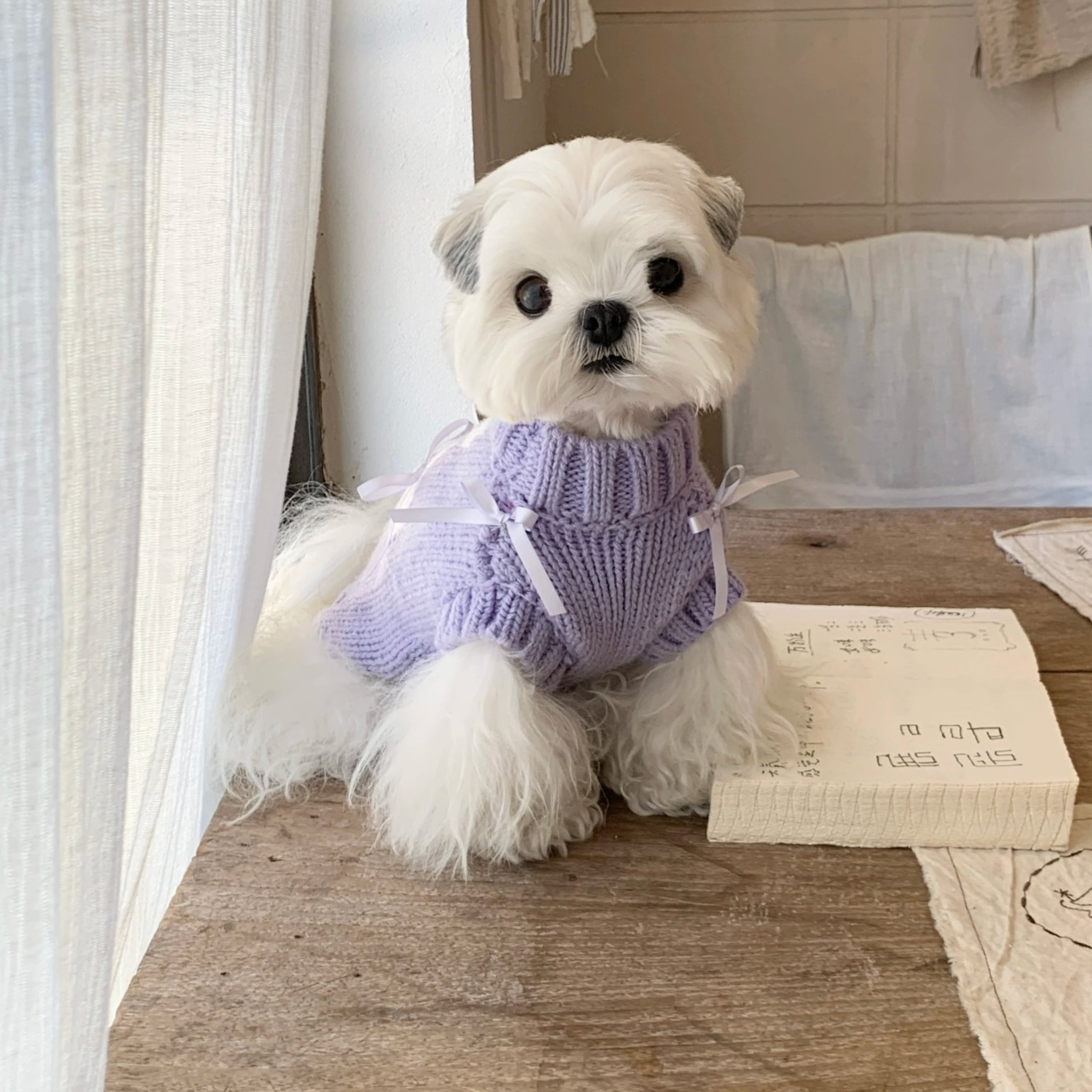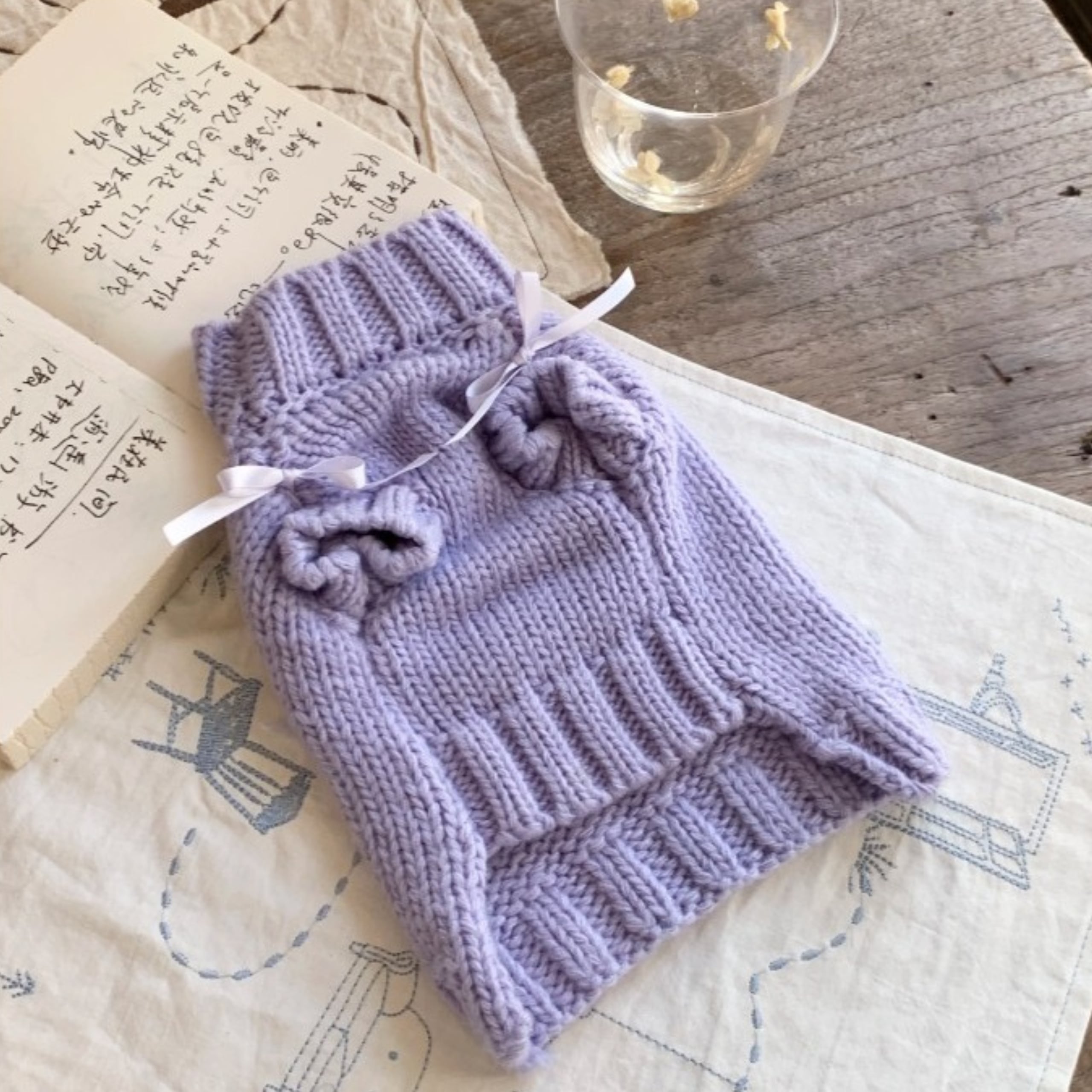 優しいラベンダーカラーに、白鳥のジャカード編みが映えるガーリーニット。