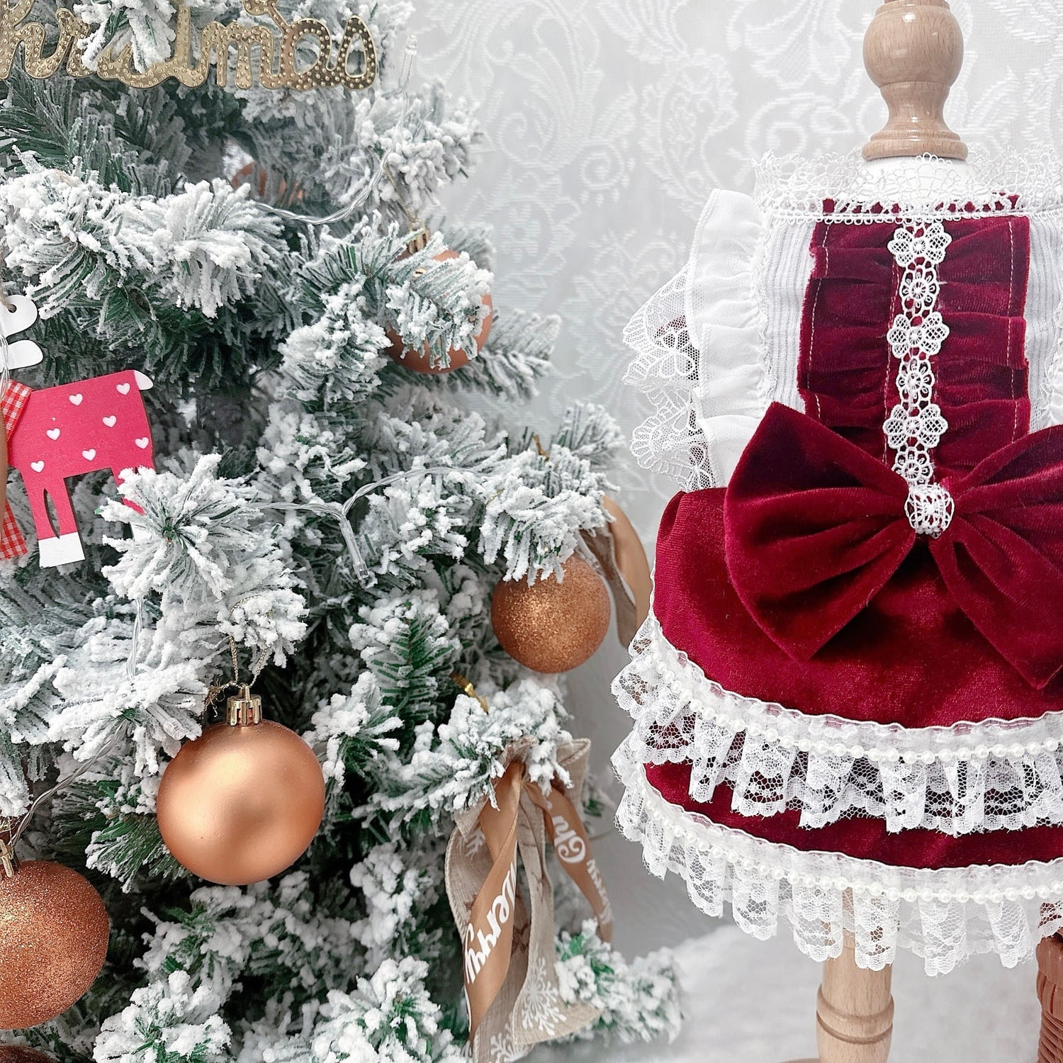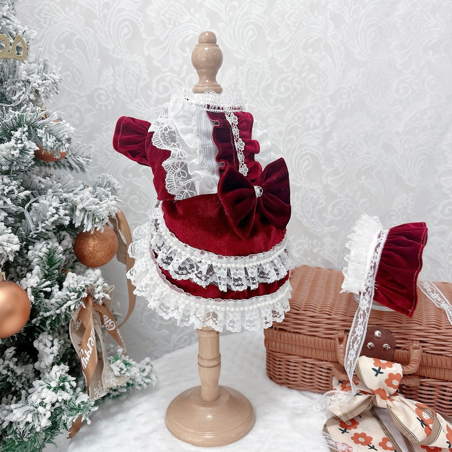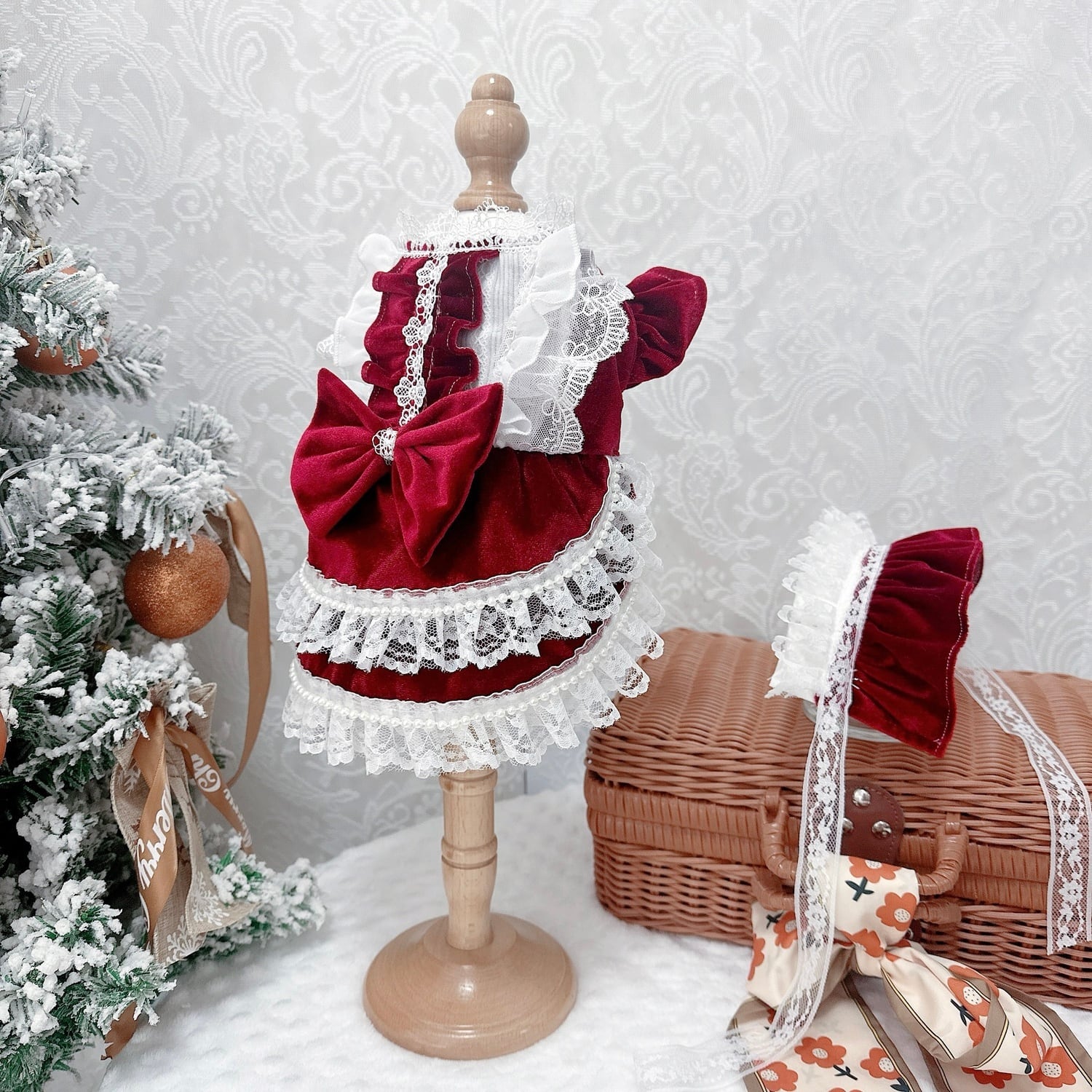 深みのあるワインレッドのベルベットに、贅沢なホワイトレースをたっぷりあしらった特別なドレスセット。