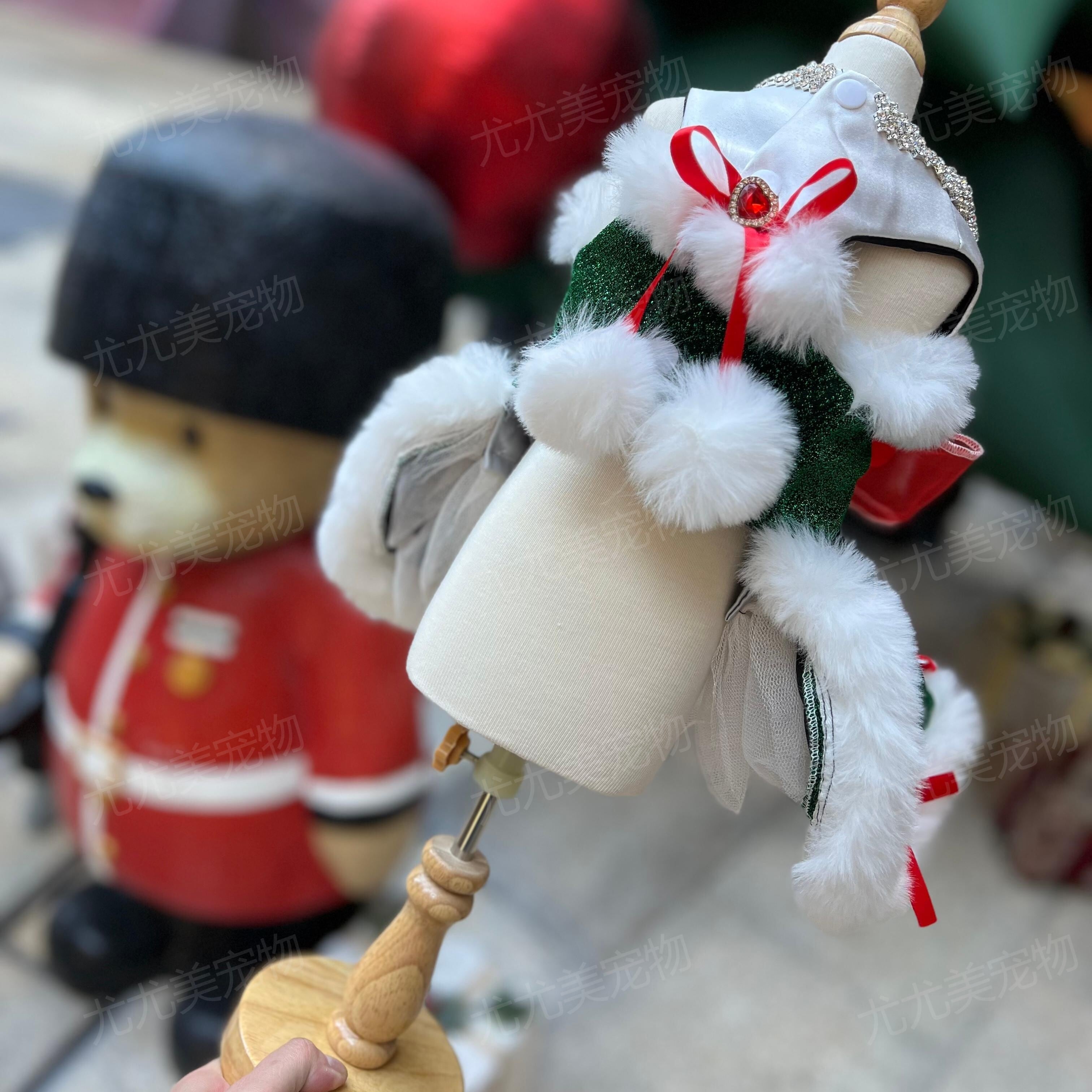 ふわふわのホワイトファー、きらめくラインストーン、
