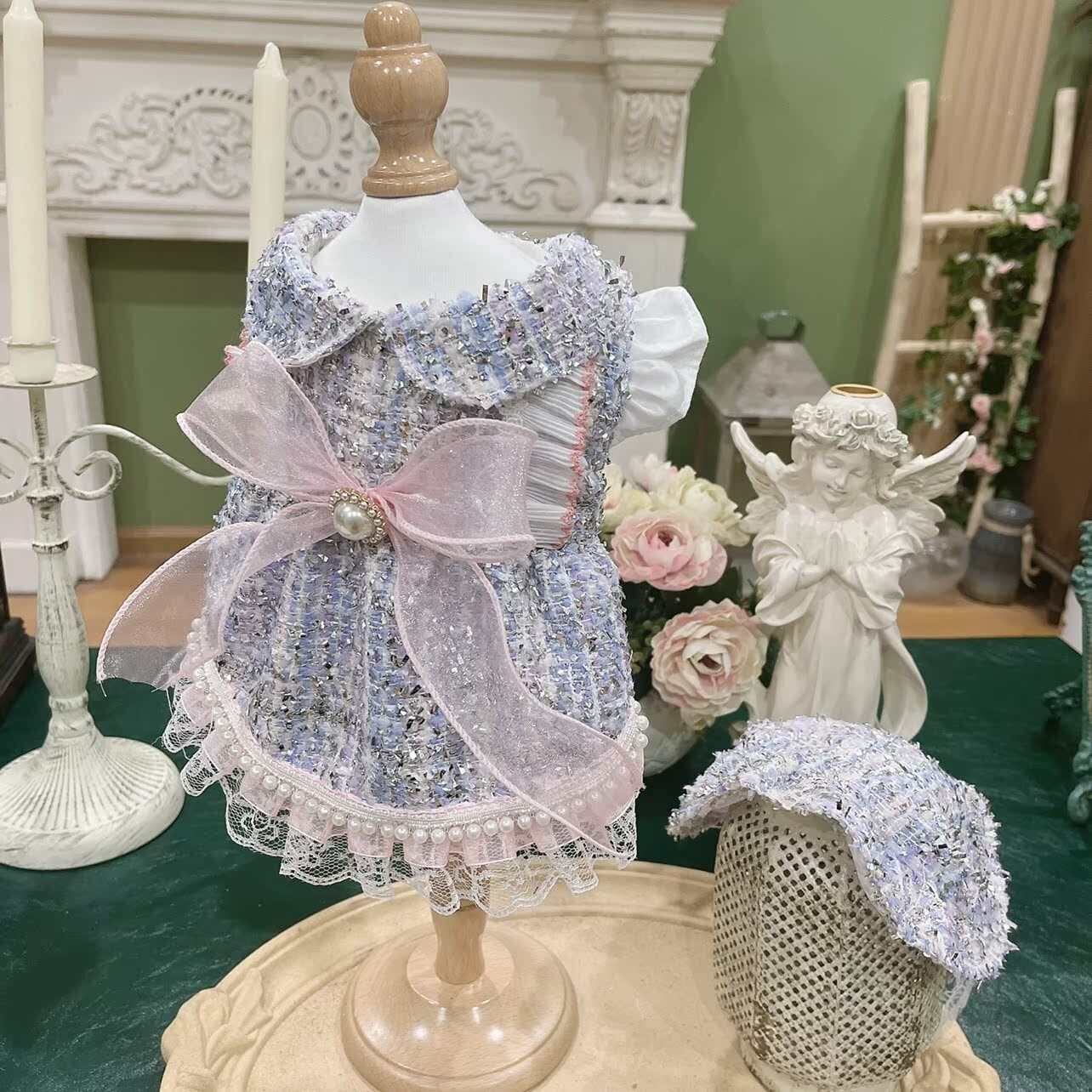 裾にはレースとパールを贅沢にあしらい、全体をやわらかな甘さで包みました。