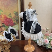 胸元のカメオボタンとレースリボンが、ヴィンテージメイドのような可憐な雰囲気を引き立てます。