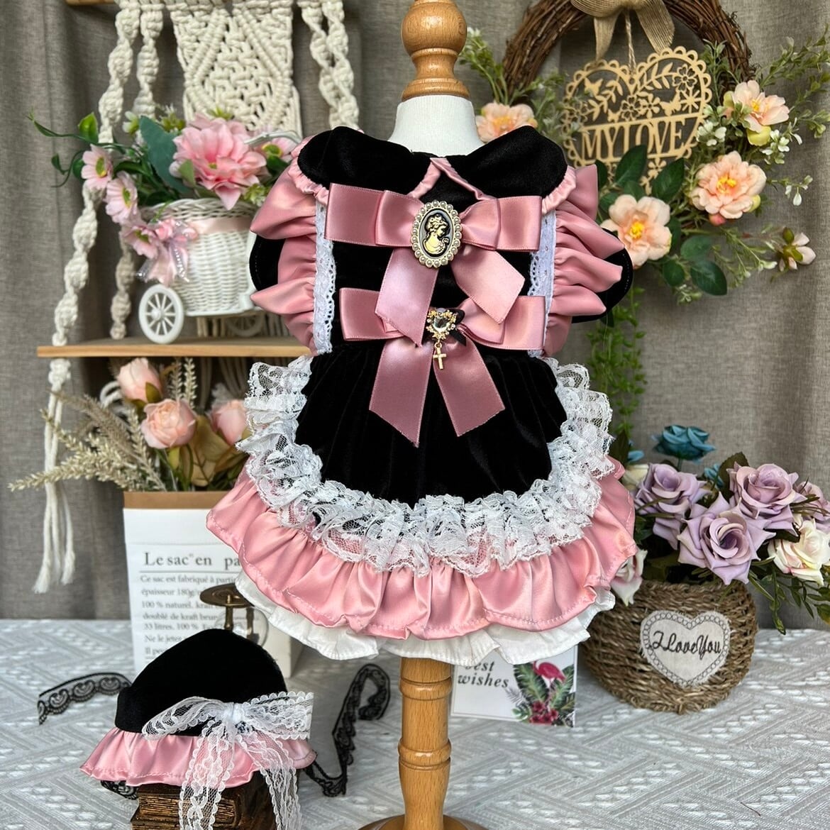 優雅なブラックベルベットが溶け合うクラシカルドレスです。