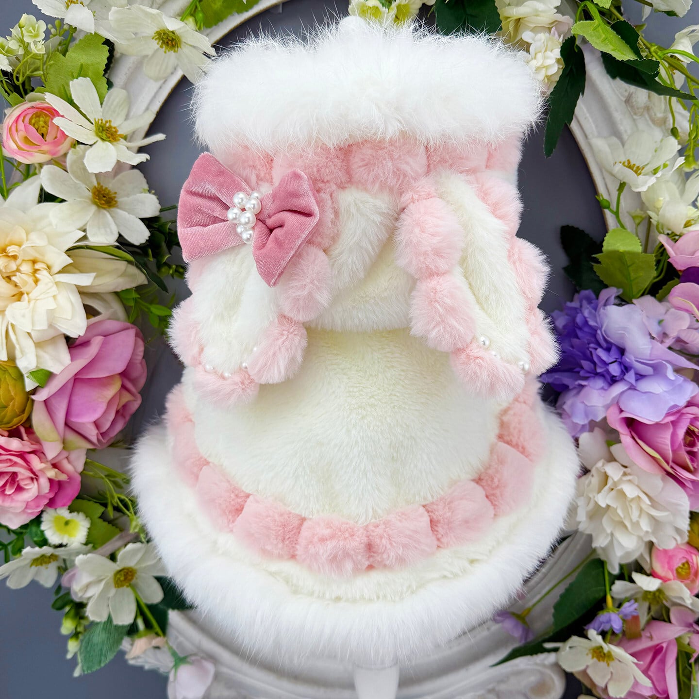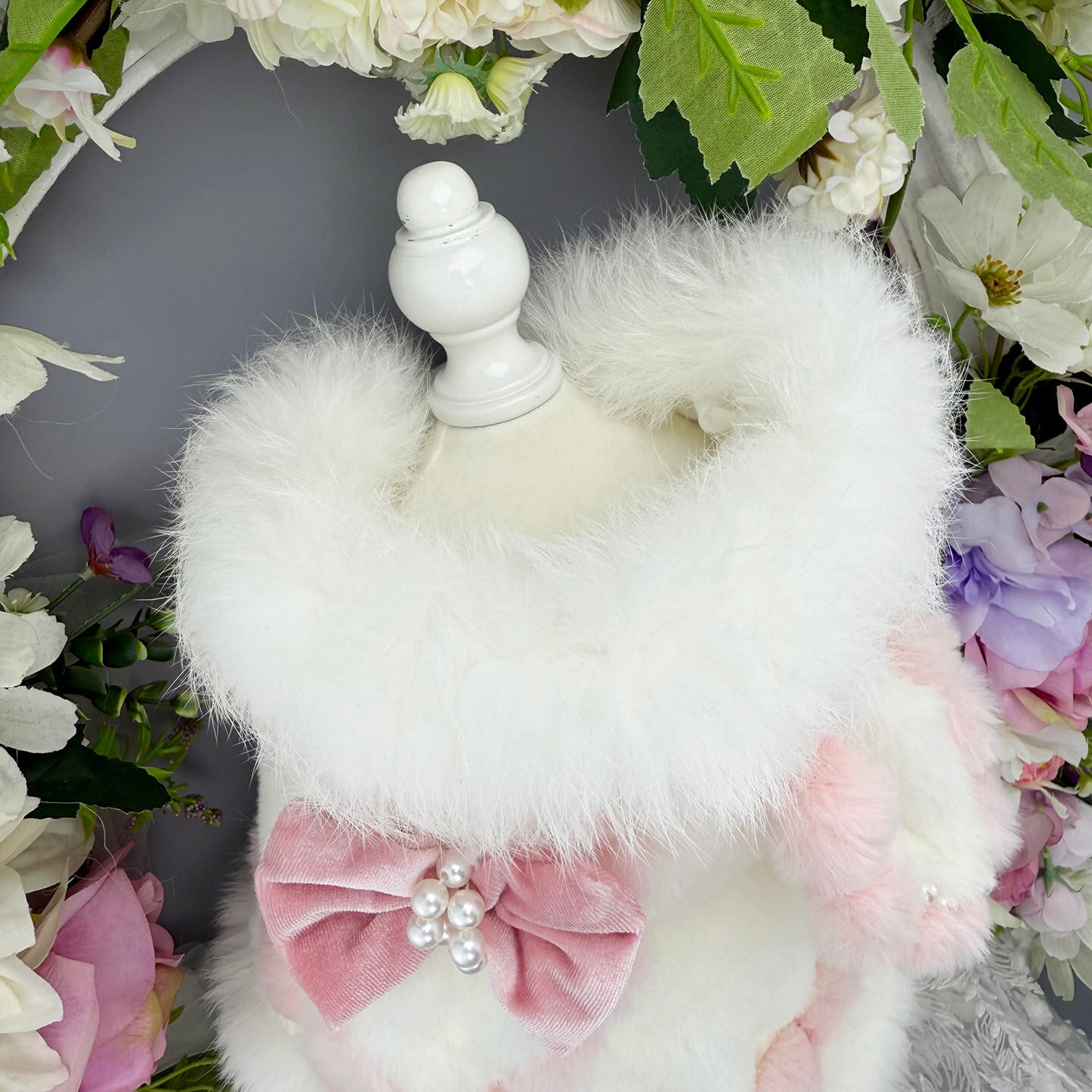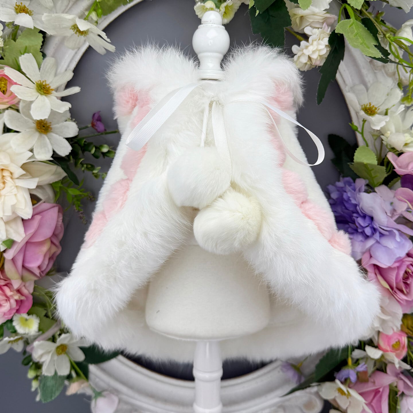 やわらかく軽いファーに、シュクルリらしい淡いピンクをちりばめた